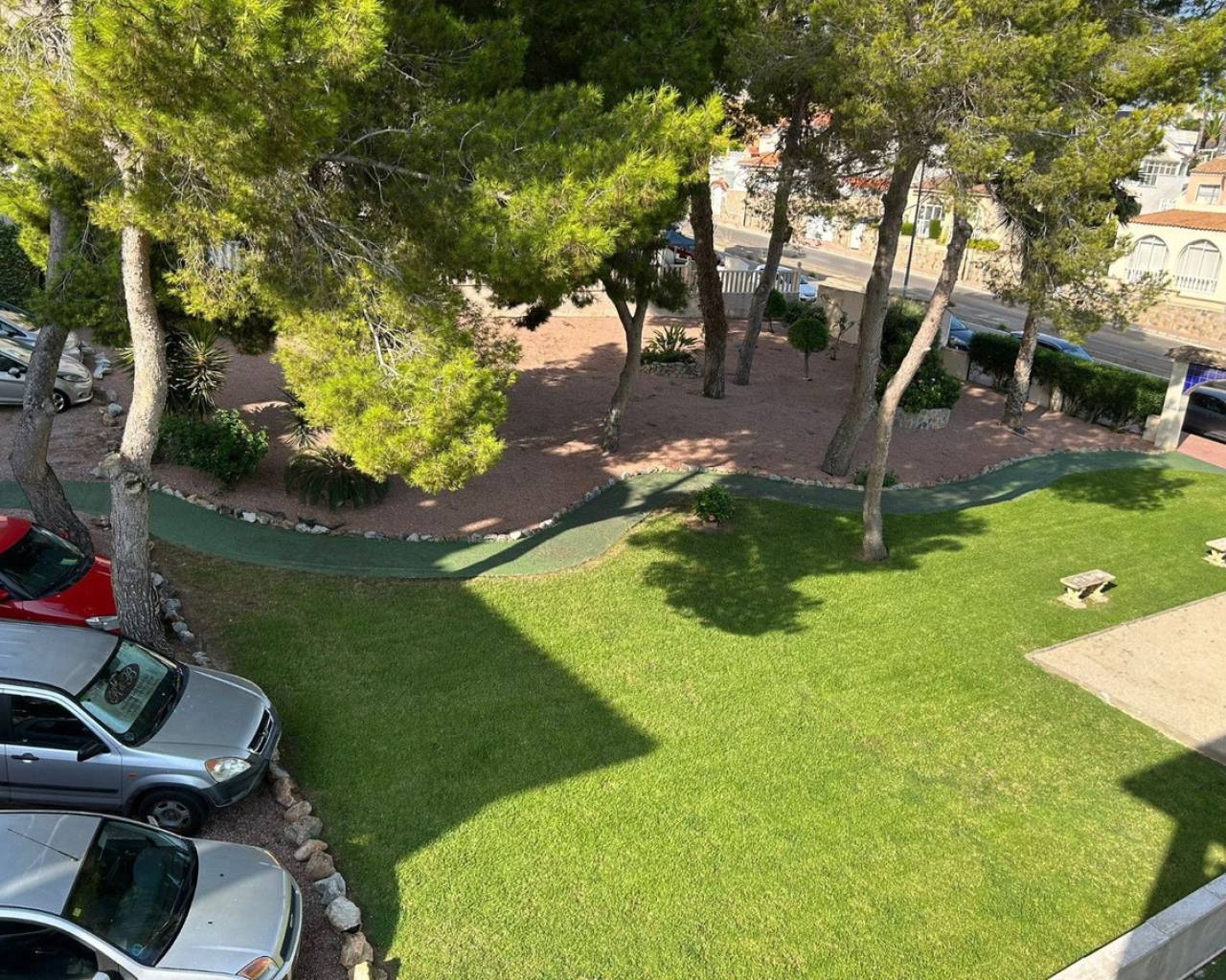 Well presented top floor, penthouse apartment with solarium, located in the popular Pinada Golf 2 complex in Villamartin. The apartment occupies a super corner position, giving it plenty of natural light and open views. The penthouse offers 2 double bedrooms with fitted wardrobes, full family bathroom, spacious living and dining area with direct access to a private balcony overlooking the communal gardens. The separate kitchen is fully fitted and includes a utility room for additional storage. A key feature of the apartment is the private rooftop solarium, which provides ample outdoor space, additional storage and open views across the surrounding area, including distant sea views. Sold as seen in great conditioning ,with white goods, air conditioning and much more. Set in a peaceful urbanisation the community is well maintained and offers landscaped gardens, communal parking and swimming pool for residents. Located easy walking distance to local amenities including the Villamartin Golf Course and Villamartin Plaza. Please note this is a top (second floor) apartment with no lift access and therefore would not be suitable for those with mobility issues. Contact us today to view this well presented and located home.