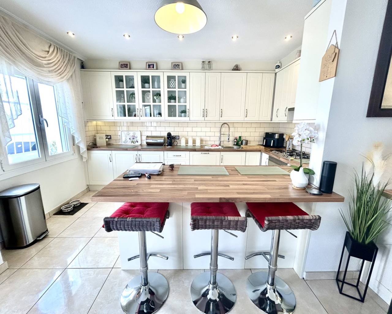 Located in the sought-after area of Blue Lagoon, this beautifully renovated 2-bedroom, 2-bathroom detached villa sits on a generous plot and offers an exceptional combination of privacy, comfort, and truly spectacular views. The property has been thoughtfully modernised throughout, featuring bright, stylish interiors and a seamless layout designed for easy living. Both bedrooms are well-proportioned, with two contemporary bathrooms adding to the home's comfort and convenience. Outside, the villa truly comes into its own. You could be taking in the breathtaking views from your private pool, surrounded by spacious terraces perfect for sunbathing or entertaining guests. The large, low-maintenance plot enhances the sense of space and tranquility, while a covered car port provides off-road parking. The underbuild offers excellent additional space, ideal for storage, a workshop, or even further accommodation. The standout feature is the impressive rooftop solarium, where panoramic views stretch across the Mediterranean Sea, surrounding mountains, the shimmering salt lakes, and all the way to La Manga—an ever-changing backdrop from sunrise to sunset. Situated in the popular Blue Lagoon urbanisation, close to amenities, golf courses, and the coast, this property is perfect as a permanent home, holiday retreat, or investment opportunity.