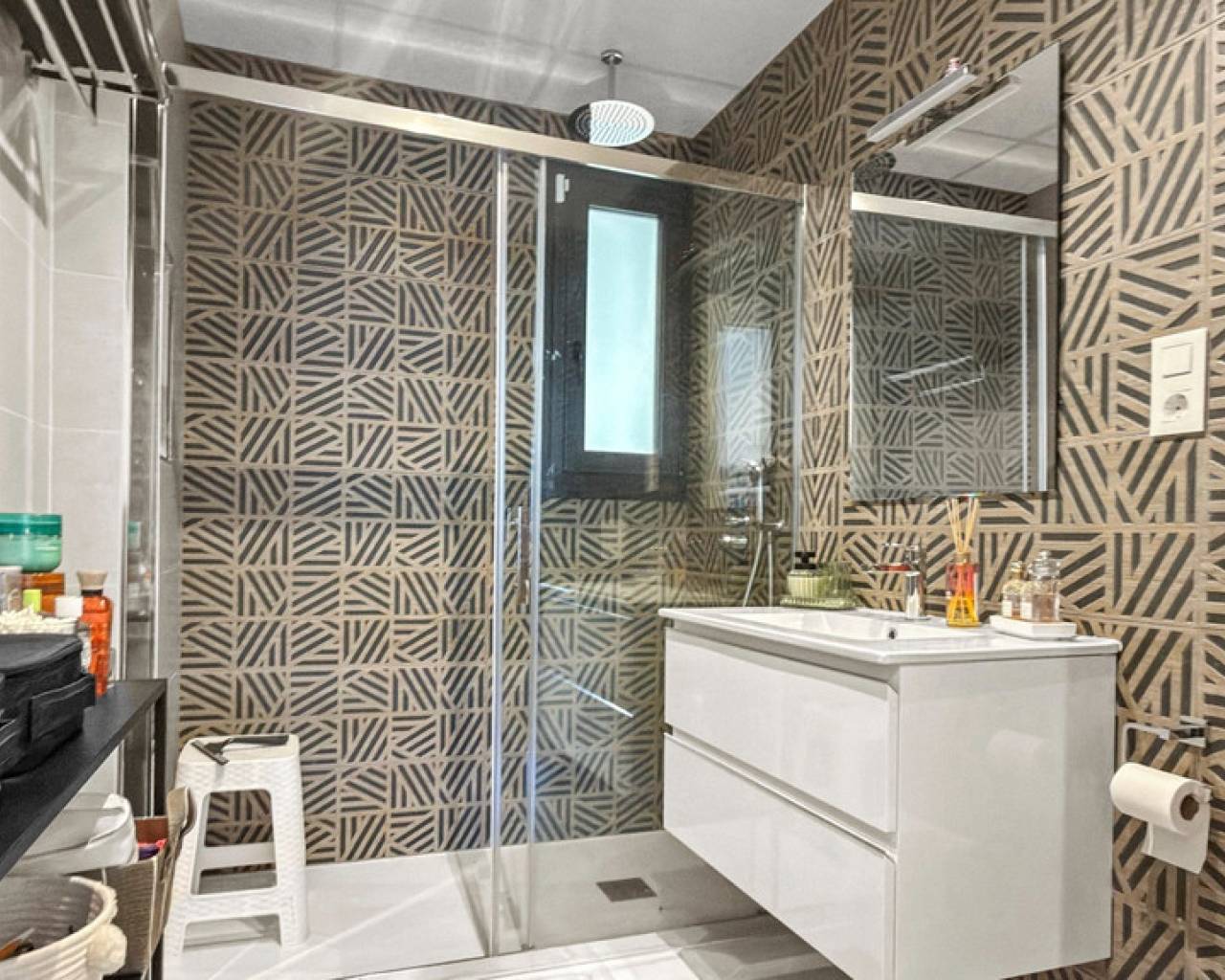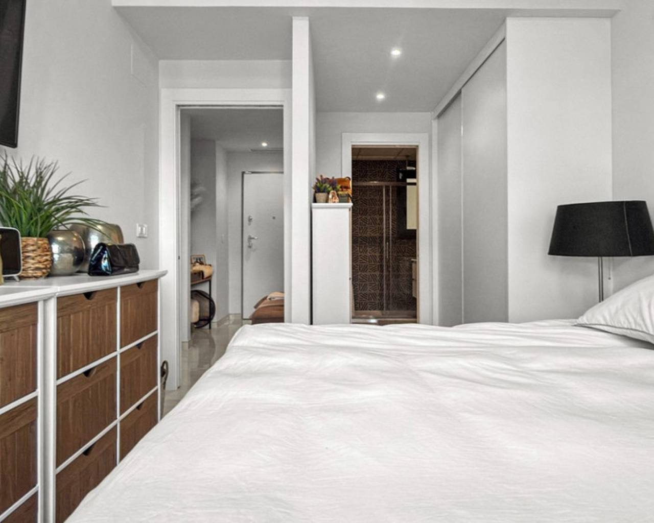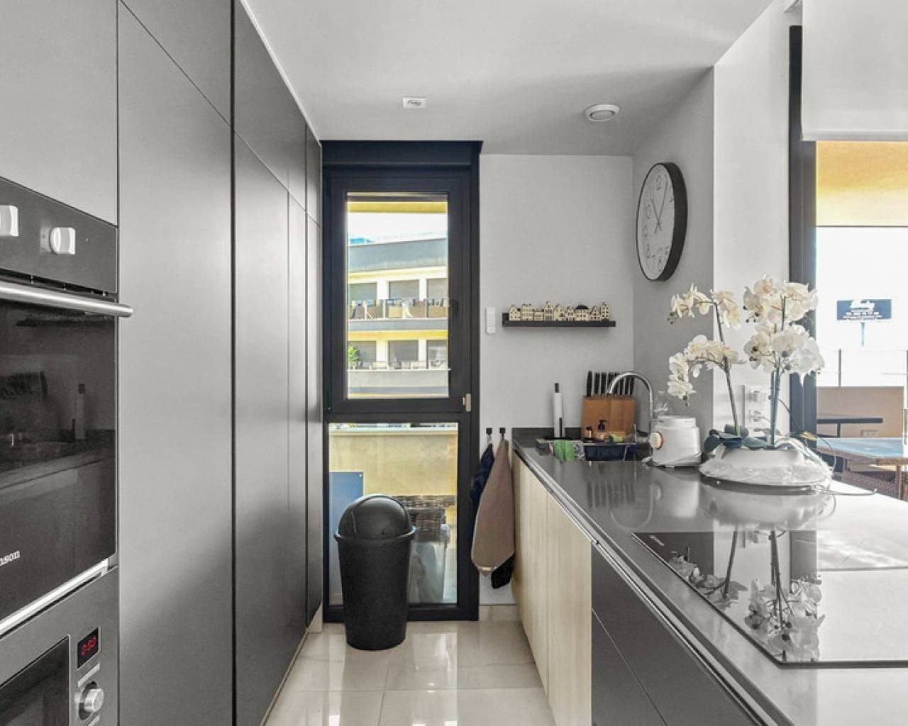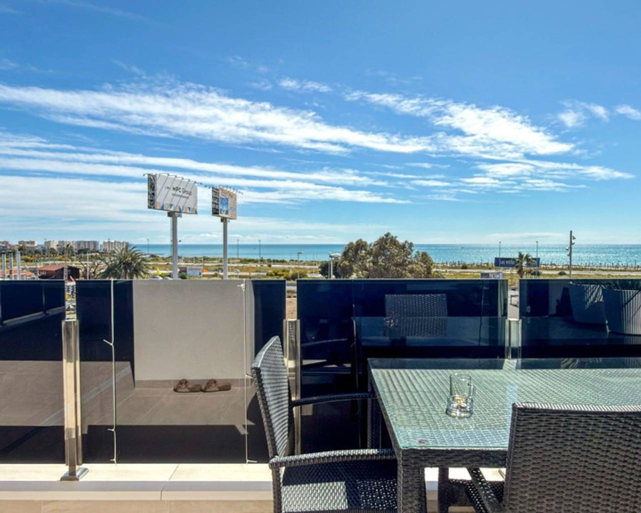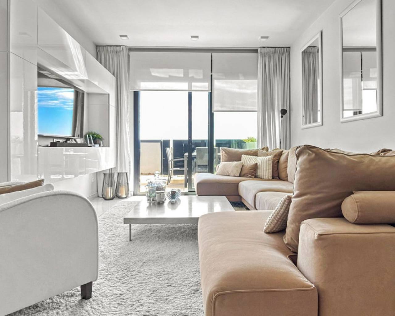 Step into refined coastal living with this exceptional 3-bedroom, 2-bathroom apartment, ideally located just moments from the sea and within walking distance of vibrant bars, restaurants, shops, and supermarkets. Whether you're searching for a stylish holiday escape, a premium rental investment, or a full-time residence by the Mediterranean, this property offers the perfect balance of lifestyle and location. Designed for seamless indoor-outdoor living, the apartment boasts a spacious wraparound terrace with direct access from all three bedrooms—offering breathtaking panoramic sea views. The master bedroom features a modern en-suite bathroom, while the two additional bedrooms provide generous space for family or guests, complemented by a second fully equipped bathroom. The property is beautifully presented and sold fully furnished with high-end designer furniture and elegant finishes throughout, making it completely move-in ready. Additional features include ducted air conditioning, electric shutters, underfloor heating in the bathrooms, and a private double parking space with a large storage room. Set within a secure gated community, residents enjoy access to a large swimming pool surrounded by landscaped gardens with ambient evening lighting, as well as premium wellness facilities including a fully equipped gym, sauna, Jacuzzi, and changing areas. This is a rare opportunity to own a turnkey luxury apartment in a prime coastal location—where comfort, style, and convenience come together effortlessly.