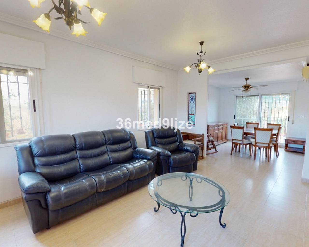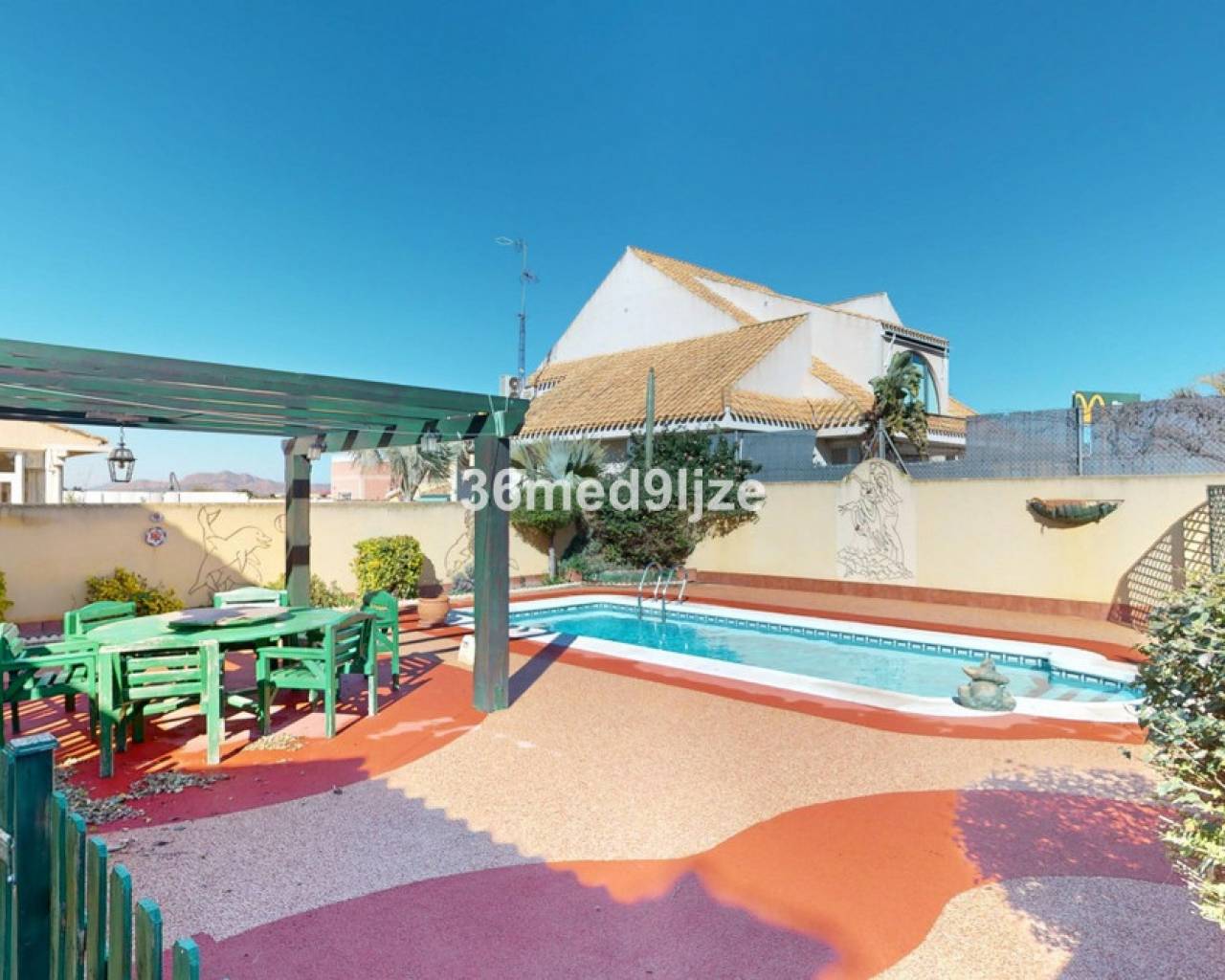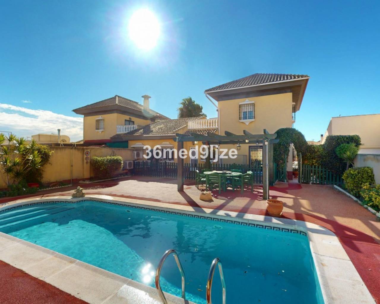 This typical Spanish, spacious property is for sale in Los Alcázares, located in the quiet and pleasant area of Lomas del Rame. The house is set on a large plot of over 400 m² and features a private swimming pool, perfect for enjoying the Spanish climate. The property offers 3 large bedrooms, a separate office (ideal as a home office or an additional bedroom) and 2 bathrooms. In addition, there is a garage, providing extra comfort and storage space. The house is equipped with air conditioning in the living room and all bedrooms. The living room also has a gas stove, ideal for the cooler winter months. Lomas del Rame is a calm and friendly urbanisation with a relaxed atmosphere and two bars within the urbanisation. The beautiful Mar Menor beaches are only 3 km away, and all essential amenities are close by. This property is ideal for permanent living, but also perfect as a holiday home. Schedule your viewing today and discover this fantastic property!
