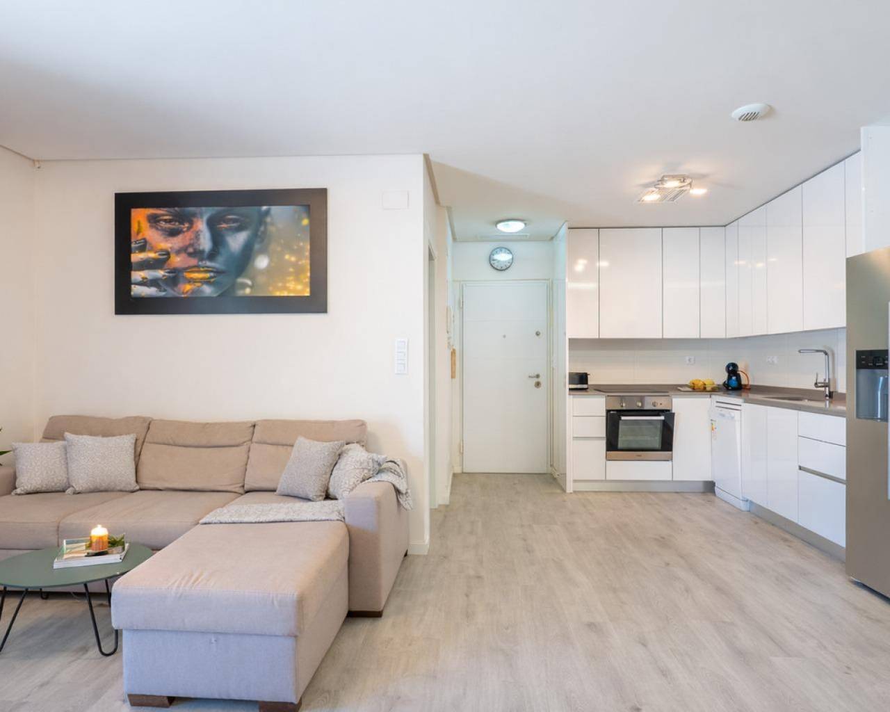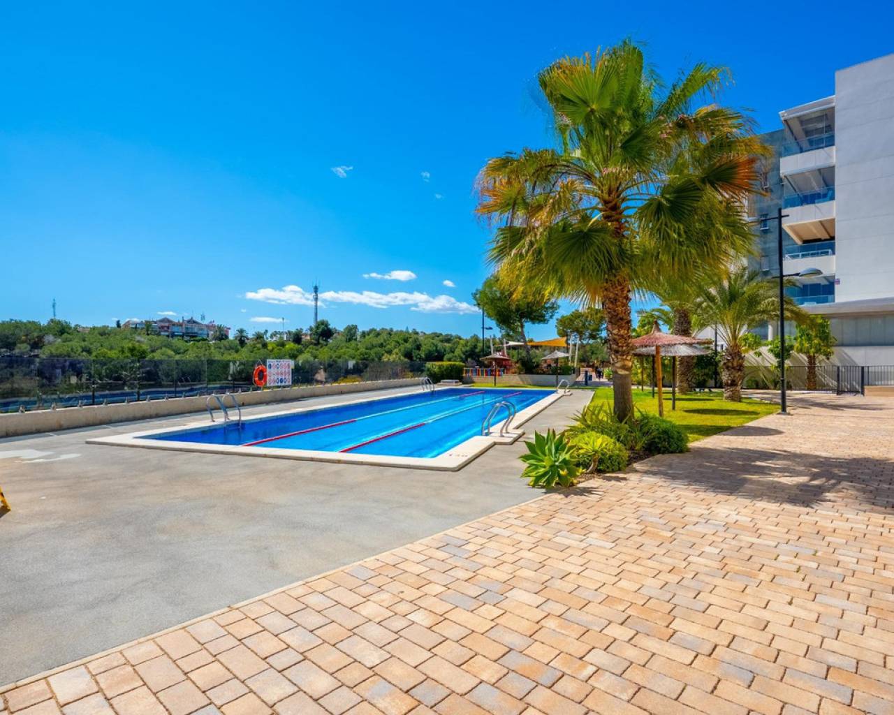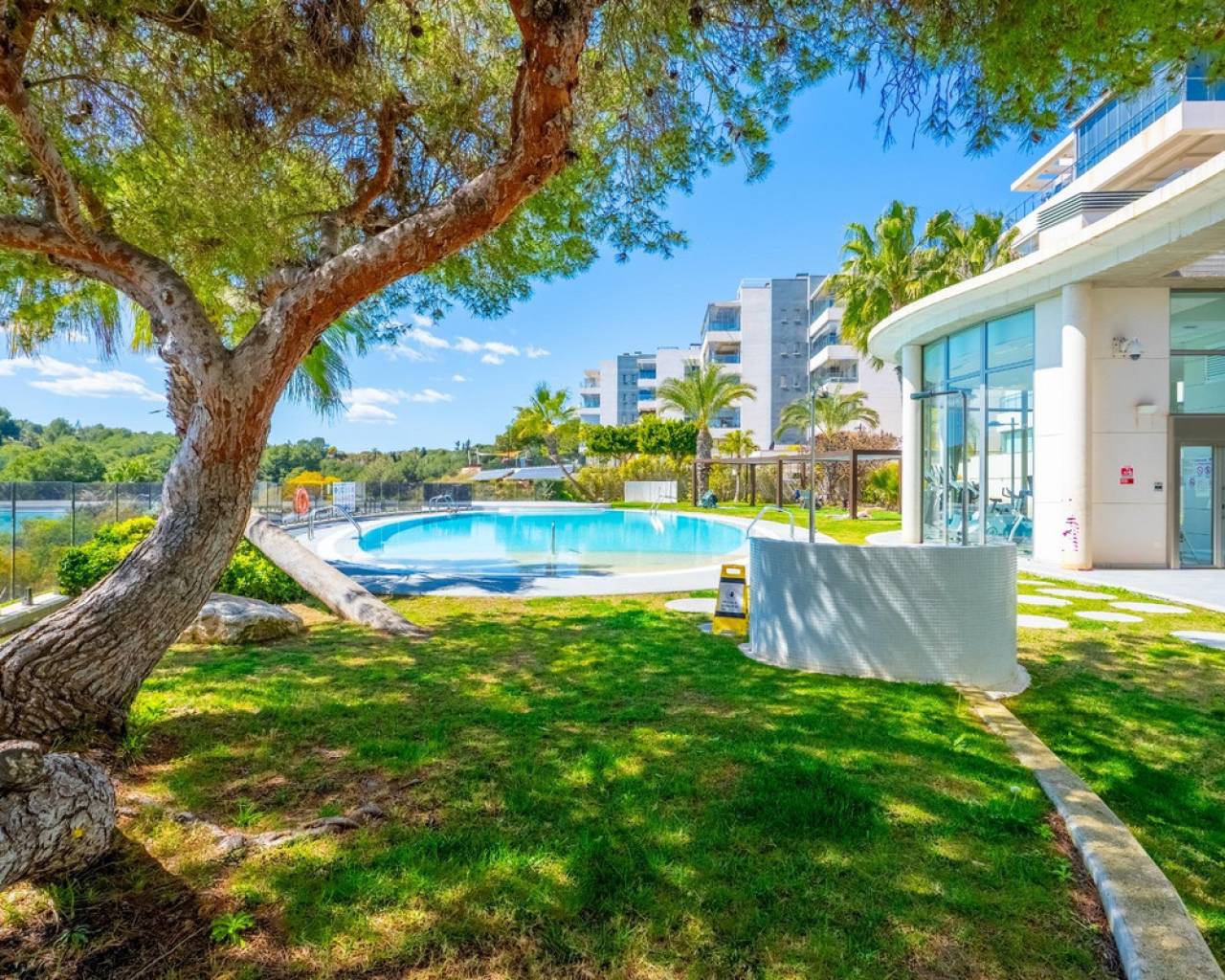 We present this modern apartment located in the exclusive Green Hills Residential, a luxurious recently built complex featuring a sauna, children's areas, a gym, and a swimming pool surrounded by spacious green areas. This is a resale new-build property in excellent condition, ready to move into. Located in the prestigious area of Orihuela Costa, one of the most sought-after locations, it is ideal for enjoying the Mediterranean climate, tranquility, and an active, healthy lifestyle. The property stands out for its comfortable and functional layout, as well as its great brightness. One of its main highlights is its spacious terrace, which features a glazed area with air conditioning and a relaxation space, perfect for year-round use, as well as an open outdoor area with excellent sunny orientation, ideal for sunbathing at any time of the year. The apartment includes a modern, fully furnished living room, a fully equipped designer kitchen in light tones, 3 bedrooms with built-in wardrobes, and 2 full bathrooms. In addition, it comes with a parking space, providing convenience and security for your vehicle. Located in a quiet and safe area, it offers excellent proximity to all kinds of services: shops, supermarkets, schools, and leisure areas. Just a few minutes away is Zenia Boulevard, the largest shopping center in the area. Nearby beaches such as La Zenia and Playa Flamenca are also major attractions. For leisure and sports, the proximity to Villamartín Golf, one of the most renowned golf courses in the area, stands out, along with other sports facilities. With more than 300 days of sunshine per year and a mild climate, this location allows you to enjoy outdoor activities all year round, such as seaside walks, water sports, golf, and an active social life. An ideal option as a permanent residence, holiday home, or investment on the Costa Blanca. The price does not include notary fees, registration costs, or taxes, which may vary according to current regulations in the Valencian Community.