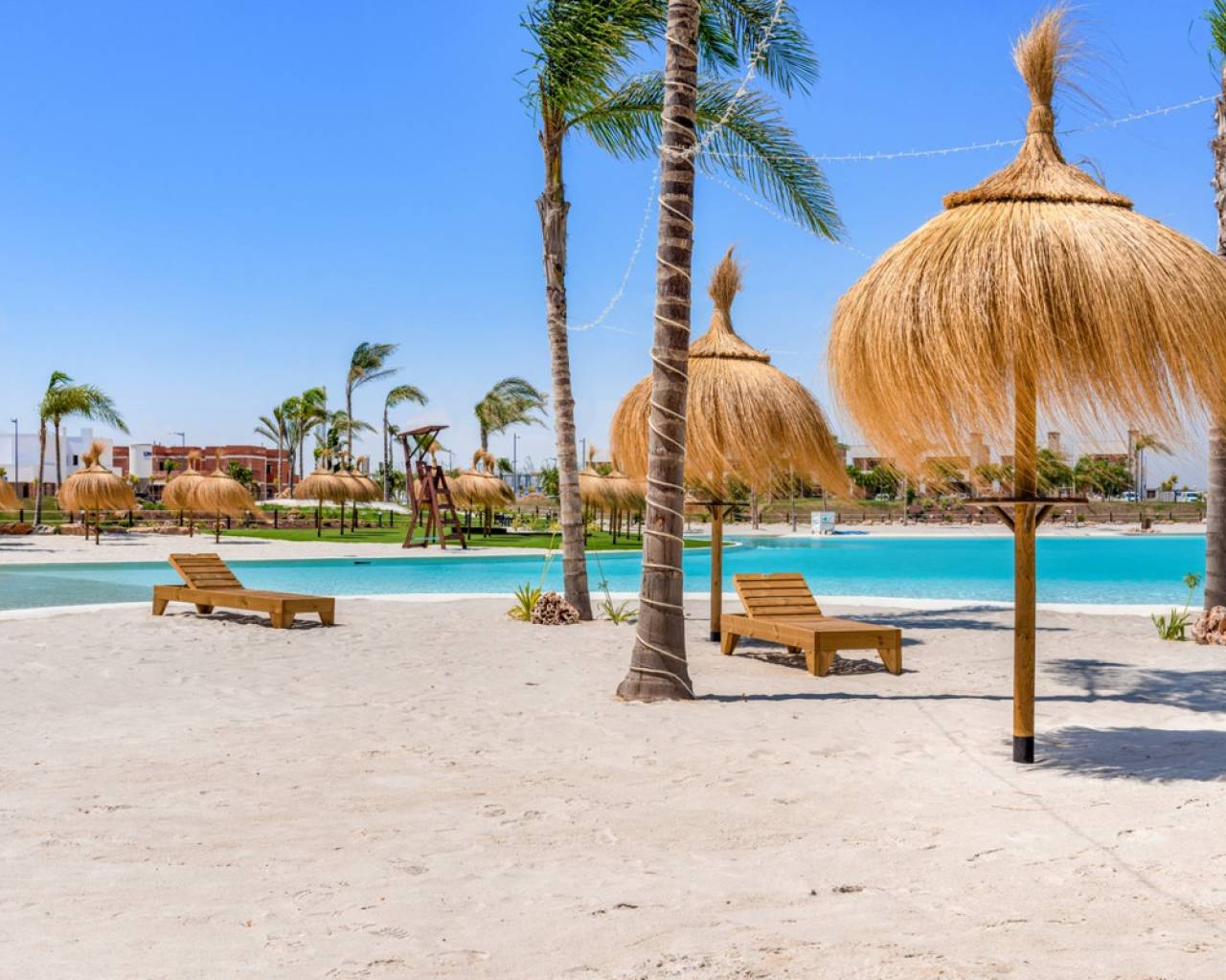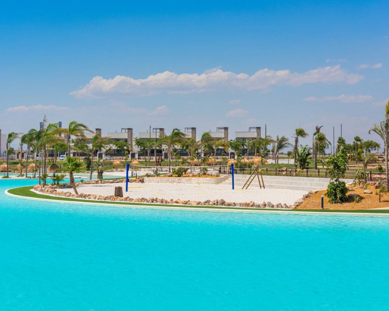 Are you looking for a unique property where comfort, luxury, and a true holiday atmosphere come together seamlessly? Then this exclusive ground-floor apartment is exactly what you've been searching for. This brand-new, never-before-inhabited residence is part of a prestigious and carefully designed development centered around a stunning turquoise lagoon – a rare and idyllic setting seldom found in Spain. This is a unique opportunity to own a turnkey, contemporary home in one of the most sought-after locations on the Costa Blanca. The layout has been thoughtfully designed to offer maximum comfort: three spacious bedrooms, two fully equipped bathrooms, a bright and open living area with a modern kitchen, and a large private terrace with your very own swimming pool. Everything is created to offer the ultimate living experience, perfectly blending indoor and outdoor life. Finished to the highest standards, the apartment features attention to detail and durable, low-maintenance materials, such as artificial grass on the terrace. The kitchen comes fully fitted with modern appliances, and the integrated air conditioning system ensures a pleasant indoor climate throughout the year. With its ground-floor location and direct access to the garden and pool area, you can enjoy your own private paradise any time of day. The location is simply unbeatable. The enchanting lagoon is just a short walk away, offering opportunities to swim, sunbathe, or relax in a truly serene setting. A variety of sports and leisure facilities are also nearby, making this property not only perfect for personal use but also highly appealing as a rental investment. Beautiful beaches, renowned golf courses, and vibrant coastal towns are all just a short drive away. Whether you're looking for a second home, a solid investment, or a permanent residence under the sun, this apartment truly offers it all. Be enchanted by this unique living experience in an exclusive and harmonious setting – a place where every day feels like a holiday.