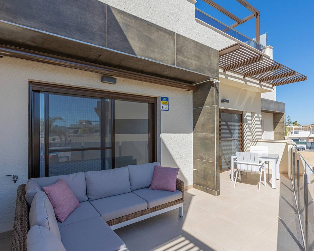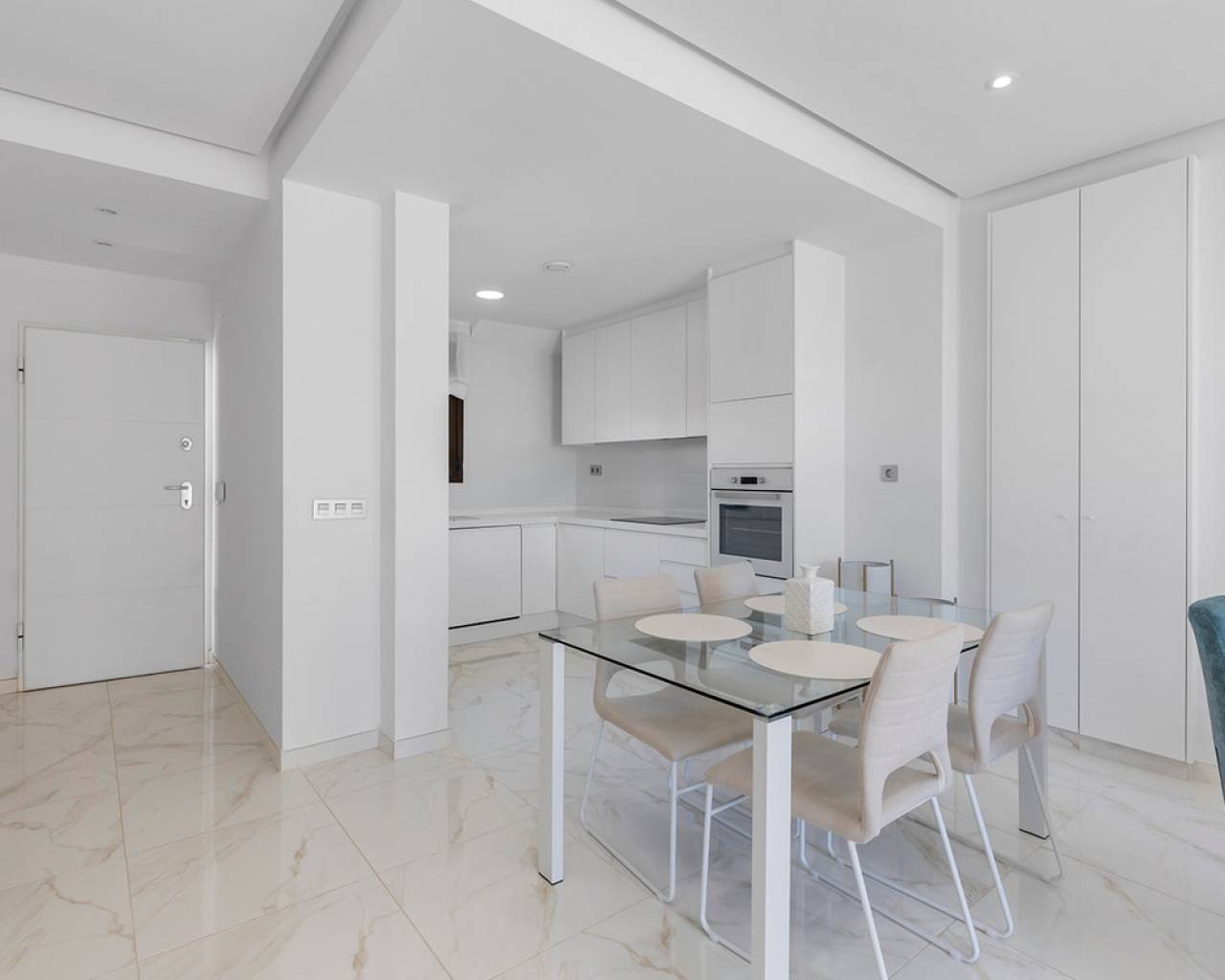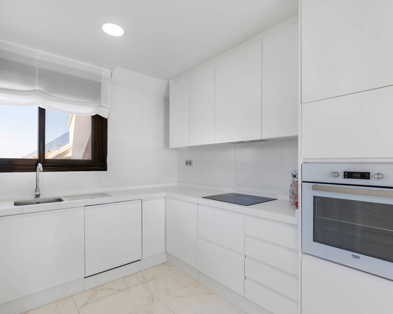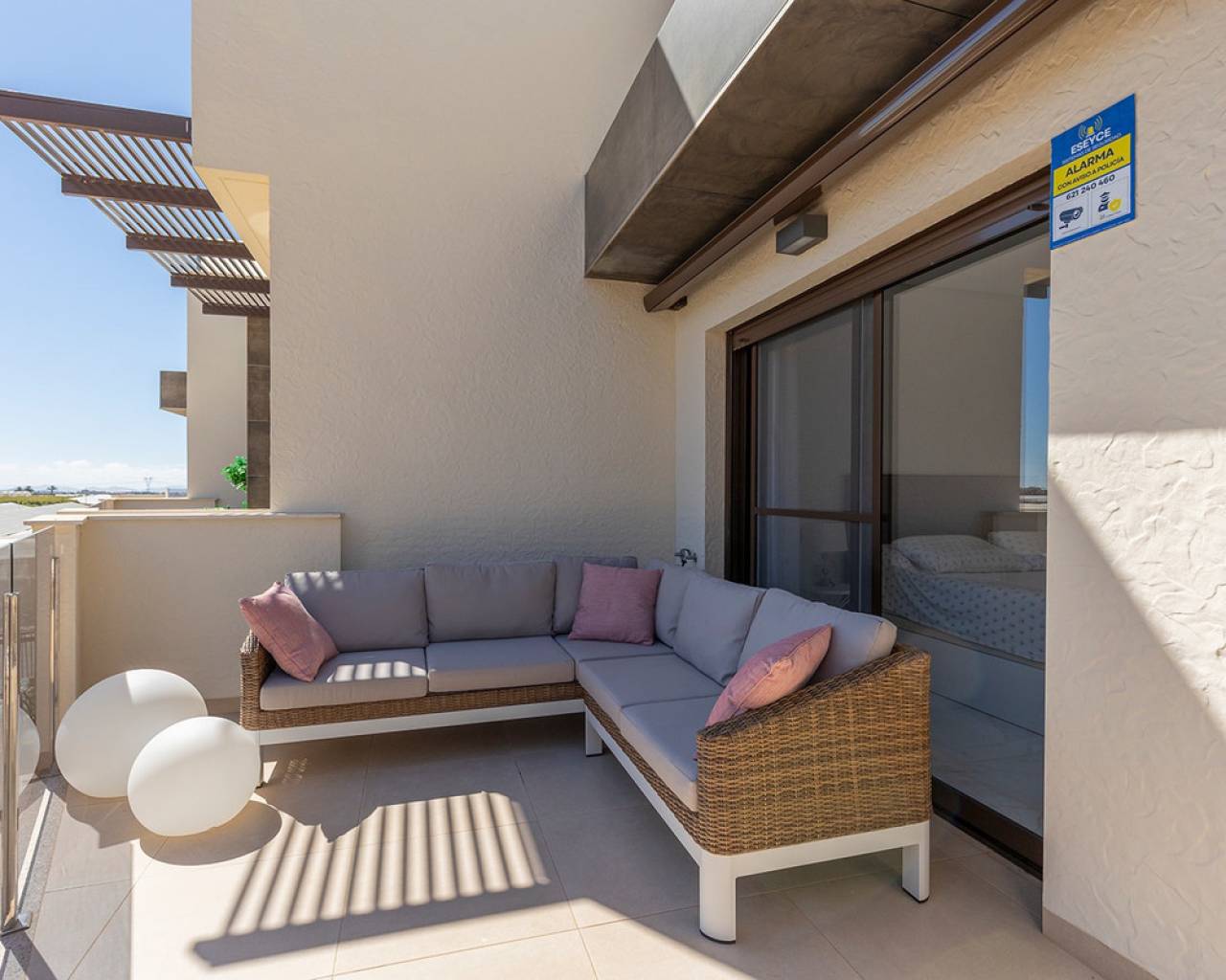 Welcome to this stunning, modern penthouse where comfort, tranquillity and luxury come together. Situated in a peaceful neighbourhood, this property offers the ideal setting to enjoy the Mediterranean lifestyle. The penthouse features two spacious bedrooms and two modern bathrooms, one of which is en-suite to the master bedroom. The property is finished to a high standard with quality materials and boasts a fully fitted, contemporary kitchen equipped with all modern conveniences. Adjacent to the living area is a cosy and spacious terrace with a sun awning. Fly screens are also fitted. One of the property's standout features is the spacious roof terrace. Here you will find a charming outdoor kitchen, perfect for long evenings with family and friends whilst enjoying the lovely climate. This property offers views of the communal swimming pool and jacuzzi, where you can relax and soak up the sun. A parking space is also included. Situated in the authentic Spanish village of Dolores de Pacheco, you can experience the tranquillity and charm of local life. There are numerous shops and amenities within a 10-minute drive. The location is ideal: just 4 km from the beaches of the Mar Menor, and for golf enthusiasts, Roda Golf is only 2 km away. Murcia Airport is a 25-minute drive away. Please do not hesitate to contact us for further information or to arrange a viewing.