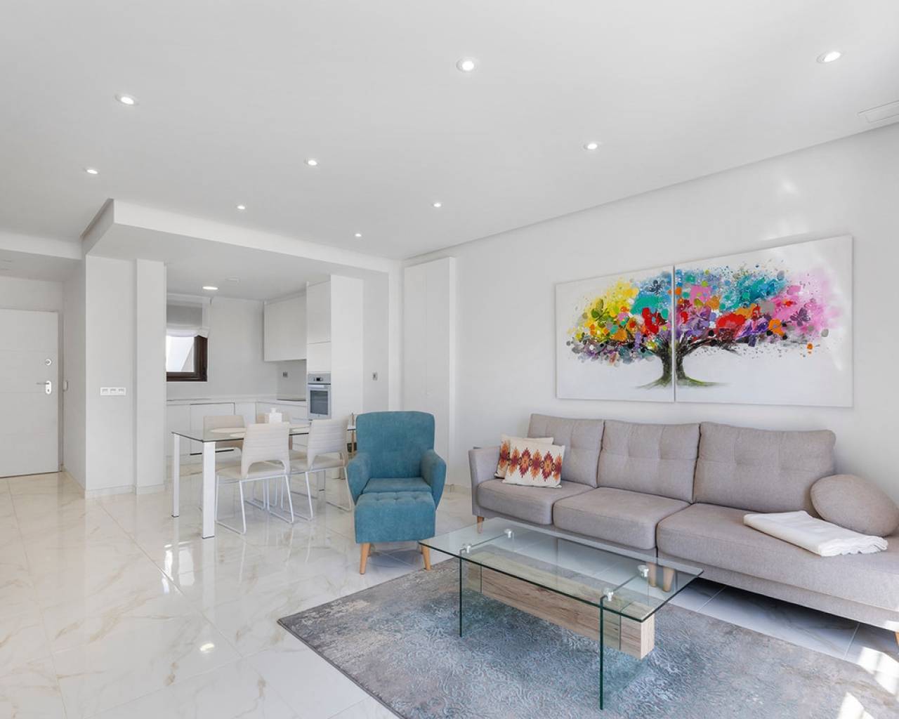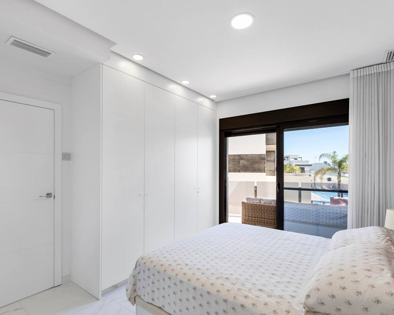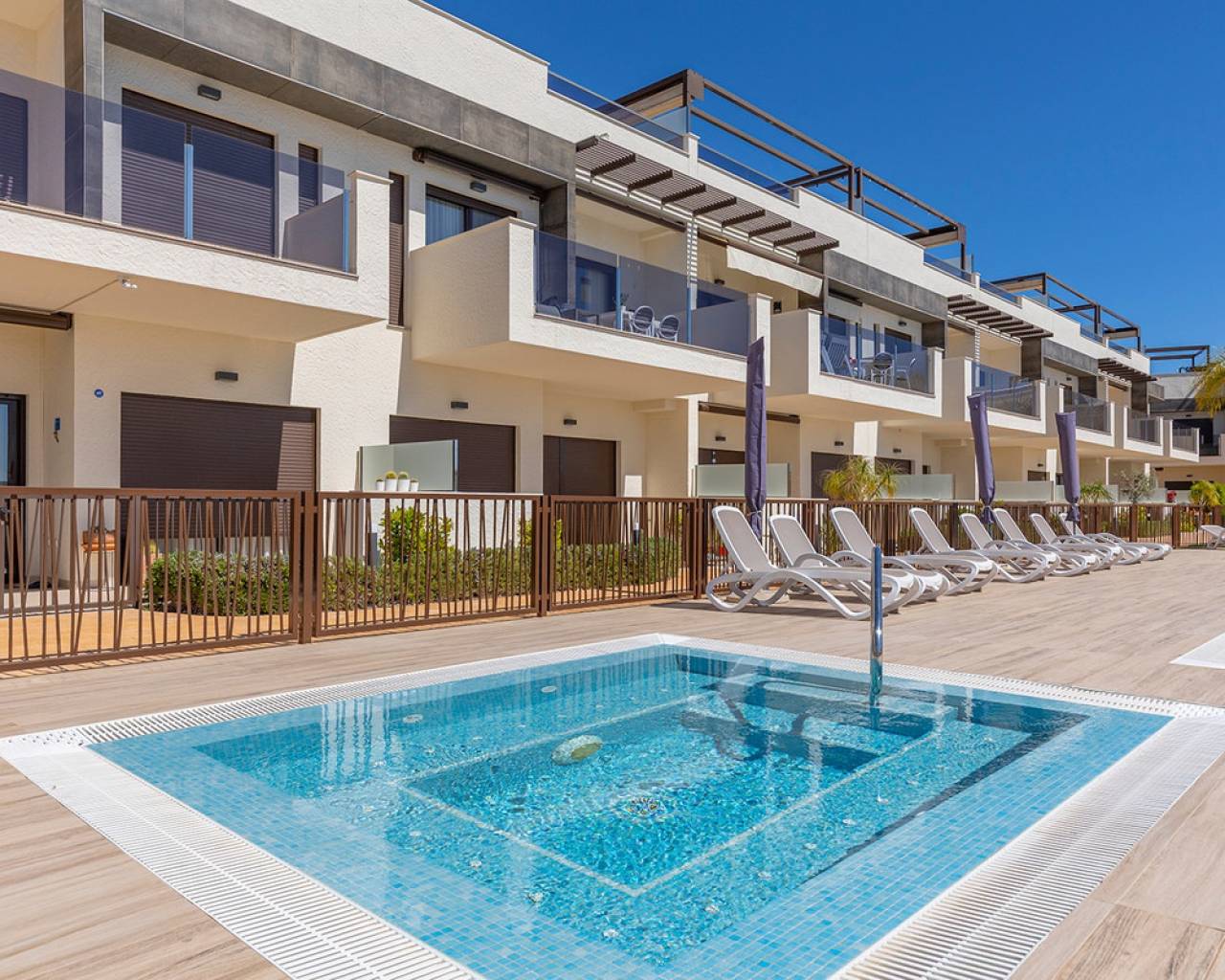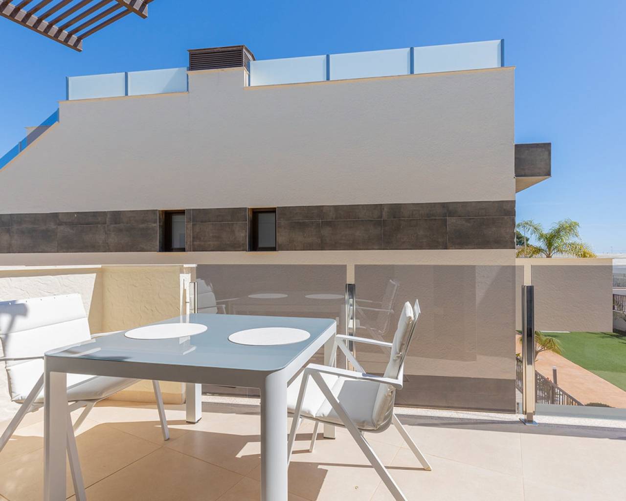 Welcome to this stunning, modern penthouse where comfort, tranquillity and luxury come together. Situated in a peaceful neighbourhood, this property offers the ideal setting to enjoy the Mediterranean lifestyle. The penthouse features two spacious bedrooms and two modern bathrooms, one of which is en-suite to the master bedroom. The property is finished to a high standard with quality materials and boasts a fully fitted, contemporary kitchen equipped with all modern conveniences. Adjacent to the living area is a cosy and spacious terrace with a sun awning. Fly screens are also fitted. One of the property's standout features is the spacious roof terrace. Here you will find a charming outdoor kitchen, perfect for long evenings with family and friends whilst enjoying the lovely climate. This property offers views of the communal swimming pool and jacuzzi, where you can relax and soak up the sun. A parking space is also included. Situated in the authentic Spanish village of Dolores de Pacheco, you can experience the tranquillity and charm of local life. There are numerous shops and amenities within a 10-minute drive. The location is ideal: just 4 km from the beaches of the Mar Menor, and for golf enthusiasts, Roda Golf is only 2 km away. Murcia Airport is a 25-minute drive away. Please do not hesitate to contact us for further information or to arrange a viewing.
