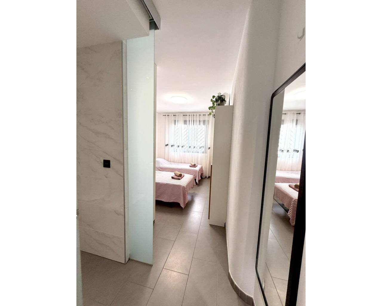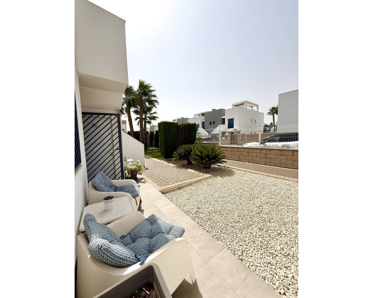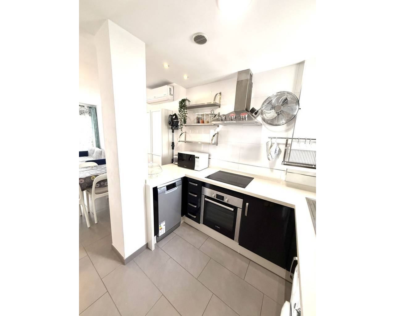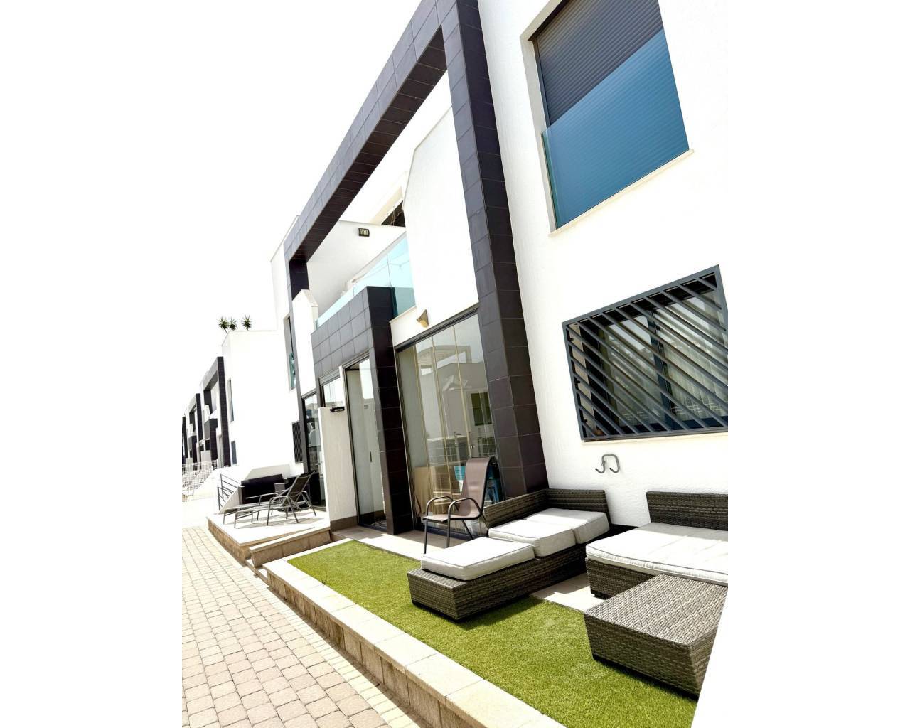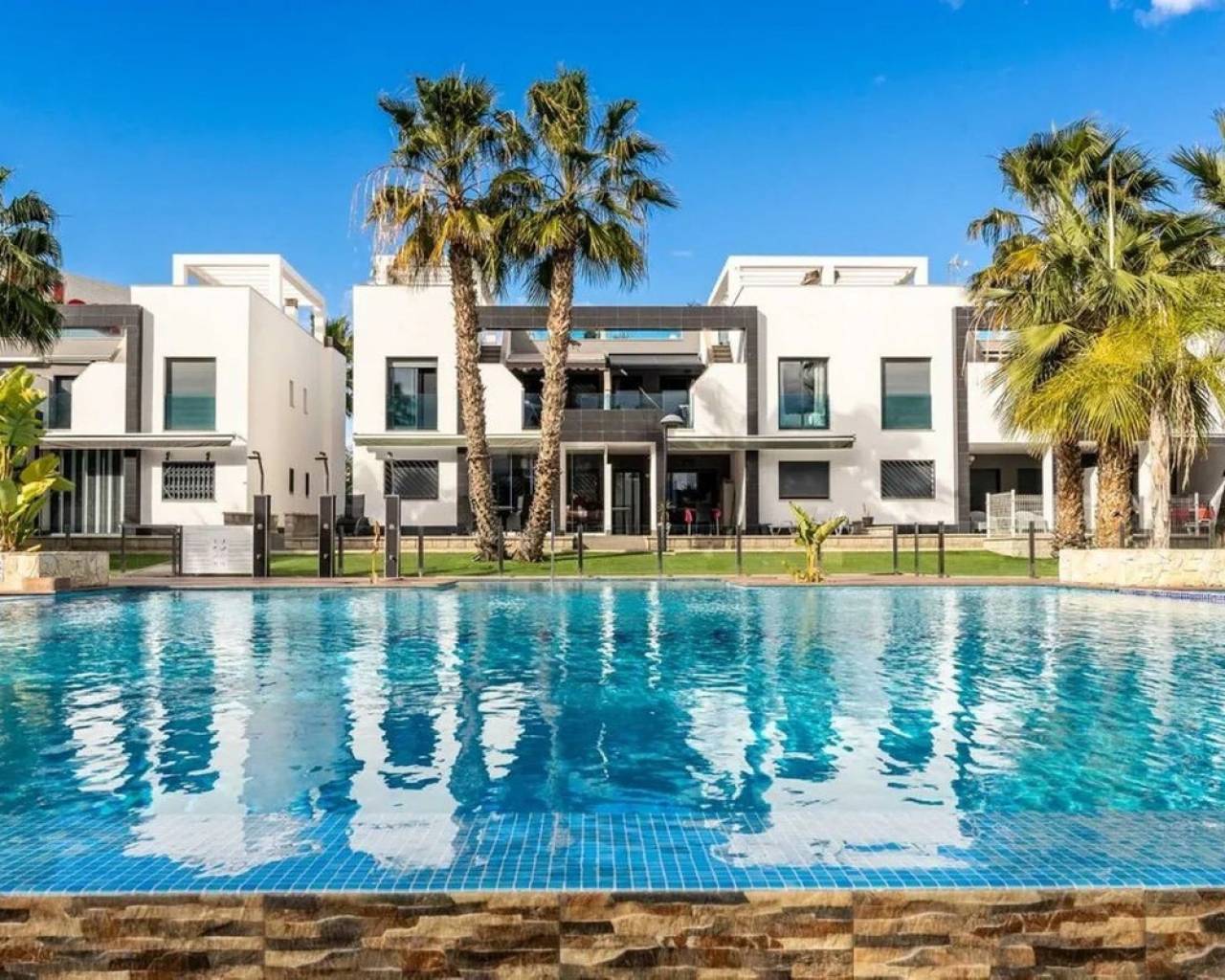 This ground floor apartment combines modern style, comfort, and a truly unbeatable location close to all amenities. Property Highlights: 2 spacious bedrooms (master with en-suite) 2 stylish bathrooms Bright & open-plan living room with access to a large sunny front terrace – ideal for afternoon coffee or evening gatherings Fully equipped American-style kitchen with premium appliances Sold fully furnished Extras: air conditioning, fibre optics, reinforced security doors 1 underground parking space included Unique Outdoor Spaces: The property offers not one, but two terraces. At the front, a spacious open terrace lets you enjoy the Mediterranean sun from lunch and all day long. On the pool side, the terrace has been beautifully glazed in, creating an additional living space you can use all year round – perfect as a dining area, lounge or winter garden. Just outside, there is also a smaller patio for enjoying morning sun and fresh air in privacy. Community & Location: Set in a sought-after gated residential complex with beautifully maintained gardens and a refreshing communal pool, this home is ideal both as a holiday retreat and a comfortable year-round residence. The location is second to none – just a short walk to La Zenia Boulevard shopping centre, with its countless shops, restaurants, cafés, supermarkets and leisure options. The golden beaches of La Zenia and the sparkling Mediterranean are only minutes away.