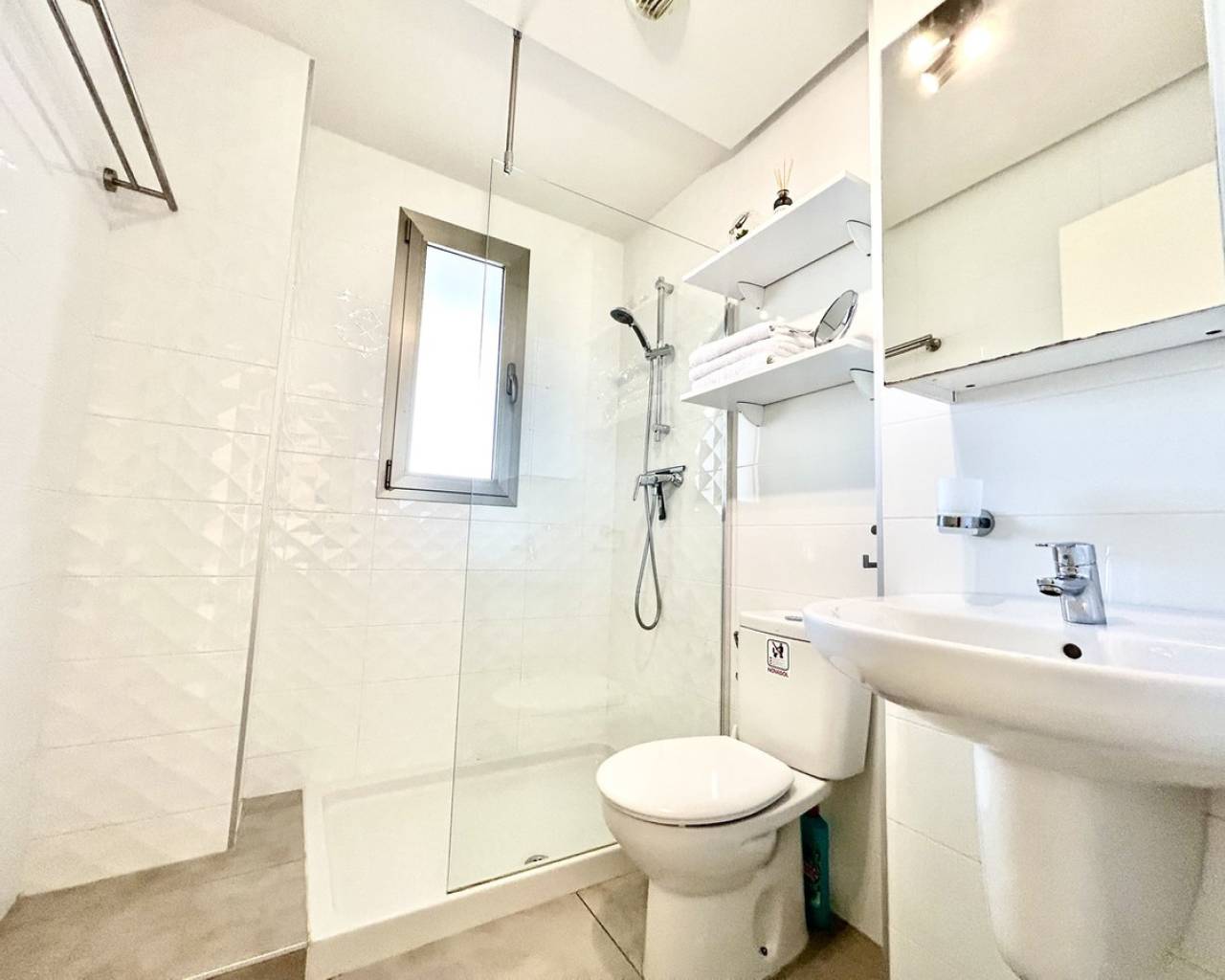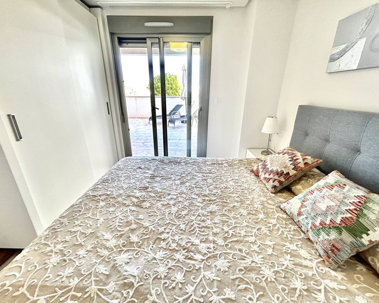 Discover this spacious 2-bedroom, 2-bathroom ground floor apartment in the sought-after Altos del Mediterráneo, perfectly positioned for both convenience and lifestyle. The apartment offers generous living space throughout, ideal for comfortable year-round living or as a stylish holiday retreat. Being on the ground floor, it provides easy access and a seamless indoor-outdoor flow—perfect for enjoying the Mediterranean climate. Located just a stone's throw from the vibrant Los Dolses Commercial Centre, you'll have an excellent selection of bars, restaurants, supermarkets, and shops right on your doorstep. The ever-popular La Zenia Boulevard is also within walking distance, offering one of the largest shopping and leisure destinations in the region. For beach lovers, the stunning Orihuela Costa coastline is less than a 10-minute drive away. Residents of the complex enjoy access to fantastic communal facilities, including a swimming pool, sauna, and fully equipped gym—perfect for relaxation and staying active all year round. The property also benefits from its own private parking space within the secure gated community, adding extra comfort and peace of mind. A superb opportunity to own a well-located, spacious home in one of the Costa Blanca's most desirable areas.