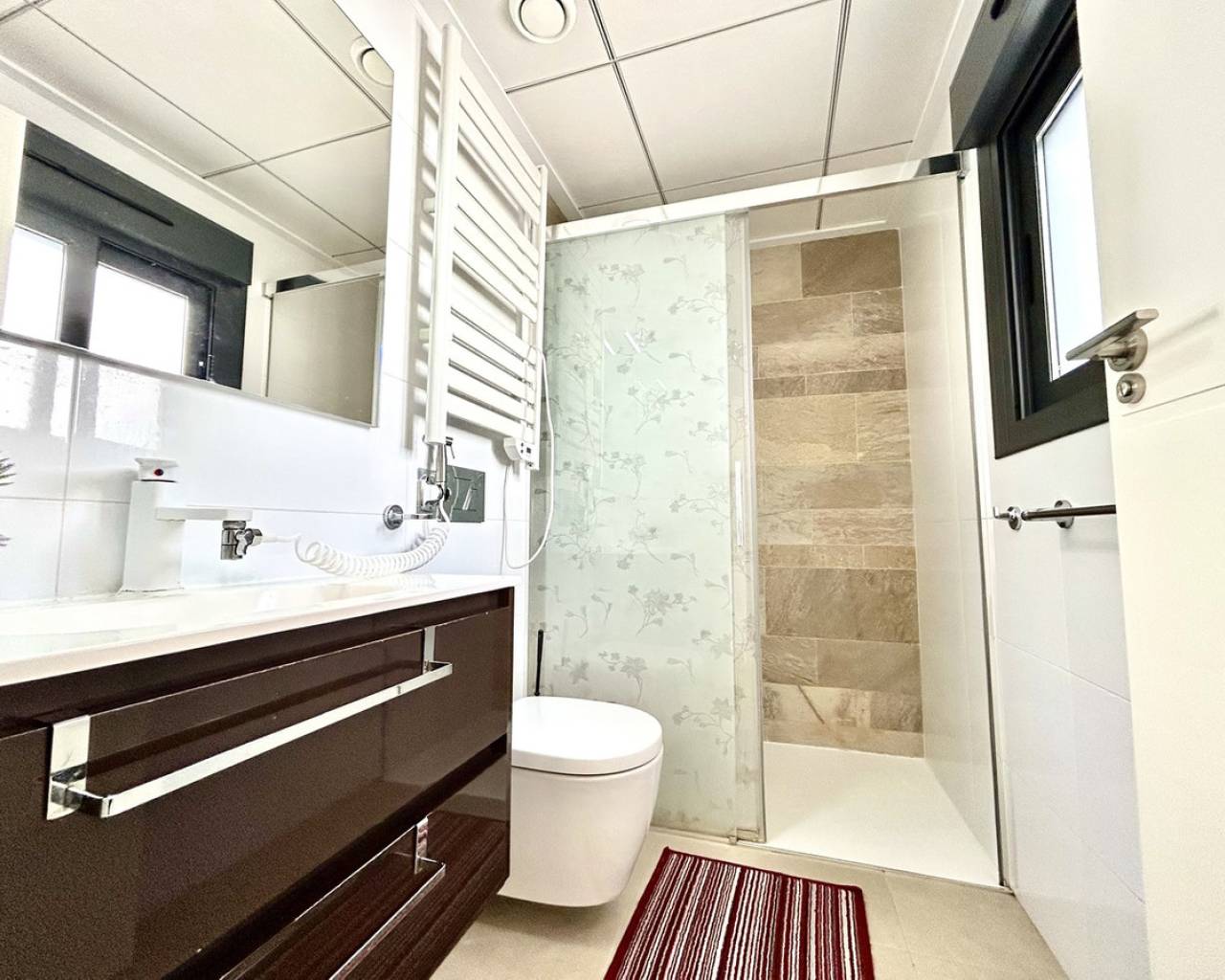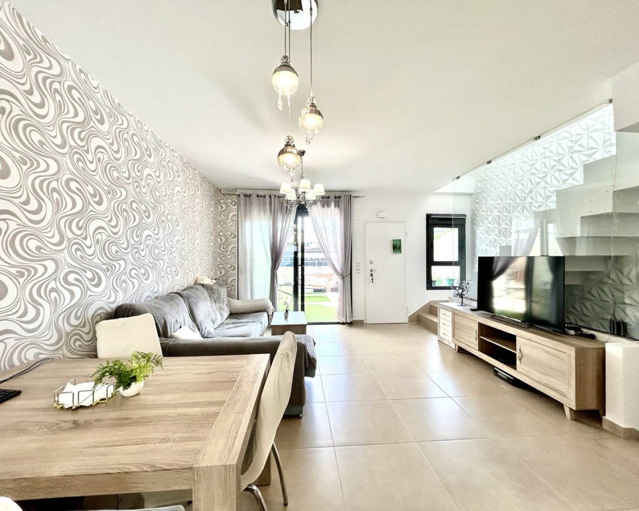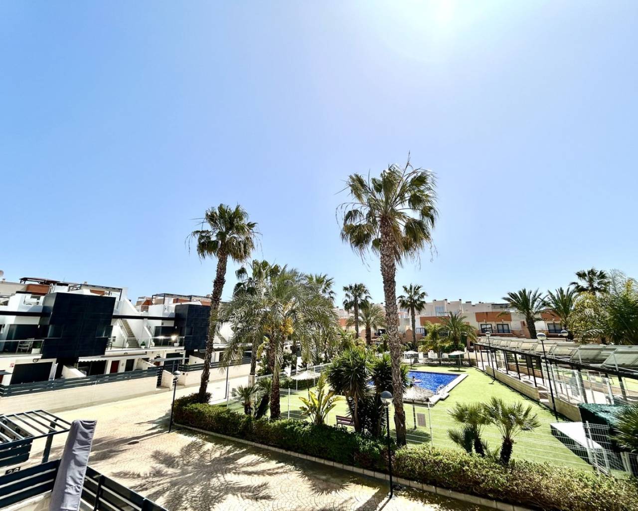 Discover this stunning south-facing 3-bedroom, 3-bathroom townhouse in the beautiful Royal Manantial, offering fantastic views over the lush communal gardens and inviting pool areas. This exceptional property combines space, comfort, and an ideal orientation to enjoy sunshine throughout the day. Upon entering, you'll find a spacious private garage with direct access into the home—providing both convenience and security. The ground floor features a bright living area, a fully equipped kitchen with a separate utility room, as well as a bedroom and bathroom, perfect for guests or flexible living. Upstairs, both bedrooms benefit from en-suite bathrooms. The master bedroom enjoys direct access to a private balcony with lovely open views, as well as access to a rooftop solarium—an ideal spot for sunbathing or relaxing while taking in the surroundings. The second bedroom also boasts its own private outdoor space, adding to the home's appeal. Outside, the property offers a sunny private garden, perfect for outdoor dining and entertaining. The gated community is beautifully maintained and features two communal swimming pools, one of which is heated using solar power. Residents can also enjoy a spacious seating area and a children's playground, making it ideal for families. With four separate entrances, the complex offers both accessibility and exclusivity in a peaceful yet well-connected location. A truly outstanding home, perfect for enjoying the Mediterranean lifestyle in style and comfort.