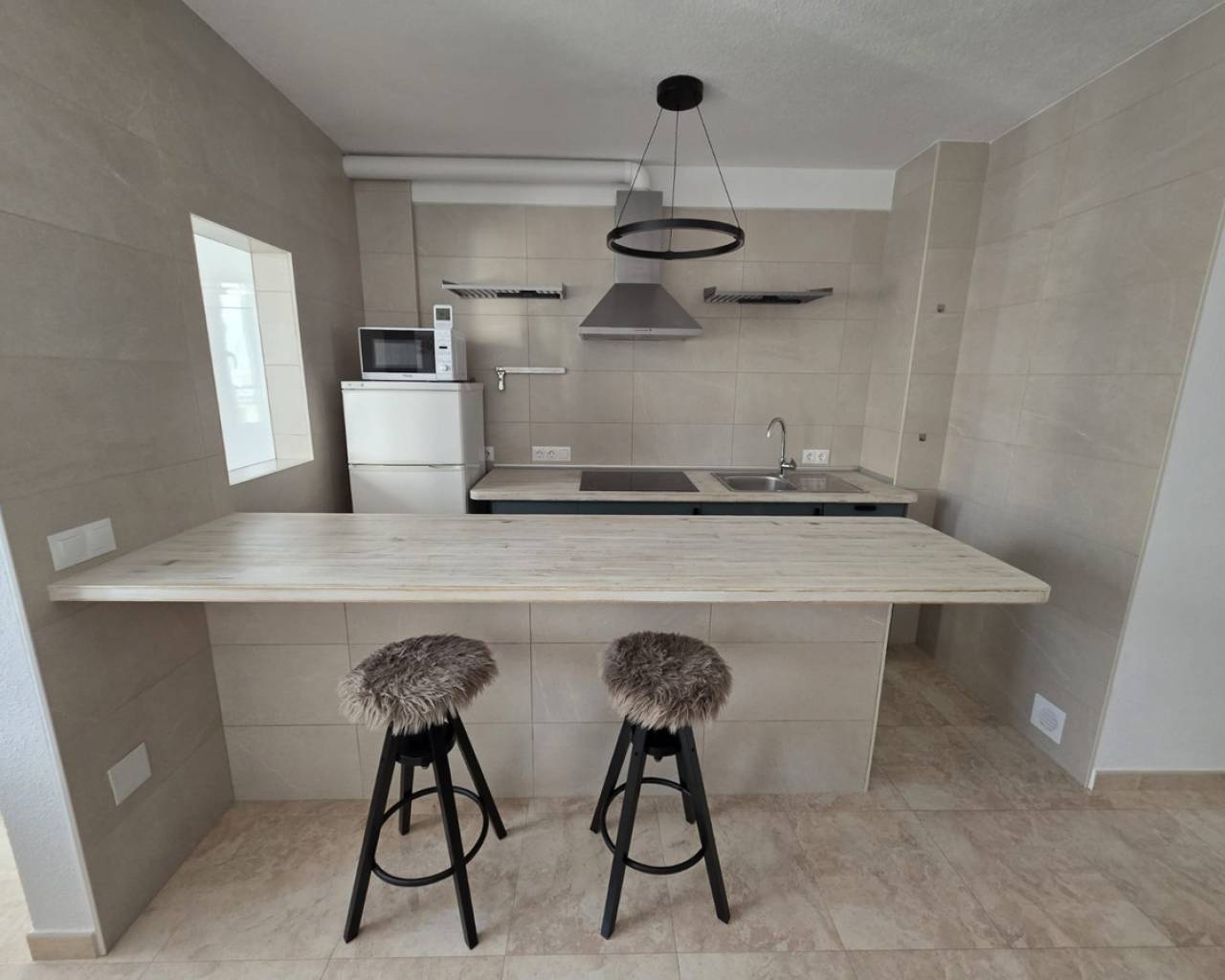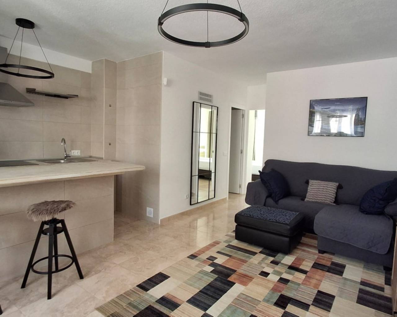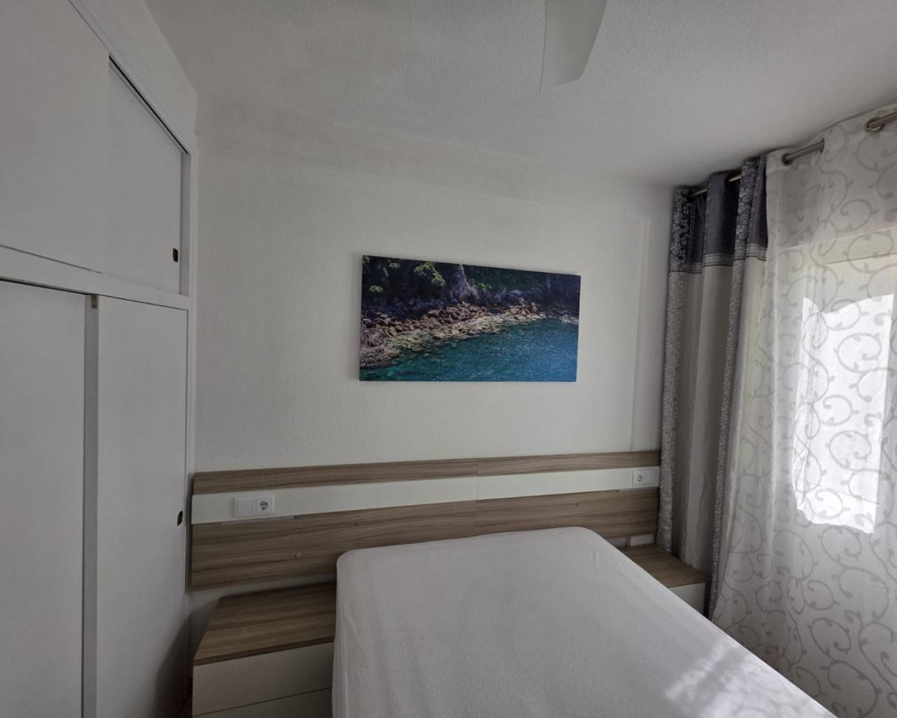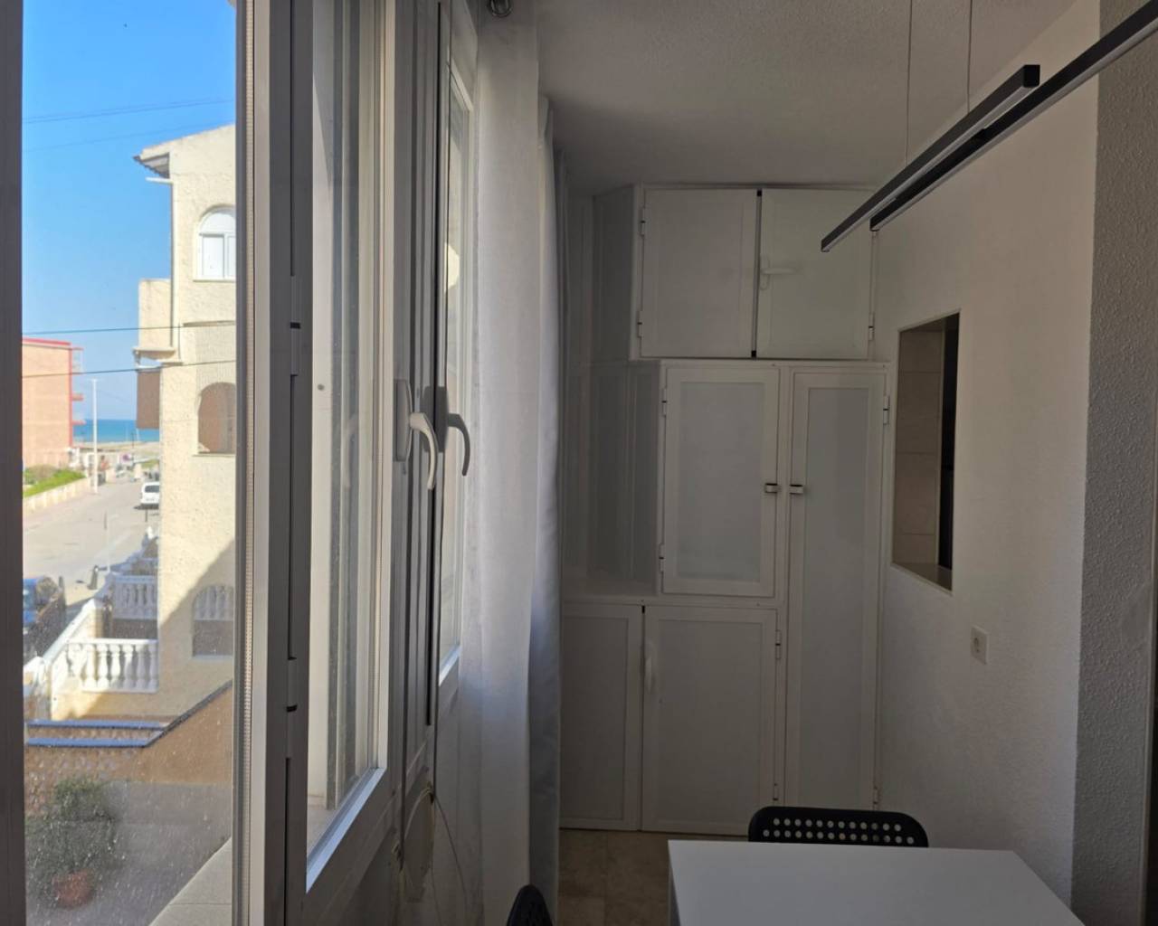 2 bedroom apartment just 50 meters from the beach, with side sea views and fully renovated, ideal as a permanent residence, holiday home, or investment. The property features two bedrooms with high-quality beds and mattresses, as well as built-in wardrobes that provide convenient storage space. It includes a fully equipped bathroom with a bathtub, bidet, vanity unit, and mirror. The living area is integrated with an open-plan American-style kitchen with an island, fully equipped with appliances, creating a modern, practical, and functional space. The living room is furnished and includes a sofa and a foldable table, optimizing the use of space. One of the highlights of the property is its two large vertical folding windows, which provide plenty of natural light, sea view, ventilation and gives a pleasant atmosphere. The property has been upgraded with a complete plumbing renovation, new windows and doors with thermic and acoustic insulation, as well as a new water heater, ensuring greater comfort and efficiency throughout the year. Located just 50 meters from the sea, it allows you to enjoy the beach within less than a minute's walk. The area offers all necessary services, including supermarkets, restaurants, transport, and leisure areas. An excellent opportunity for those who are looking for a move-in ready home and close to the beach. For more details and viewings, please contact us.