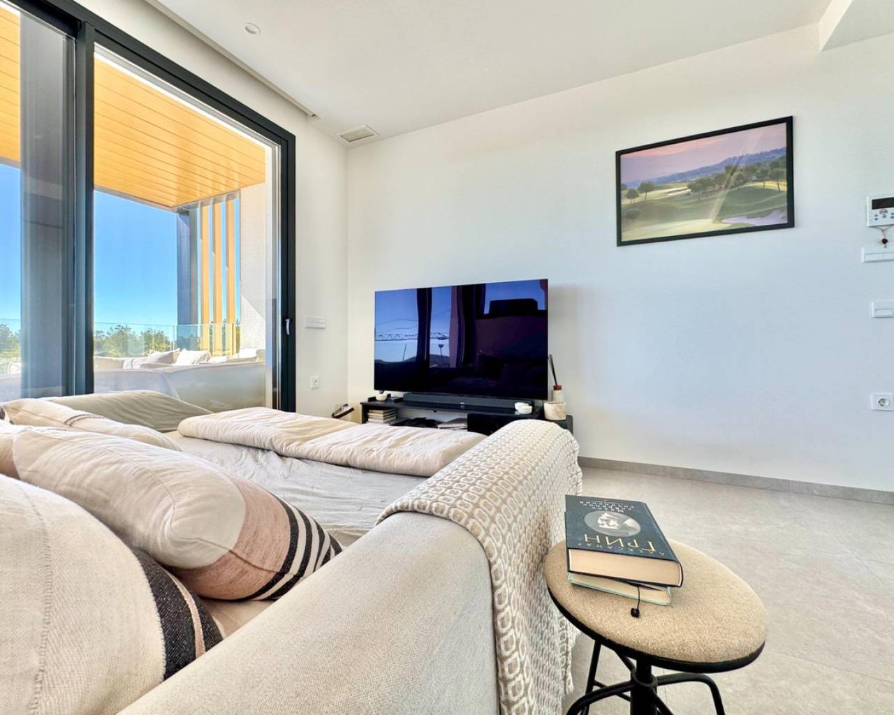 sunny and modern 2-bedroom apartment with pool view in las colinas golf~~welcome to this bright and well-designed apartment where comfort, light and a relaxed lifestyle come together. the open-plan kitchen and living area form the heart of the home, creating a pleasant space to cook, unwind or spend time with family and friends.~~large windows allow plenty of natural light to flow in and lead you out to the sunny terrace with a lovely view over the communal pool — the perfect place to enjoy the mediterranean climate throughout the day.~~the master bedroom features an en-suite bathroom and offers a calm and comfortable atmosphere. the second bedroom is ideal as a guest room, office or additional space, depending on your needs.~~this property also comes with a private garage and storage room, and residents can enjoy a beautifully maintained communal pool, ideal for cooling off or relaxing in the sun.~~located in the exclusive surroundings of las colinas golf, you benefit from peace and privacy while still being within easy reach of restaurants, cafés, supermarkets and the beautiful beaches of the costa blanca.