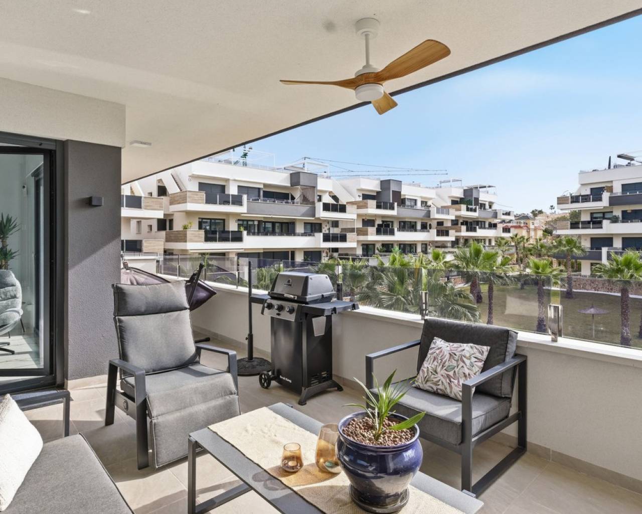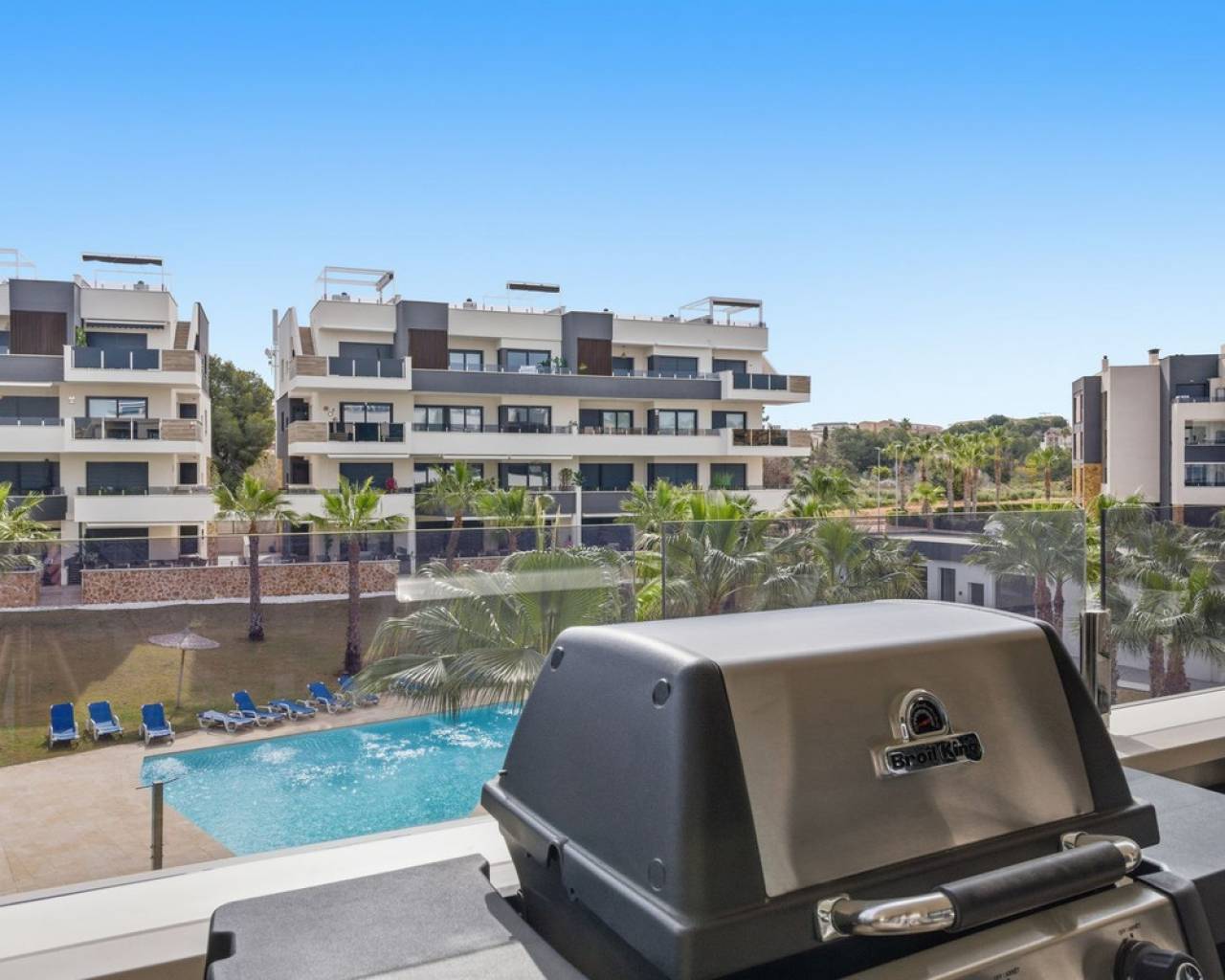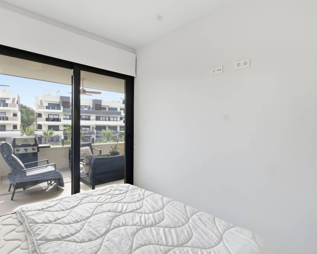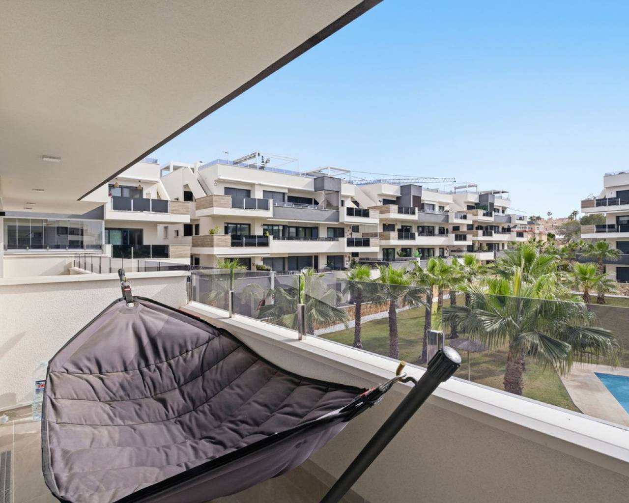 Luxury new-build apartment with large terrace in Amanecer X – resort with pool, gym & spa Luxury apartment for sale in Amanecer X – Los Altos, Orihuela Costa Discover this nearly new luxury apartment (construction started in 2023) in the prestigious Amanecer X residential complex in Los Altos – Orihuela Costa. This modern apartment combines comfort, design and a prime location, making it ideal as a holiday home, permanent residence or investment. Layout & Living Comfort The apartment features a bright open-plan living area with large windows that provide plenty of natural light and direct access to the spacious terrace. The modern designer kitchen is fully equipped with high-quality appliances and integrates seamlessly with the living room. 2 spacious bedrooms with built-in wardrobes located on the terrace side 2 modern bathrooms Open-plan living area with abundant natural light Luxury finishes throughout the apartment Outdoor Space Enjoy the Spanish lifestyle on the spacious private terrace of 29 m² with views over the beautifully landscaped gardens and the swimming pool. Key Features Private terrace of 29 m² Underground parking space and storage room included Airzone climate control system Underfloor heating in the bathrooms Electric shutters Move-in ready & recently built (2023) Exclusive Residential Resort Amanecer X offers a resort-style experience with high-end facilities: Large communal swimming pool Children's pool Gym Jacuzzi and sauna Beautifully landscaped tropical gardens Prime Location – Orihuela Costa Perfectly located in Los Altos, within walking distance of all amenities: ?️ 5 min – La Zenia Boulevard ⛳ 10 min – several golf courses ? 10 min – beaches of Orihuela Costa ?️ Restaurants and supermarkets within walking distance ? Ideal for: ✔ Holiday rentals ✔ Personal use ✔ Investment with return