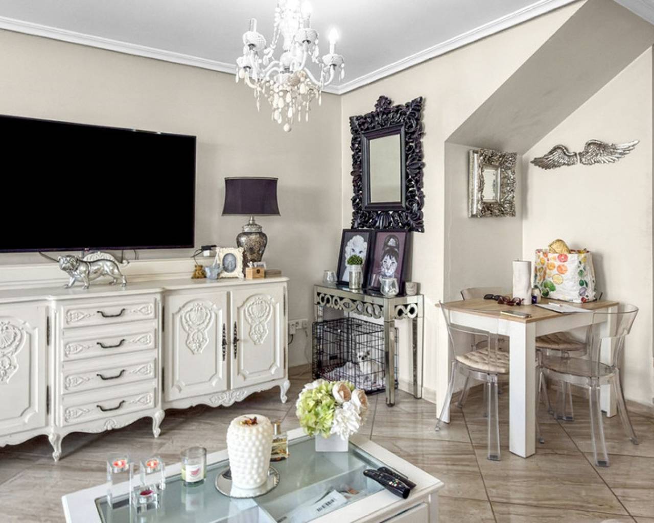 Step into this beautifully renovated townhouse in the sought-after area of La Florida — where modern comfort meets Mediterranean lifestyle. Recently refurbished to a high standard, the property offers a bright and open living and dining area, seamlessly connected to a spacious sun-drenched terrace through large sliding doors. This creates a perfect indoor-outdoor living experience, ideal for relaxing or entertaining throughout most of the year. Upstairs, you'll find two well-sized bedrooms and two bathrooms, along with a fantastic rooftop solarium on the third floor — complete with storage space and the possibility to easily create a third bedroom if desired. The home is part of a quiet and well-maintained community, featuring a large communal pool and green surroundings. All essential amenities such as restaurants, bars, shops, and parks are just a short walk away, while the beautiful beaches of Orihuela Costa are less than 10 minutes by car. Key Features 3 floors townhouse 100 m² built 2 bedrooms (option for 3rd) 2 bathrooms Large sunny terrace Private solarium with storage Fitted wardrobes Communal pool Excellent location close to all amenities