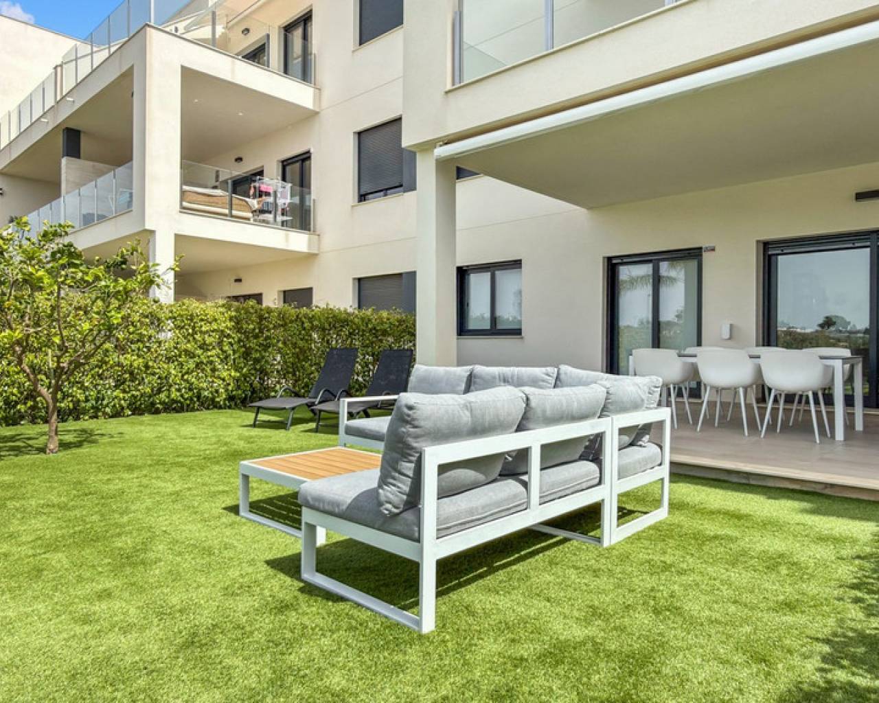 Welcome to this stunning ground floor apartment located in the prestigious Lo Romero Golf Resort – a perfect combination of modern comfort, prime location, and beautiful surroundings. Built in 2023 and presented in as-new condition, this stylish home offers 2 spacious bedrooms and 2 modern bathrooms, designed with both functionality and elegance in mind. The property features two generous terraces, allowing you to enjoy the sun throughout the entire day. At the front, you have a charming terrace with morning sun – ideal for breakfast and relaxed starts to the day. At the back, a large private terrace that offers sun from midday until evening, with beautiful views over the communal pool and the golf course & equipped with an awning for when shadow is required. The apartment is sold fully furnished with fitted alarm & camera surveilence system, ready to move into, and includes private parking within a secure gated community. This is a perfect choice for golf lovers, holiday home buyers, or investors looking for a modern property in a high-demand area.