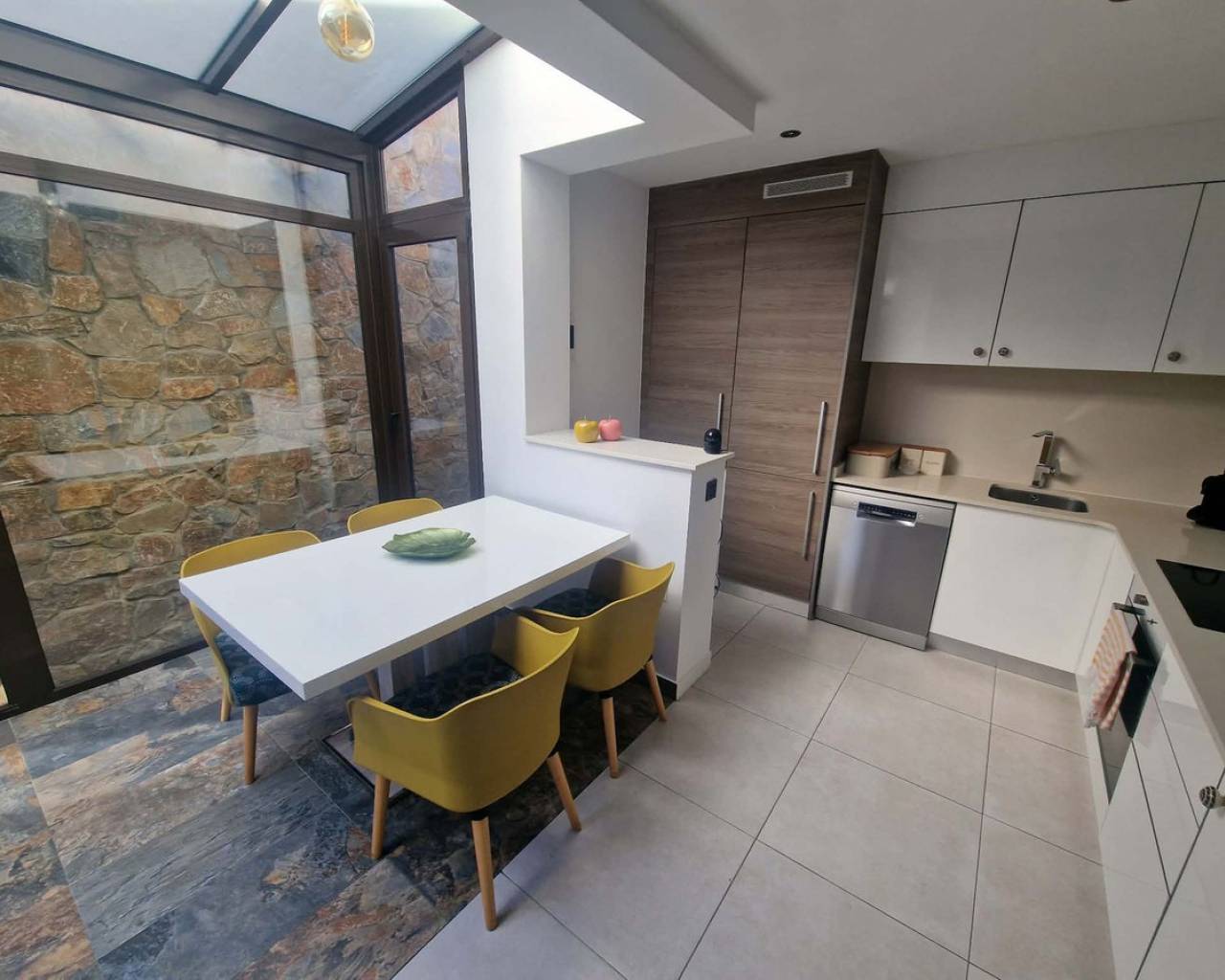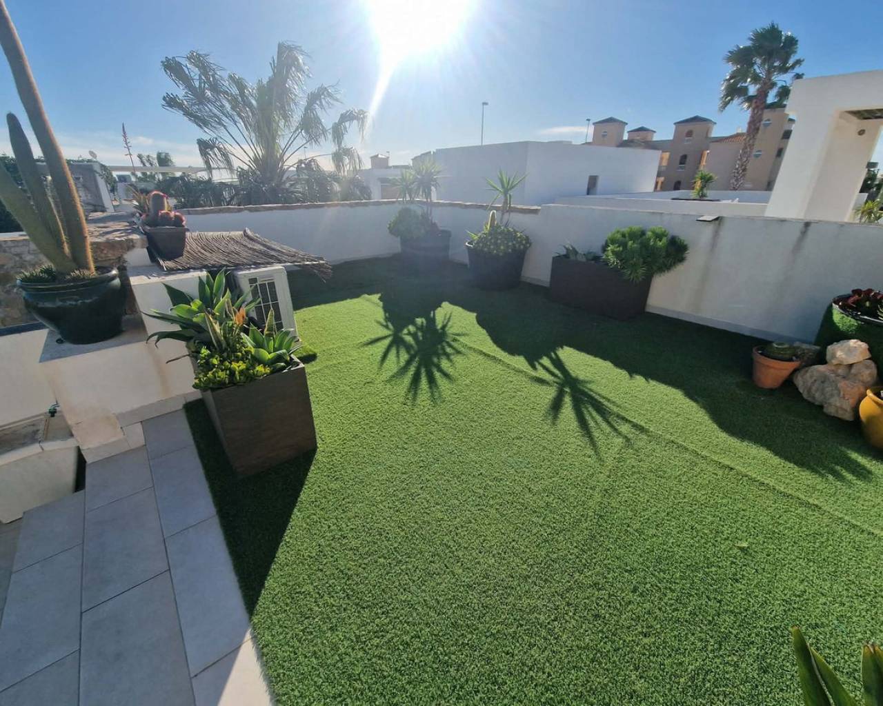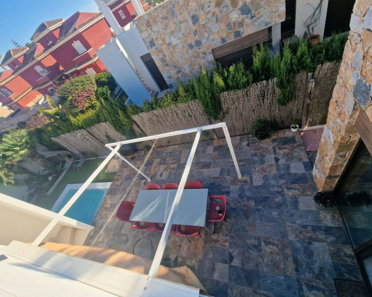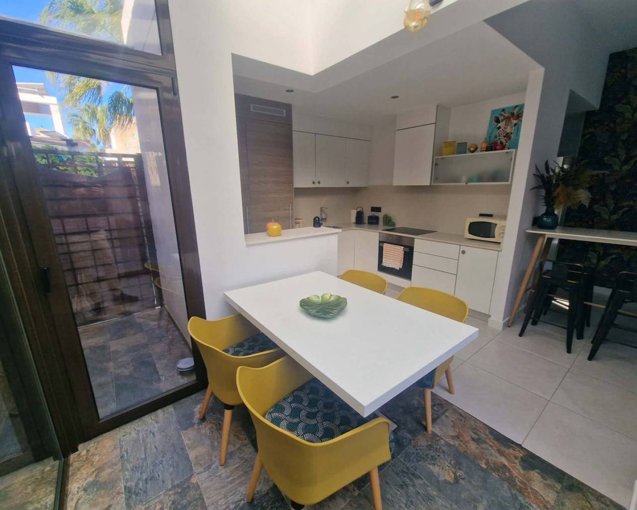 Welcome to Orihuela Costa. We are pleased to present a charming villa in mint condition. 2 bedrooms, 2 bathrooms, open-plan kitchen, bright dining room, living room with direct access to the garden and private swimming pool. Private sun terrace with sunshine all day long. Reversible air conditioning in every room. Pellet stove. Sold furnished. Alarm system. Painted 2 months ago. Parking space in front of the house. The Lomas de Cabo Roig neighbourhood is a quiet area, just 2.5 km from the seafront and beaches. Bars and restaurants 400 metres away. Mini-golf in the neighbourhood. 5 minutes' drive from the region's best golf courses. 60 km from Murcia and Alicante airports. Translated with DeepL.com (free version)
