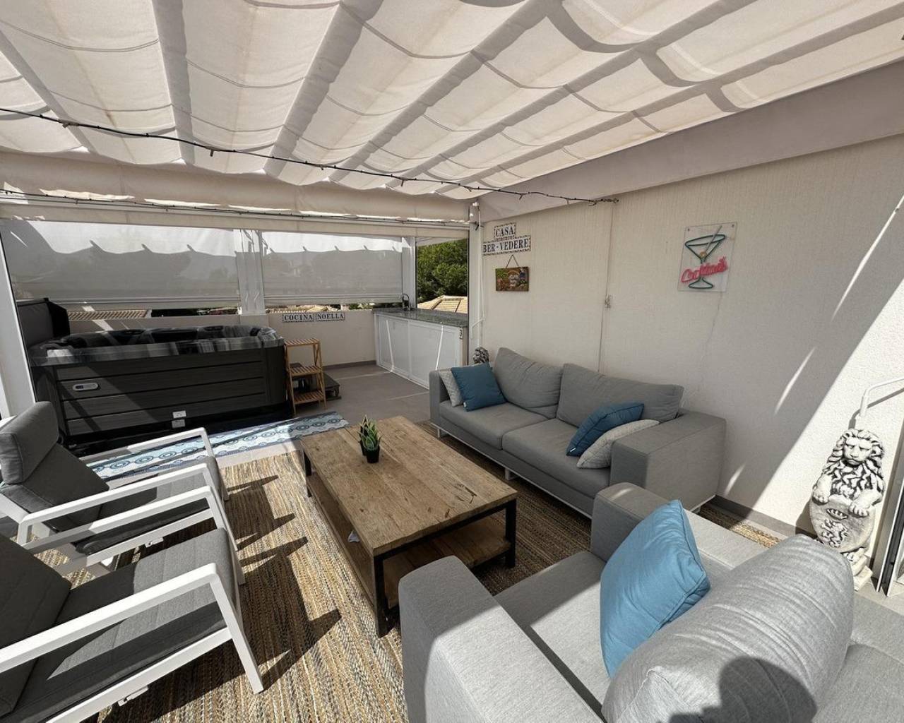 Sea View Penthouse with Private Jacuzzi for Sale in Orihuela Costa~~Modern sea view penthouse for sale in Orihuela Costa, located in the exclusive VillaCosta III residential complex. Delivered in January 2024, this newly built property offers 160 m2 total space including a private solarium, panoramic sea views, excellent privacy, and a turnkey interior.~~Private Solarium with Jacuzzi & Sea Views~~The highlight of this penthouse is the private rooftop solarium featuring a luxury outdoor jacuzzi with open sea views. Designed for outdoor living, the solarium includes:~•Outdoor dining area for six~•Quality lounge furniture~•Two large awnings and sun umbrella~•High level of privacy~~Ideal for sunbathing, entertaining, and enjoying the Mediterranean climate year-round.~~Modern Interior – Move-In Ready~•2 bedrooms~•2 bathrooms~•Fully equipped kitchen with Siemens appliances~•Bright living-dining area with Samsung 55" TV~•Neutral, modern finishes throughout~~Optional purchase fully furnished, subject to agreement.~~Parking, Storage & Extras~•Underground parking space~•Private storage room~•Lift access~•Secure gated community~~Prime Location in Orihuela Costa~•Approximately 10 minutes to the beach~•Close to shops, restaurants, golf courses and shopping centres~•Quiet residential area with excellent connections~~Key Features~~Sea views · Private jacuzzi · Solarium · New build 2024 · Parking & storage · Lift · Ready to move in~~A high-quality penthouse with sea views and private jacuzzi in Orihuela Costa—ideal as a holiday home, permanent residence or investment property.~~Contact us for more information or to arrange a viewing.