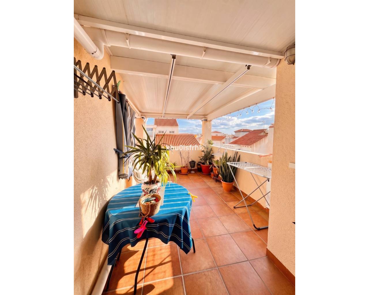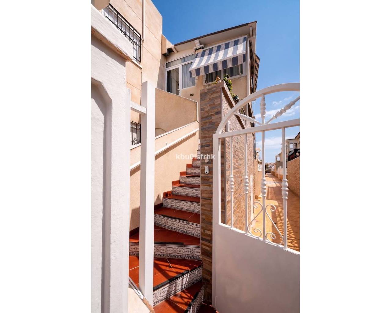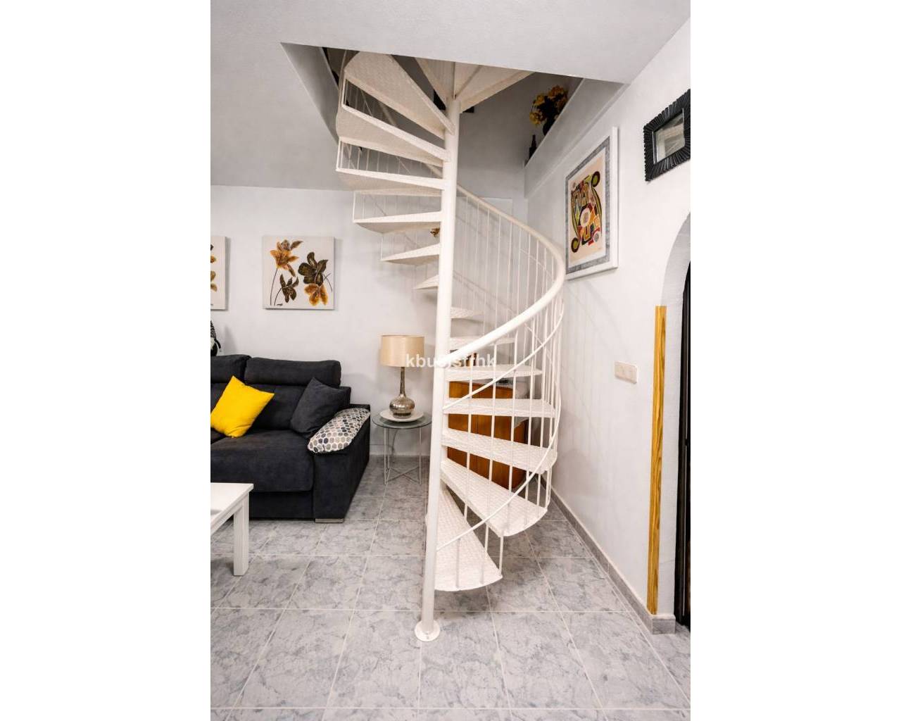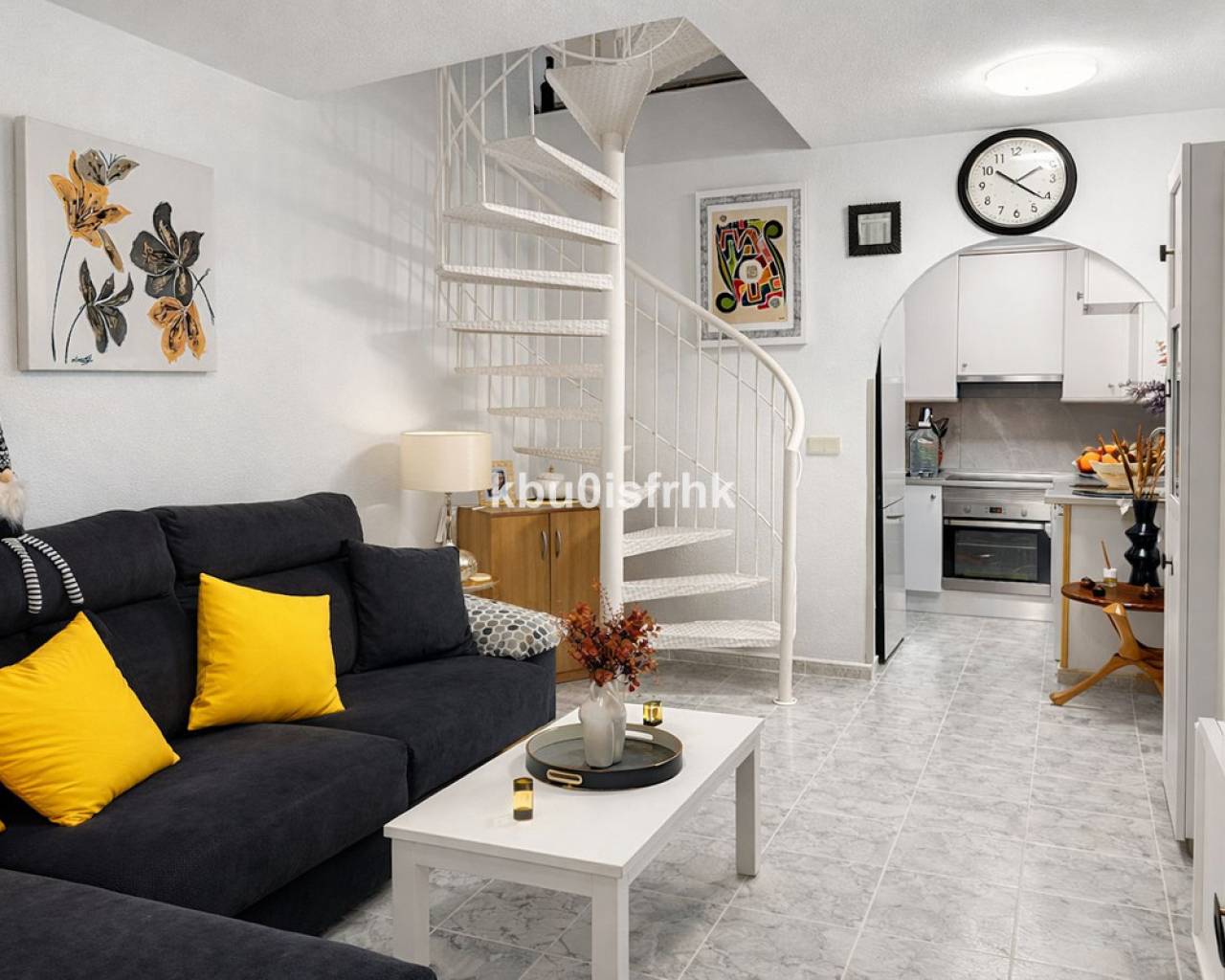 Top-floor bungalow with a private solarium in one of the most sought-after areas of Orihuela Costa – Playa Flamenca. The property is located in a gated, intimate and well-maintained residential complex, offering residents access to a communal swimming pool and convenient parking areas. It is an ideal place both for holiday getaways and year-round living. The apartment, with a total area of 57.53 m², consists of two comfortable bedrooms, a bright living room with a fully functional open-plan kitchen, a bathroom, and a glazed terrace that can be used as an additional relaxation space throughout the year. A key highlight of the property is the private solarium, perfect for relaxing, sunbathing, or enjoying time with family and friends, and additionally equipped with a practical storage room. There is also extra storage space available under the stairs leading to the property. The excellent location ensures quick access to beaches, shops, restaurants, and all necessary amenities, while at the same time offering peace, comfort, and a high quality of life in a Mediterranean setting.
