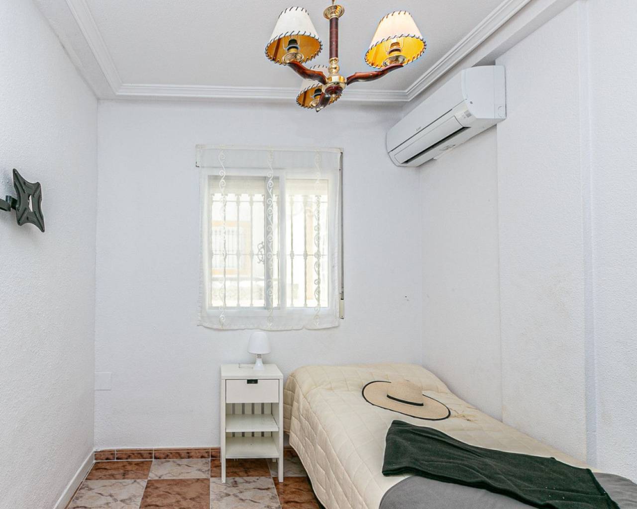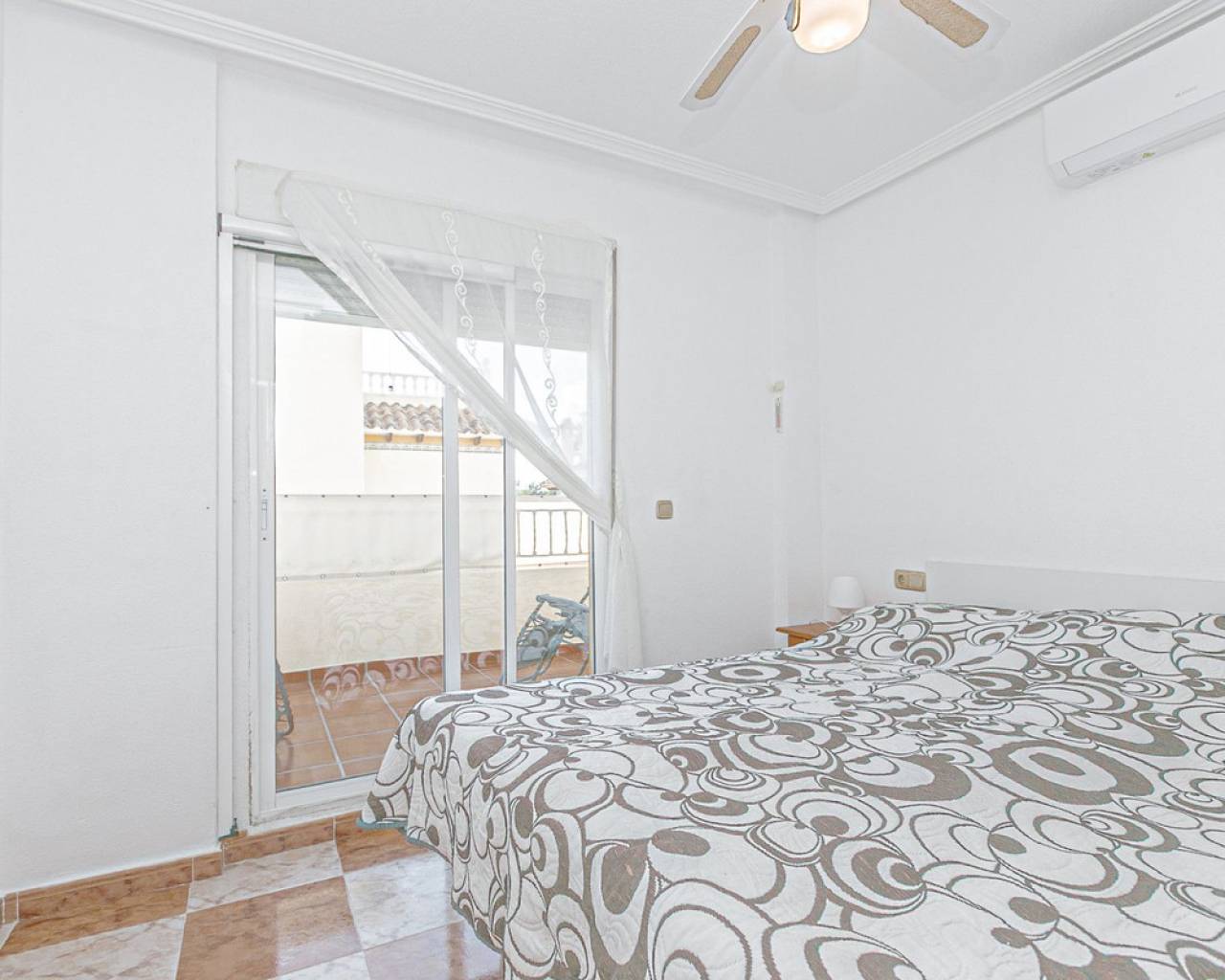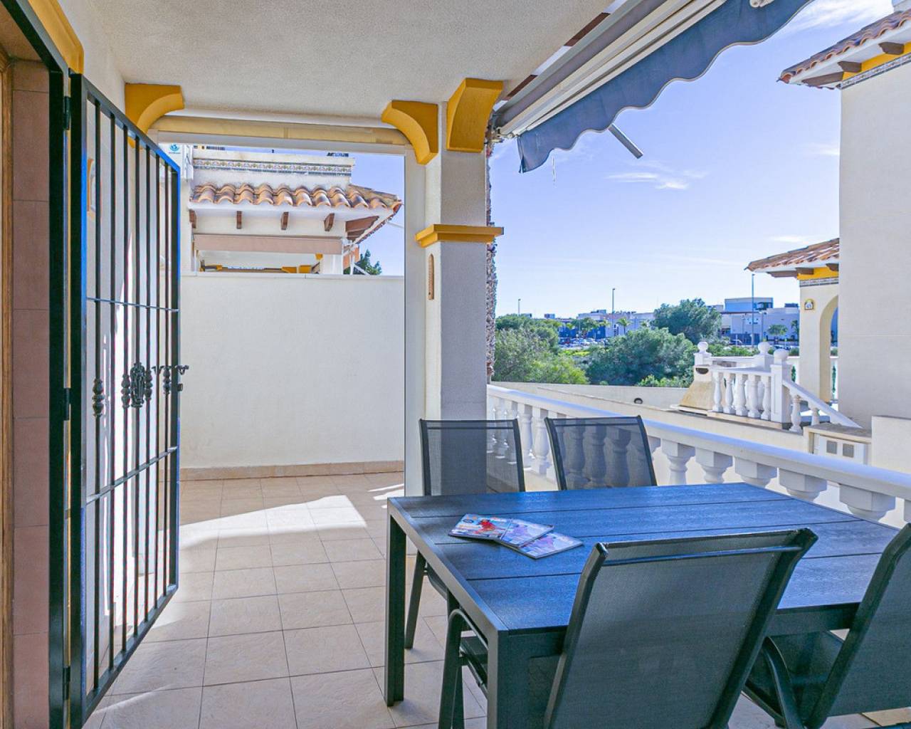 We are pleased to present this charming south-facing quad villa, located in one of the most sought-after areas of the Costa Blanca, between La Zenia and Playa Flamenca, within a gated residential complex with a communal swimming pool, ideal for enjoying a peaceful and comfortable lifestyle all year round.The property features an independent entrance and offers the convenience of private on-plot parking, as well as a practical storage room, perfect for bicycles, beach equipment, or additional storage needs.Accessed via a staircase, we arrive at a welcoming terrace equipped with awnings, an ideal space to relax and enjoy the Mediterranean climate, even during the warmer summer months. Inside, the home opens into a bright living room, seamlessly connected to a fully refurbished modern kitchen with an elegant breakfast bar.On the ground floor, there is a first bedroom and a guest toilet, adding comfort and functionality. The first floor comprises two spacious bedrooms with fitted wardrobes; the master bedroom benefits from direct access to a private terrace. A modern family bathroom with walk-in shower completes this level.At the top of the property, a private rooftop solarium offers open views and distant sea views, providing the perfect setting for sunbathing, entertaining, or simply unwinding.All rooms are equipped with air conditioning, and the property is sold fully furnished and with appliances, ready to move into immediately.The excellent location places you within easy reach of all amenities: close to the weekly Playa Flamenca market, just minutes from La Zenia Boulevard shopping centre, and a short drive from the beautiful beaches of La Zenia and Playa Flamenca.A home that perfectly combines location, comfort, and lifestyle, ideal as a permanent residence, holiday home, or investment opportunity.Contact us today to arrange your viewing and experience this wonderful property for yourself.