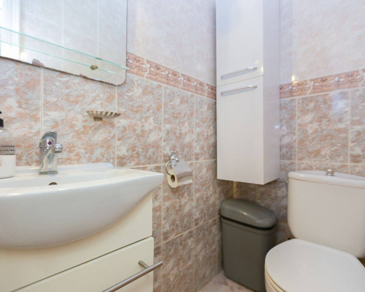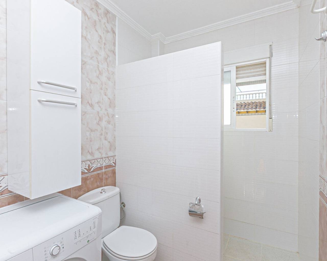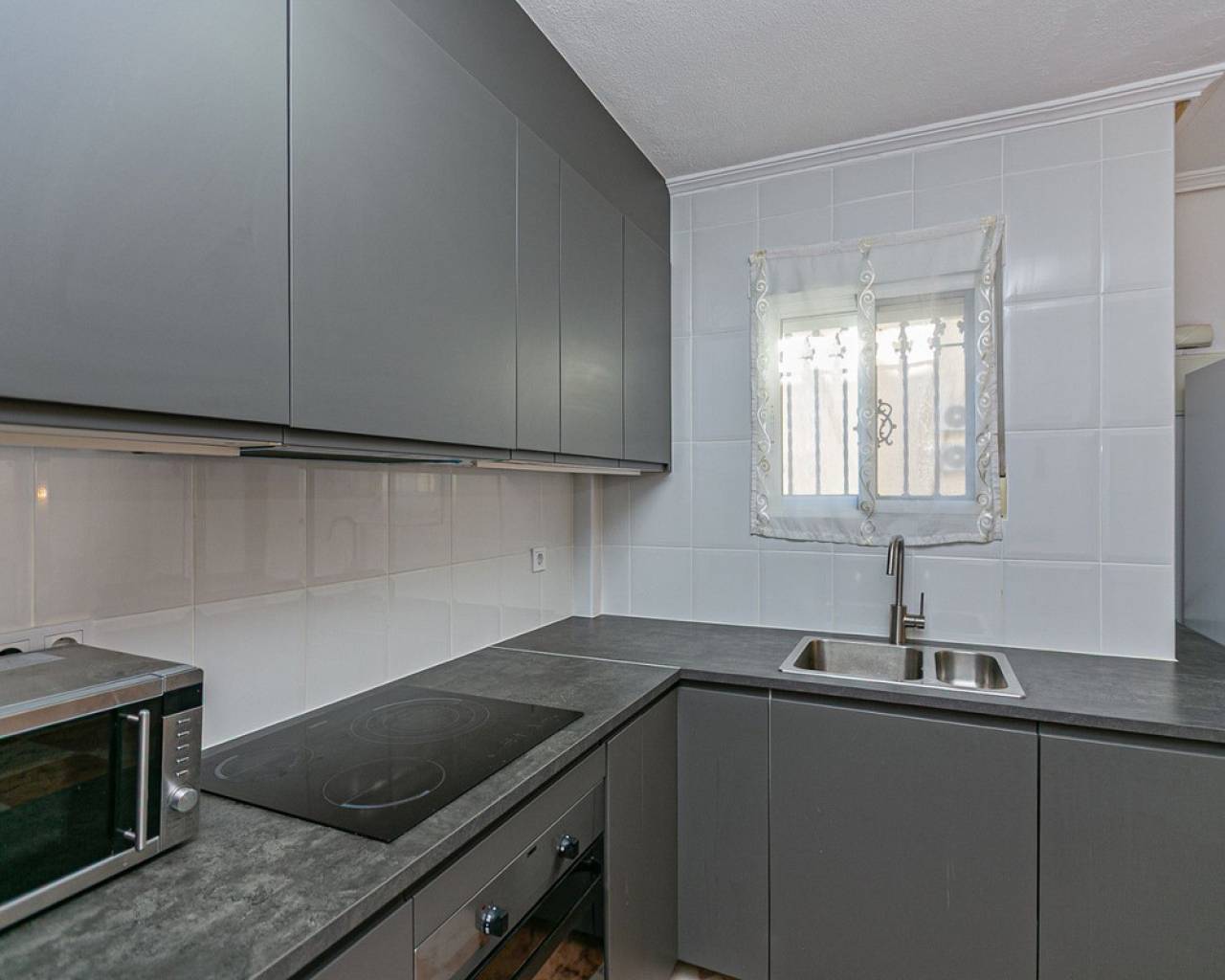 We are pleased to present this charming south-facing quad villa, located in one of the most sought-after areas of the Costa Blanca, between La Zenia and Playa Flamenca, within a gated residential complex with a communal swimming pool, ideal for enjoying a peaceful and comfortable lifestyle all year round.The property features an independent entrance and offers the convenience of private on-plot parking, as well as a practical storage room, perfect for bicycles, beach equipment, or additional storage needs.Accessed via a staircase, we arrive at a welcoming terrace equipped with awnings, an ideal space to relax and enjoy the Mediterranean climate, even during the warmer summer months. Inside, the home opens into a bright living room, seamlessly connected to a fully refurbished modern kitchen with an elegant breakfast bar.On the ground floor, there is a first bedroom and a guest toilet, adding comfort and functionality. The first floor comprises two spacious bedrooms with fitted wardrobes; the master bedroom benefits from direct access to a private terrace. A modern family bathroom with walk-in shower completes this level.At the top of the property, a private rooftop solarium offers open views and distant sea views, providing the perfect setting for sunbathing, entertaining, or simply unwinding.All rooms are equipped with air conditioning, and the property is sold fully furnished and with appliances, ready to move into immediately.The excellent location places you within easy reach of all amenities: close to the weekly Playa Flamenca market, just minutes from La Zenia Boulevard shopping centre, and a short drive from the beautiful beaches of La Zenia and Playa Flamenca.A home that perfectly combines location, comfort, and lifestyle, ideal as a permanent residence, holiday home, or investment opportunity.Contact us today to arrange your viewing and experience this wonderful property for yourself.