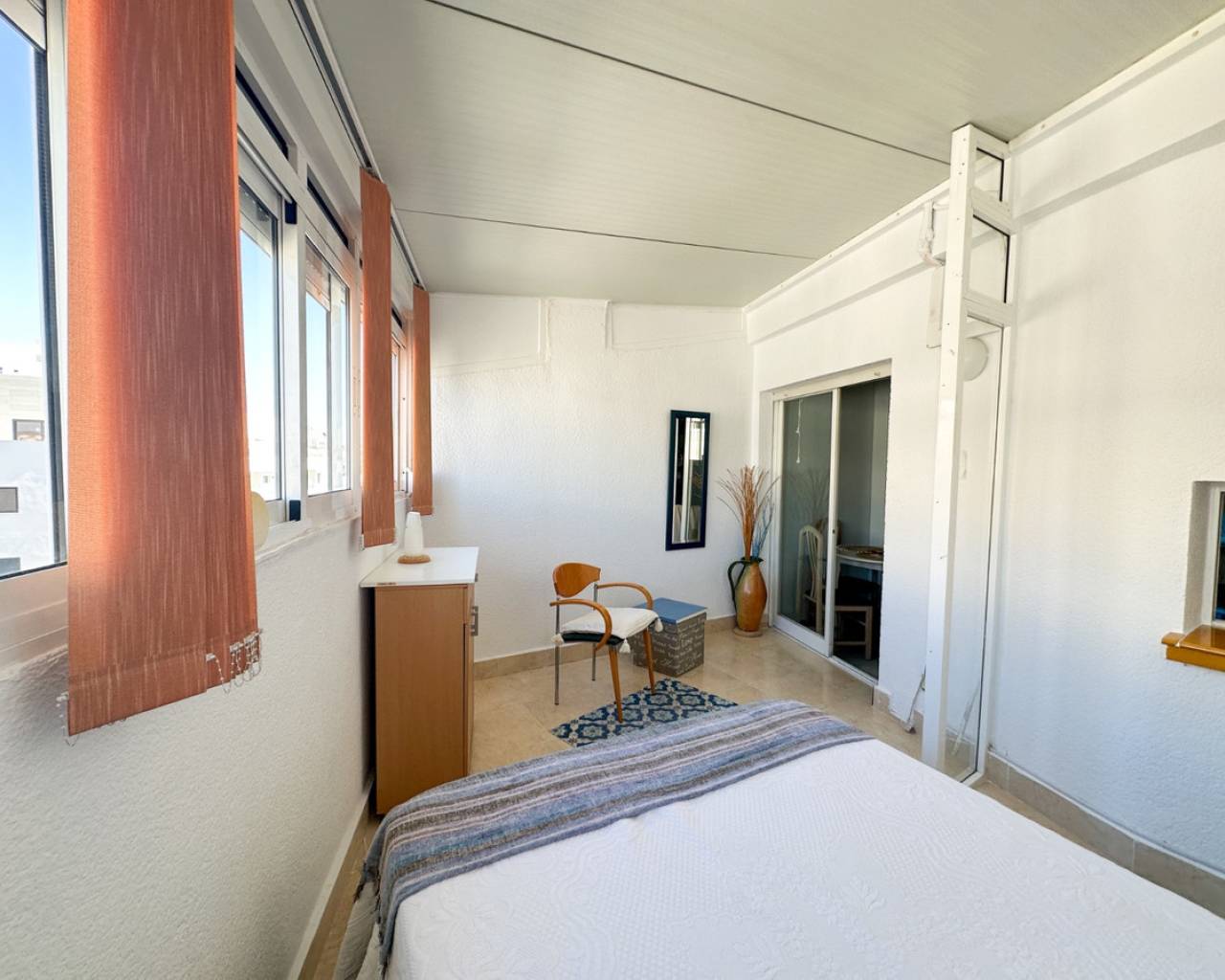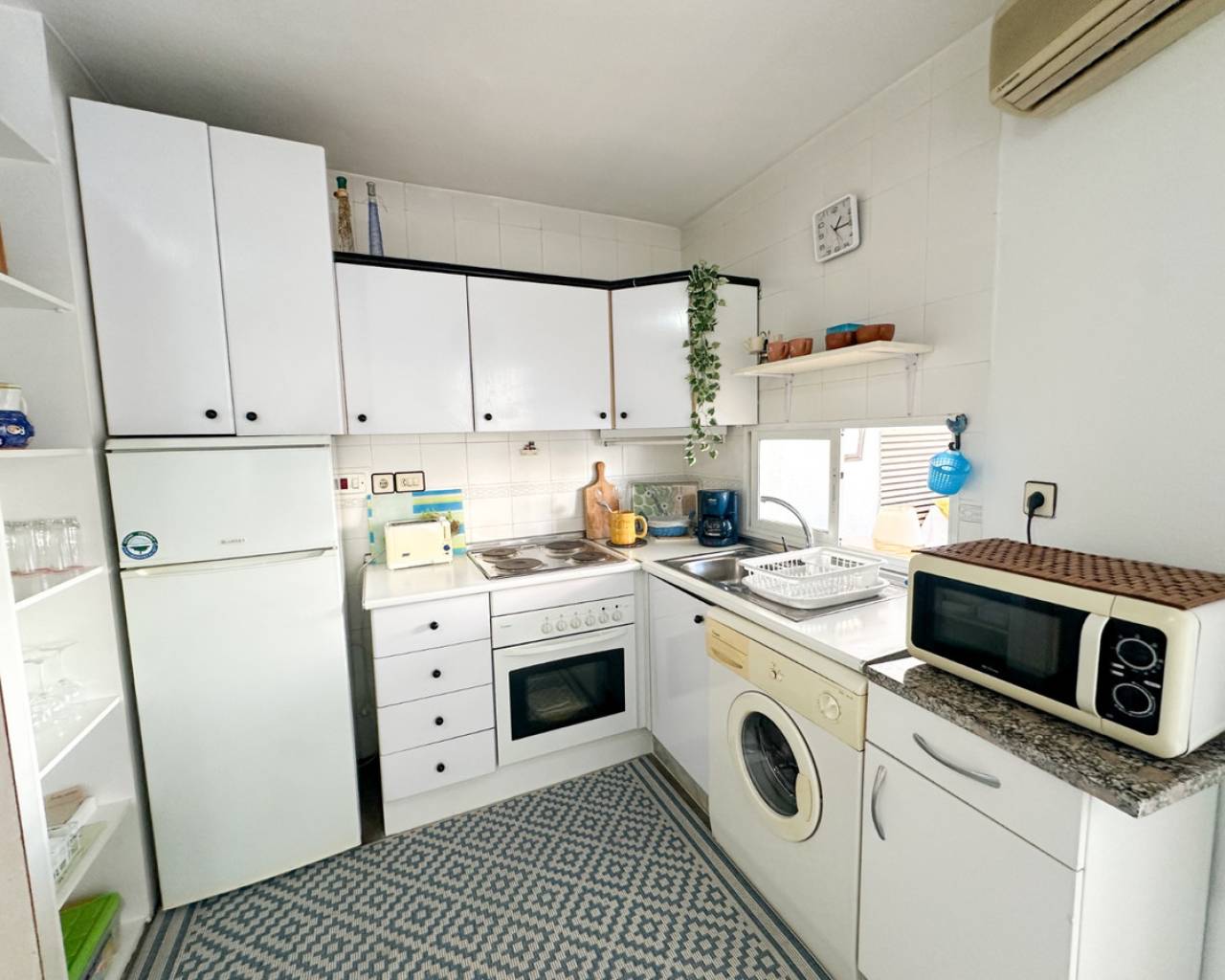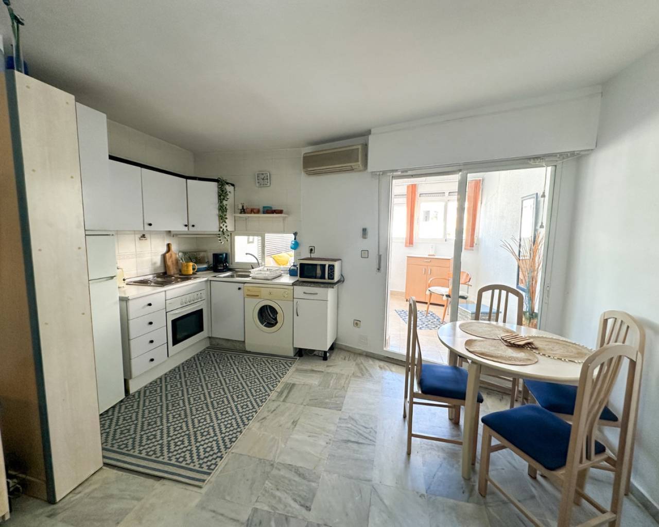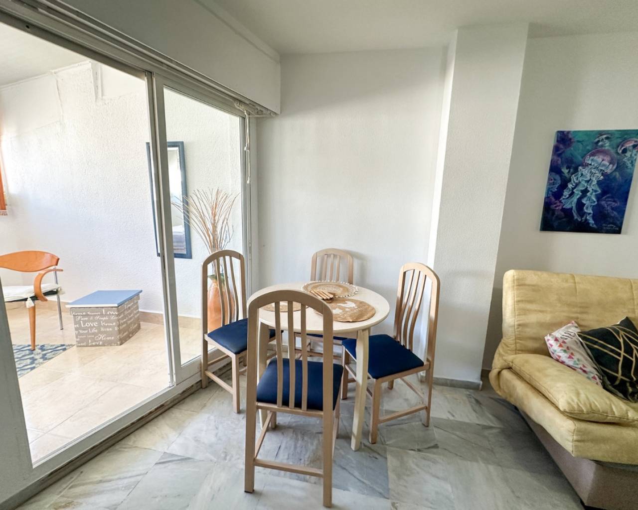 This cozy studio apartment is ideally located in Torrevieja, just 200 meters from the popular Playa del Cura, making it perfect for enjoying the Mediterranean lifestyle. The property offers a bright and open living space, thoughtfully designed to maximize comfort and functionality. Large windows allow plenty of natural light to fill the room, creating a warm and inviting atmosphere. The studio features a practical layout with a combined living and sleeping area, a fully equipped kitchenette, and a modern bathroom. Whether you're looking for a holiday getaway, a rental investment, or a compact home by the sea, this apartment provides everything you need. Situated in a lively area, you'll find a wide range of restaurants, cafés, shops, and local amenities within walking distance. The beach is just a short stroll away, where you can enjoy sunbathing, swimming, or relaxing walks along the promenade. This is a fantastic opportunity to own a charming property in one of Torrevieja's most sought-after coastal locations.