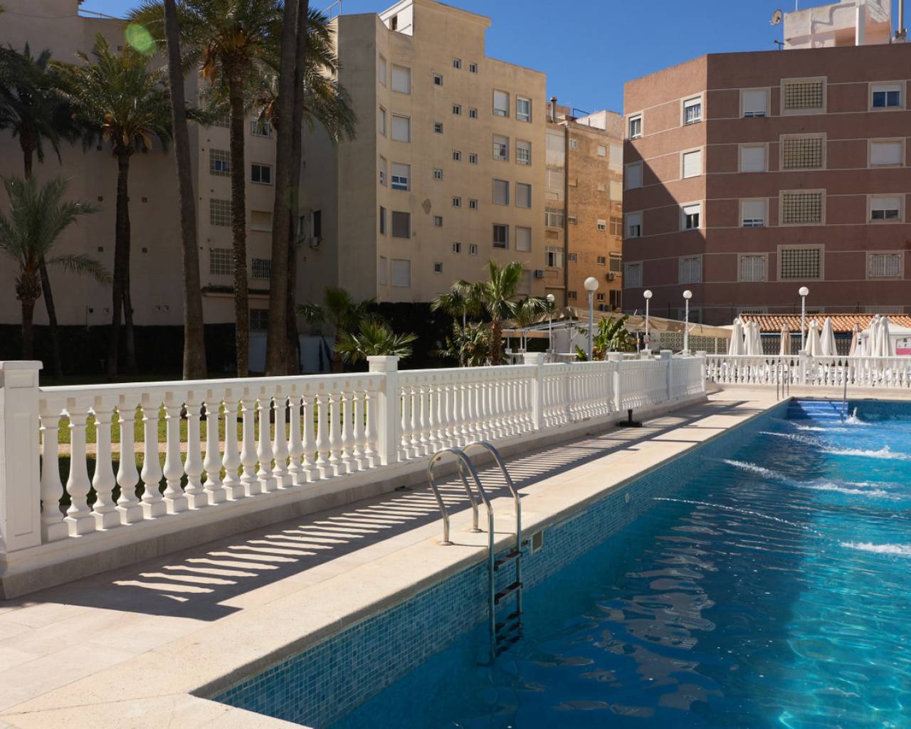 Apartment in Torrevieja, located in the prestigious El Palmeral residential area, just 100 meters from Los Locos beach, featuring a pool and sea views. This cozy apartment is on the fourth floor of a building with an elevator and includes a spacious bedroom, a full bathroom, a bright and spacious living room, and a terrace overlooking the park with lateral sea views. The community stands out for its well-maintained green areas, large swimming pool, tennis courts, and ample common leisure areas. Ideal for permanent residence, investment, or vacation enjoyment by the sea. We invite you to schedule an in-person or virtual visit and request floor plans. This is also an excellent investment opportunity with seasonal rental services. Contact us to visit and explore this unique apartment in El Palmeral, Torrevieja.