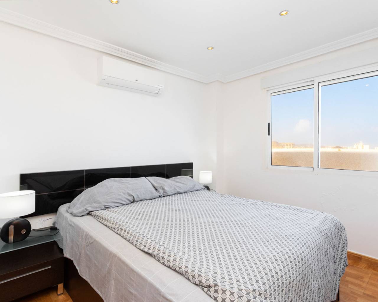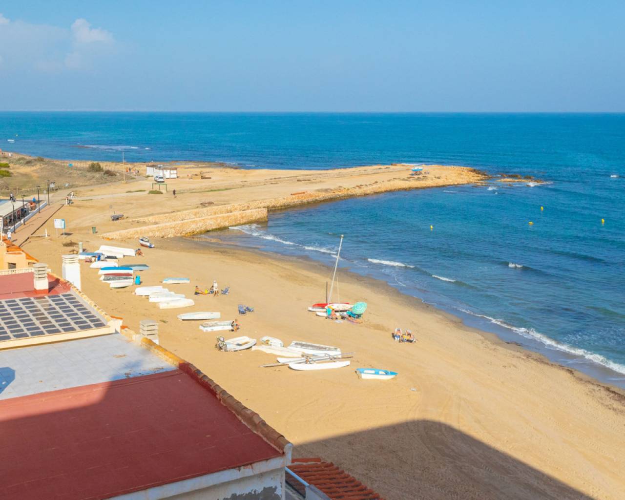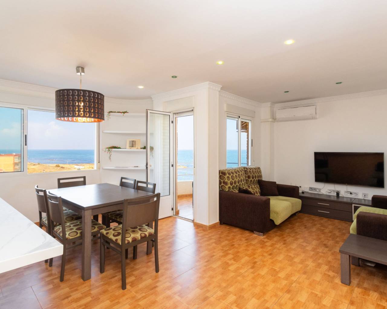 Apartment with balcony and sea view Welcome to the popular area of La Mata and this nice apartment with a large balcony and sea view. Here you live at a sought-after address with proximity to the sea and the beach as well as the area's shops and restaurants. There is an elevator in the building. This well-planned apartment has three bedrooms, a bathroom, living room and kitchen as well as a spacious balcony with a nice view. In the living room there is room for both a sitting area and a dining area. The work kitchen is spacious with good cabinet storage and work surfaces. The bedrooms have quiet locations and pleasant light, both have room for a double bed, but one is furnished with a double bed and the other with a single bed. The bathroom is equipped with a toilet, sink with commode and shower. On the southern Costa Blanca, there are plenty of well-maintained golf courses and popular padel courts. In La Mata and Torrevieja there are good connections by bus and airport bus. Welcome to contact us for more information or to book a viewing. We will of course carry out digital viewings if you are unable to be there. - Information on living and building space is approximate and may vary.