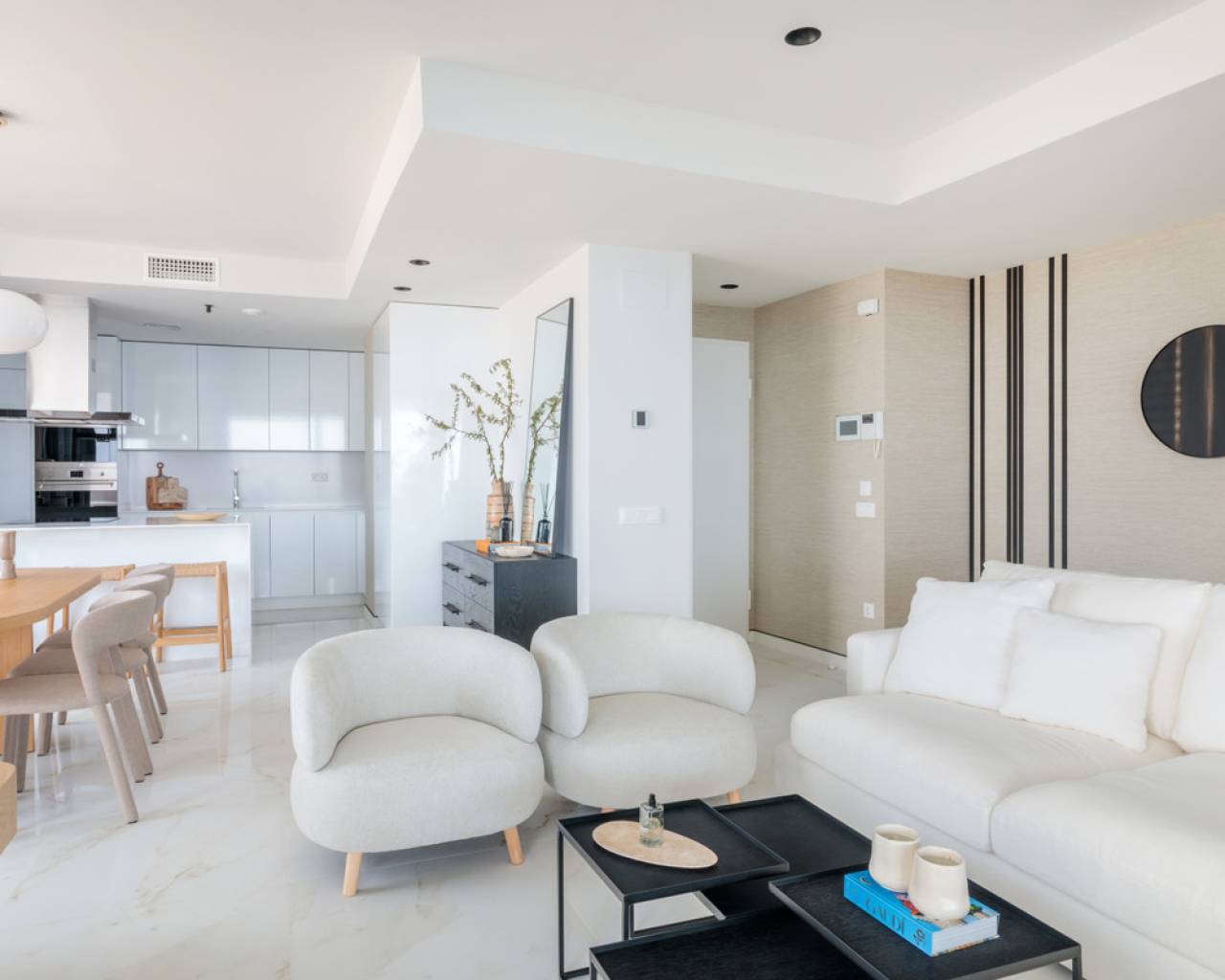 A superb glass tower rising in front of the sea.​ Spacious homes with spectacular terraces, ideal for enjoying the outdoors and the fantastic climate of the Benidorm coast.​ The Alicante coast is well known for its mild temperatures and more than 300 days of sunshine per year.​ This project is designed to enjoy each of those days, with its very large terraces facing the sea and its well-kept common areas.​ Have breakfast every day breathing the Mediterranean breeze and live the lively atmosphere of Benidorm.​ In addition to its spectacular sea views, the project offers all the services to enjoy a healthy and full life in the purest Mediterranean style.​ You can walk through wide common areas, with flower beds, trees, and palm trees, in a gated complex monitored at its entrance by video intercom. You won't miss paddle or multi-sport courts and children's games for the little ones.​ On days when you need relaxation and tranquility, without leaving home you can enjoy its outdoor jacuzzi or wait for the sunset in its personal Chill out.​ A special mention deserves its spectacular glass-lined pool with interior LED lighting, island, and wet bench inside.​ In addition, the relaxed and full of amenities environment of this project is ideal to prioritize both health and emotional well-being. Residents can make the most of the spaces for sport and relaxation while having immediate access to reliable health resources. This contributes to a full living experience, aligned with the Mediterranean approach of balance and quality of life. In short, the project not only offers luxury but also practical options to ensure that every aspect of daily life is comfortable and satisfactory.​ And for sports enthusiasts, on the 26th floor there is, in a double-height space, a gym and heated pool.​ Spacious and open-plan homes designed to capture the light. The boundary between exterior and interior is blurred through large windows and spacious terraces topped with glass railings.​ All homes have a parking space and storage room.​ Find out about the homes with solarium and Jacuzzi-type hydro-massage bathtub.​