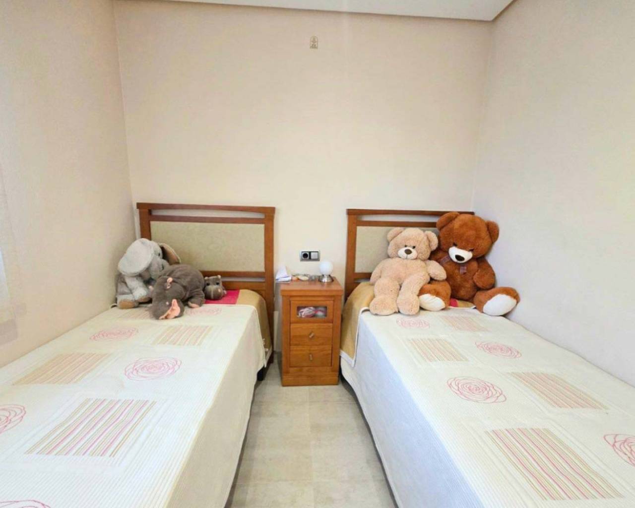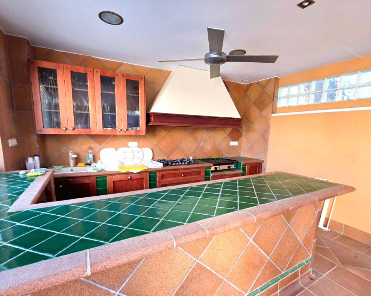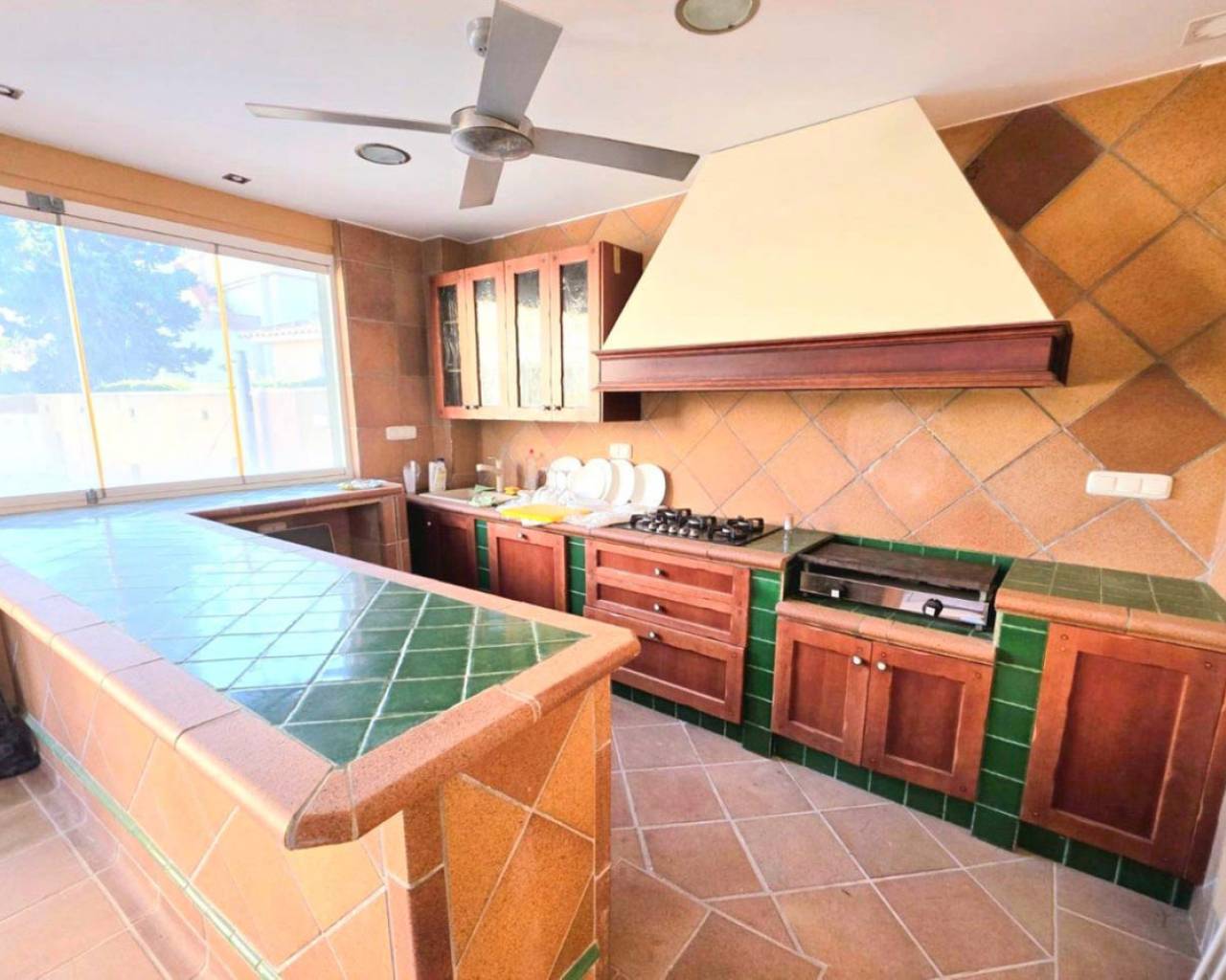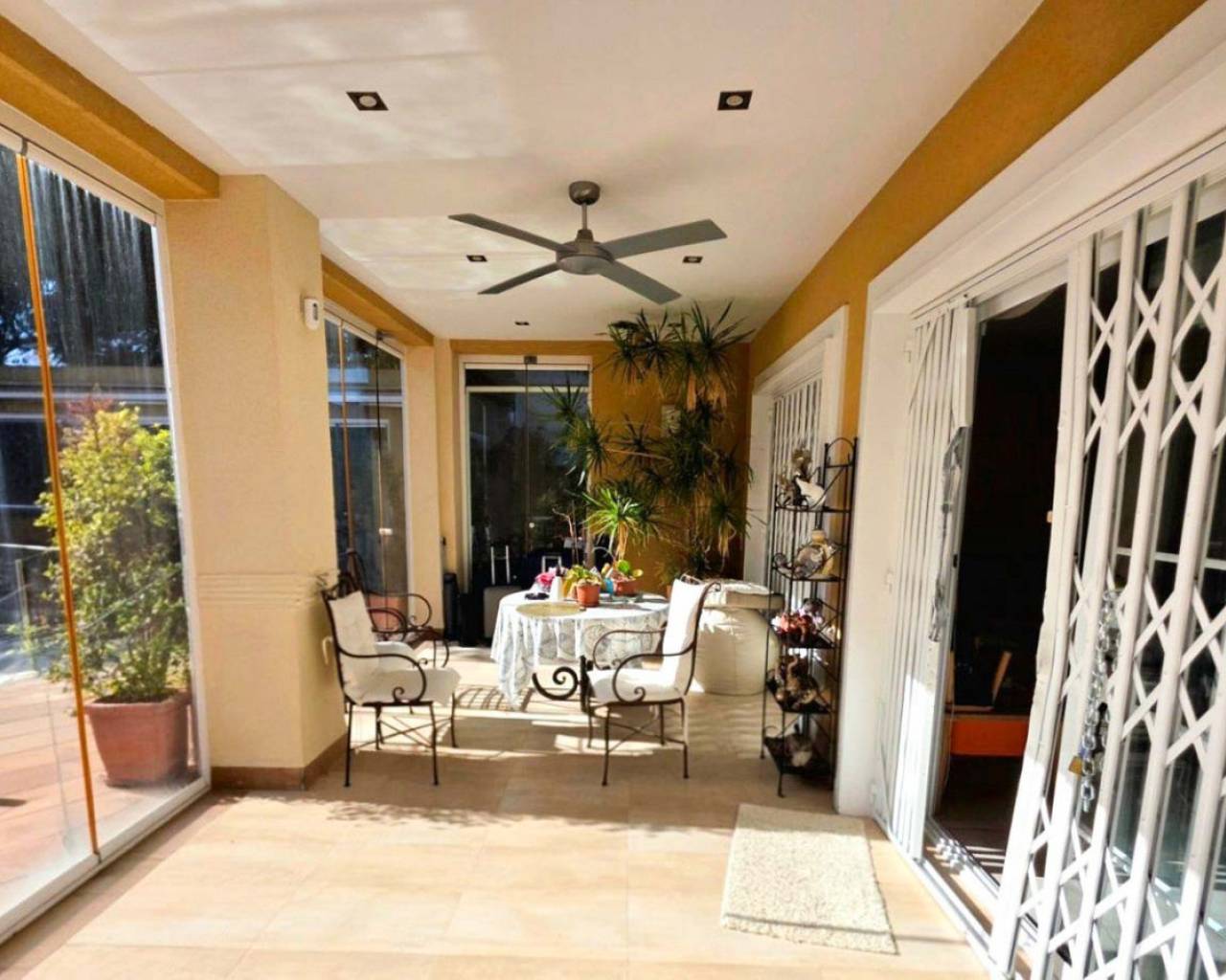 This chalet for sale in Campoamor offers 295 m² built area on a 700 m² plot, featuring a private pool, closed porch, and five air-conditioned bedrooms. Spread over two floors, the property includes a large living room with access to the closed porch that can be enjoyed year-round. It has a fully equipped kitchen, dining room, two bathrooms (one interior and one outdoor guest toilet), and a solarium to enjoy sun and views. The garden boasts a separate porch designed as a summer kitchen-dining area, ideal for outdoor gatherings. The garage accommodates three cars, providing comfort and security. Located in a peaceful area close to local amenities, this home is perfect for families or as a seasonal rental investment. Contact us to schedule an in-person visit or request a virtual tour and detailed floor plans.