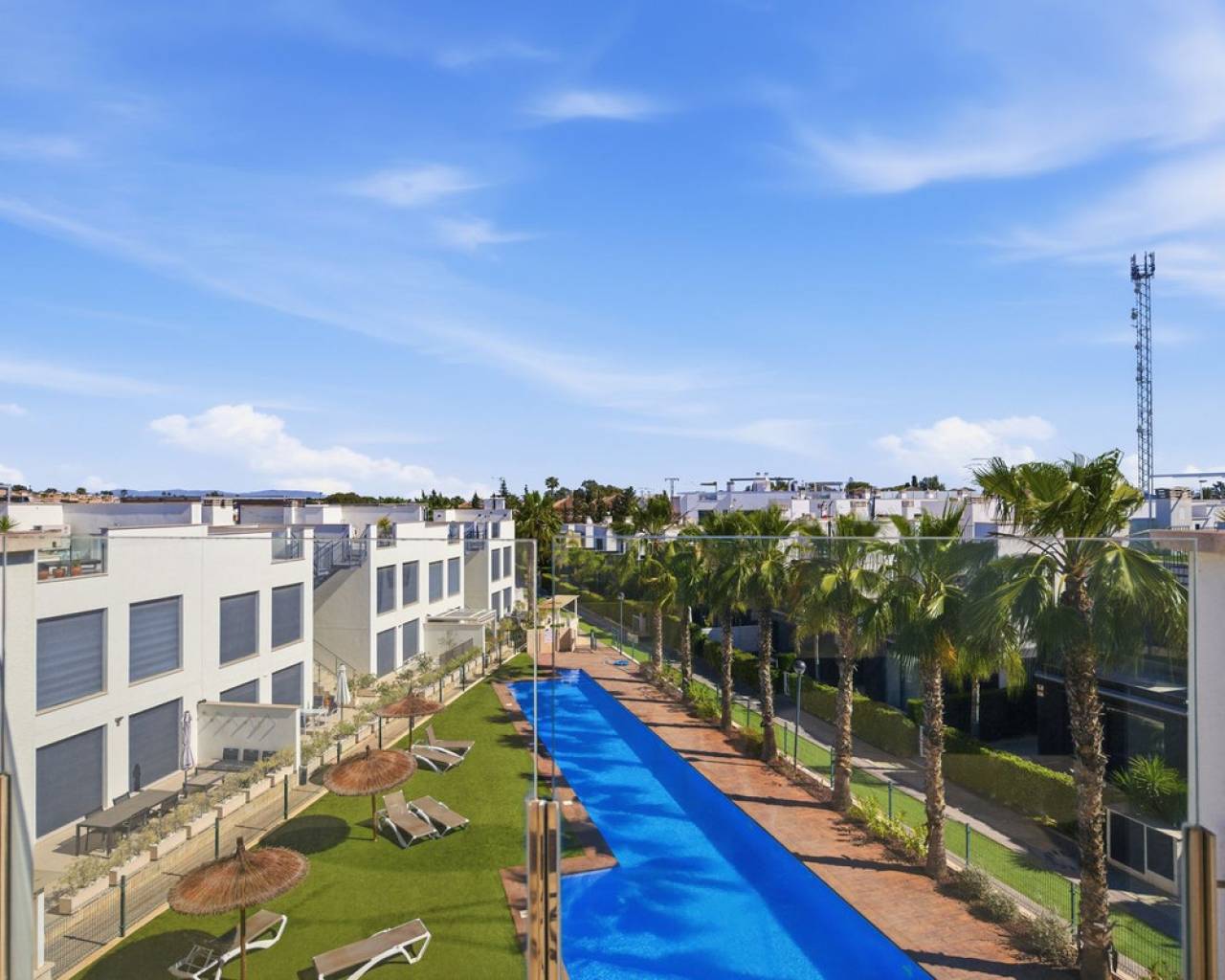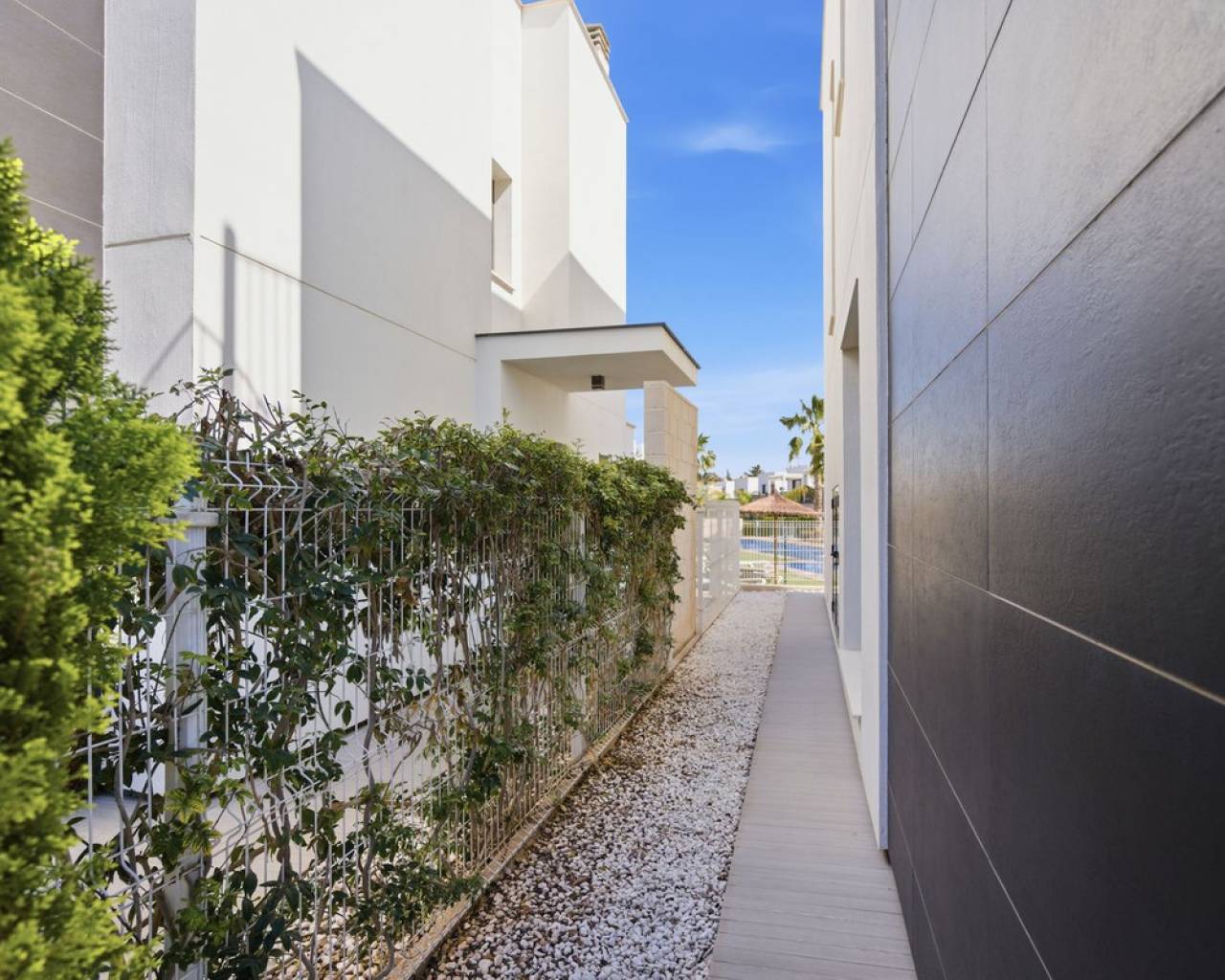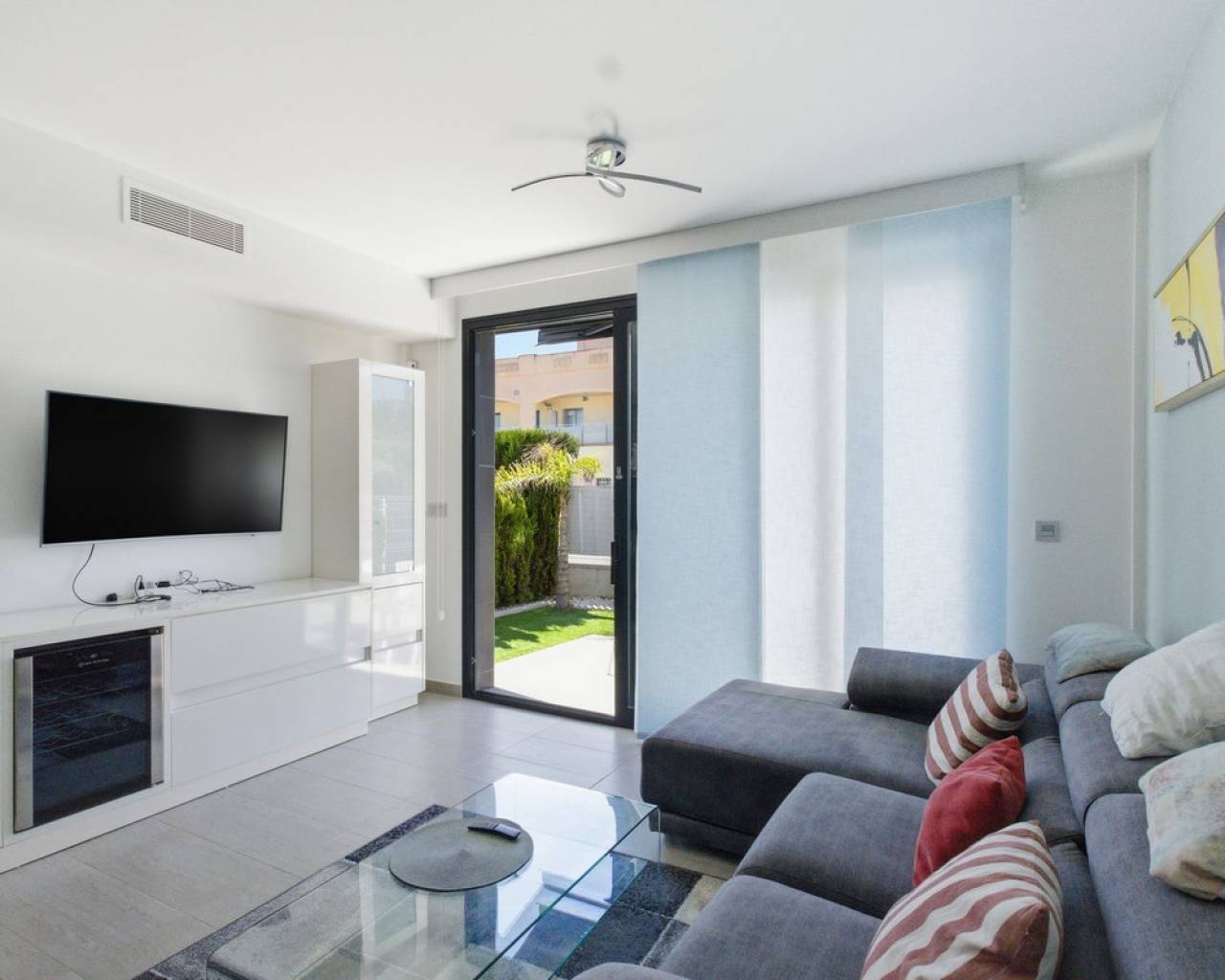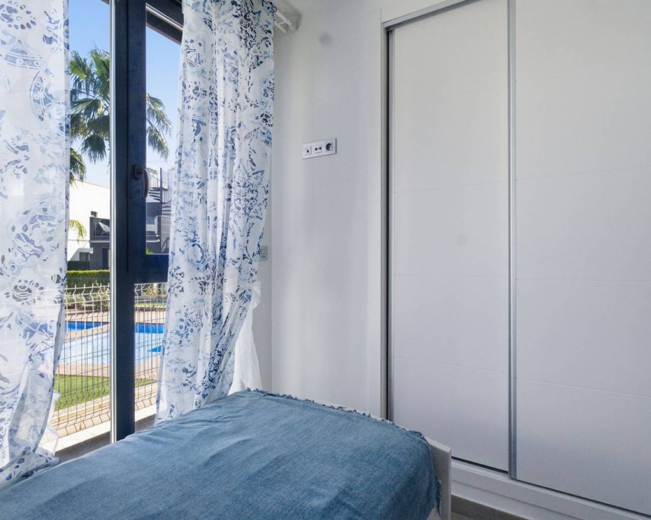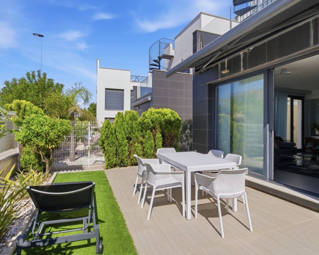 Exclusive Detached Villa in Popular Tindra – Punta Prima Welcome to this stylish and well-designed detached villa in the sought-after Tindra area in Punta Prima. The property enjoys a perfect south-facing position, offering sun all day and a bright, inviting atmosphere. The home features 3 spacious bedrooms and 2 modern bathrooms – ideal for both permanent living and holiday use. It is tastefully furnished with high-quality furniture included in the price, making it move-in ready. Enjoy multiple outdoor spaces including a private garden, balcony, and a generous rooftop terrace – perfect for relaxing or entertaining. The community also offers a beautiful pool area. The location is excellent, with a wide range of restaurants nearby and a Consum supermarket just next door. The sea is only about 600 meters away, and La Zenia Boulevard is less than 10 minutes by car. Torrevieja is also just 10 minutes away. A private underground garage space is included.
