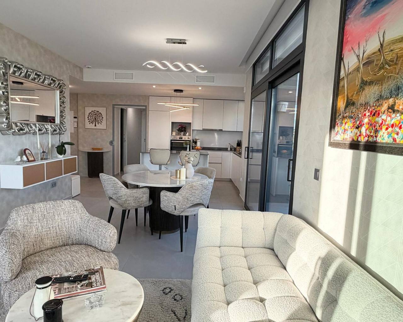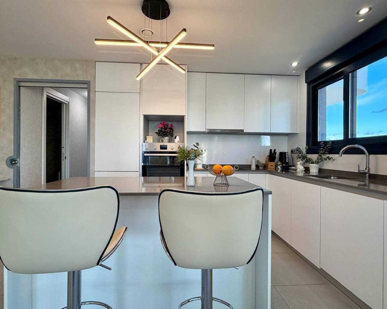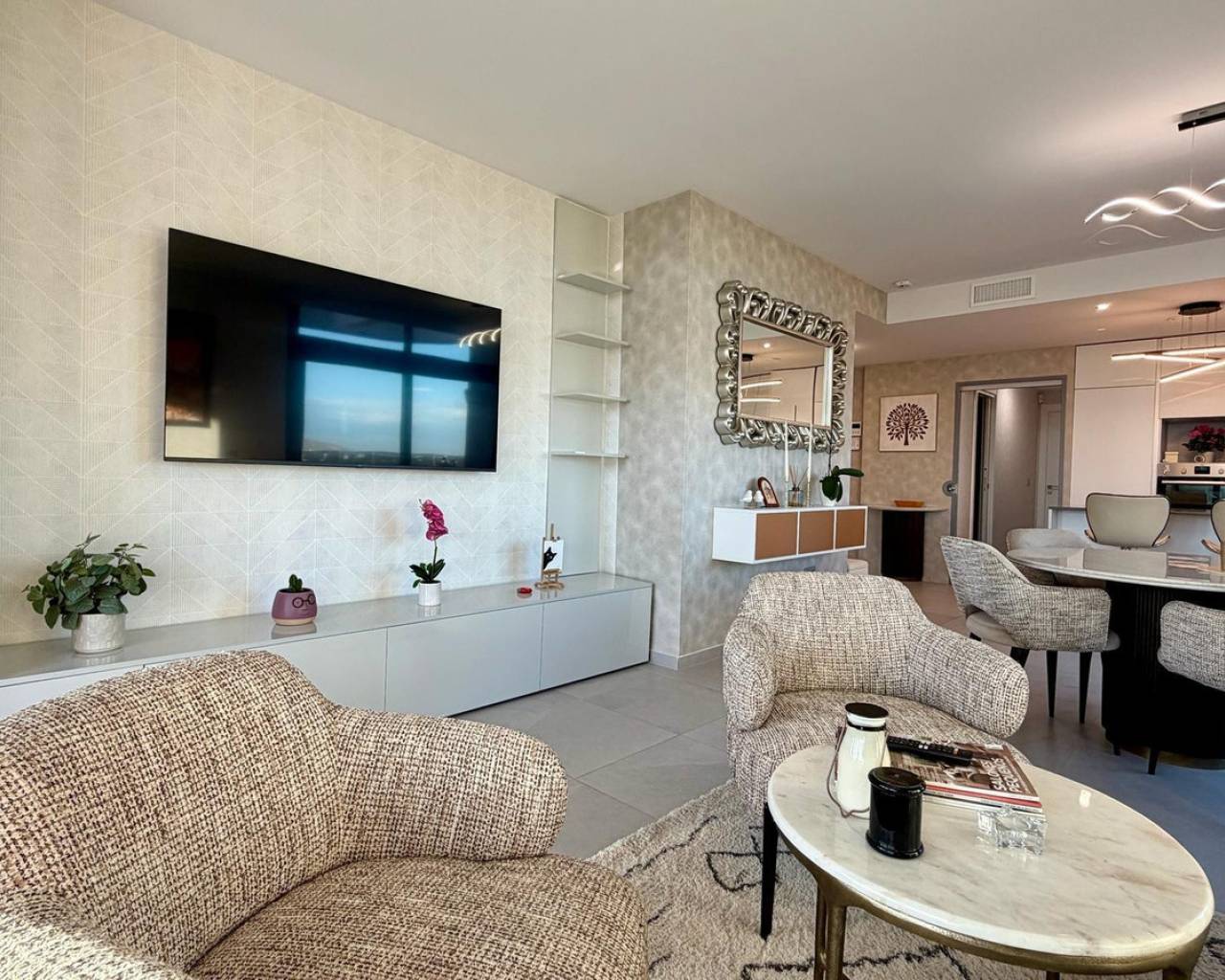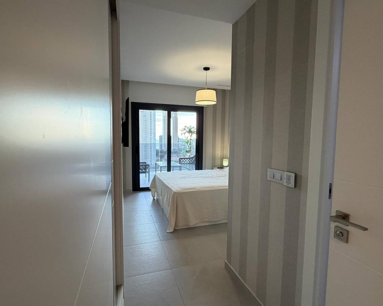 Exclusive apartment located just 900 meters from the famous Poniente Beach, in the most prestigious area of Benidorm, known for its iconic skyscrapers. Its location offers the perfect balance of privacy, tranquility and spectacular panoramic sea views in a modern urban environment with premium services. The property features 3 spacious bedrooms, one en-suite with direct access to the terrace. The living room is bright and spacious, with an open-plan kitchen and a stunning 52 m² terrace with sea views. It includes 2 modern bathrooms with LED mirrors and walk-in showers. With 156 m² built and 104 m² usable space, the home is complemented by a large terrace. Southeast orientation ensures natural light throughout the day. The apartment is fully exterior with open views of the Benidorm skyline, mountains and sea. It features smart zoned air conditioning and is sold fully furnished with luxury design details. Located near Intempo, Delfin Tower and Sunset Drive, it is close to restaurants, shops and a golf course in front of the building. Includes garage and storage room. The building offers gym, tennis court and swimming pools. Benidorm is one of the most vibrant destinations on the Costa Blanca, offering beaches, modern skyline, mild climate, leisure, restaurants, golf and excellent infrastructure, ideal for living or investment.