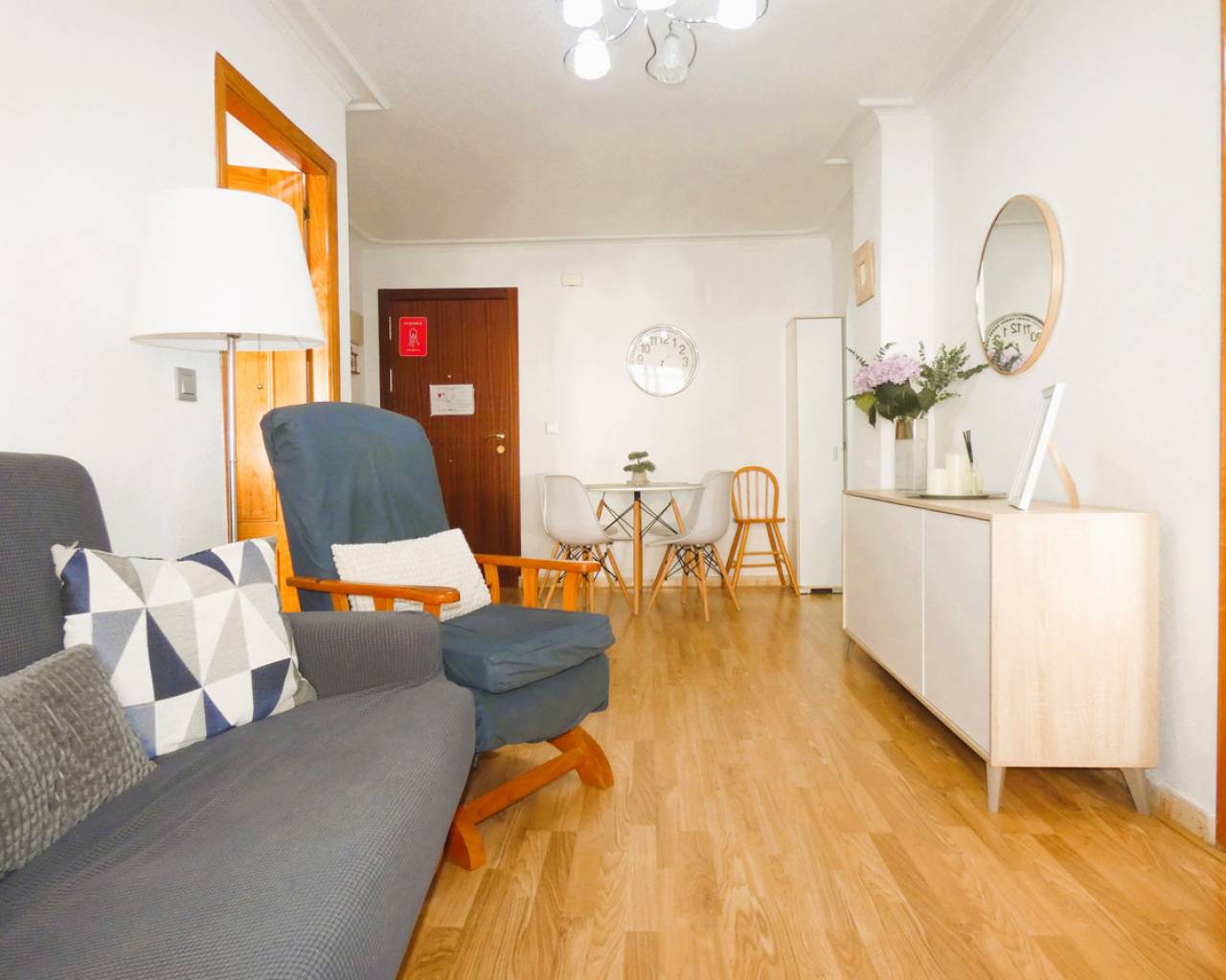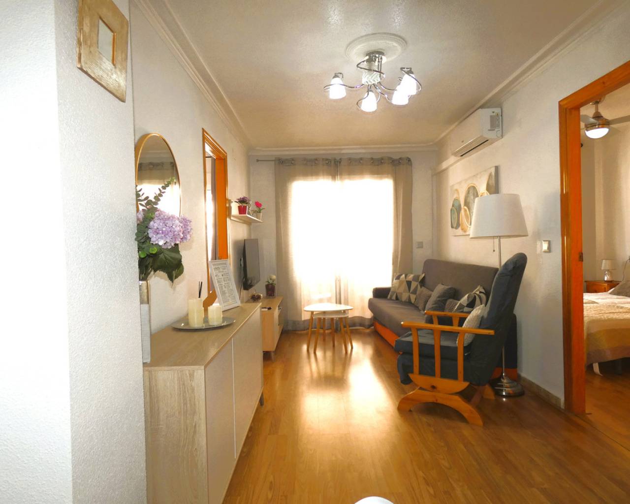 This charming flat represents an exceptional opportunity both for those looking for a home by the Mediterranean and for investors seeking an asset with immediate returns. Strategically located in the sought-after area of El Acequión in Torrevieja, the property is just 200 metres from the shore, allowing you to enjoy the sea breeze and the promenade within a short walk. The property is situated on the fourth floor of a perfectly adapted building, with a lift and access ramp for people with reduced mobility, ensuring total accessibility. Upon entering, we are greeted by a harmonious and fully furnished space, where the living-dining room stands out, equipped with inverter air conditioning to ensure maximum climate comfort. This room leads to a cosy west-facing balcony of approximately 4 m², an ideal spot to relax and enjoy the afternoon sun. The interior layout is extremely functional, offering two spacious bedrooms with fitted wardrobes, a fully equipped separate kitchen and a full bathroom with shower tray. An indispensable added value is that the property has a valid tourist licence, making it a safe investment in a privileged setting. The flat is flanked by two of the city's most iconic beaches. On one side, Acequión Beach, integrated into the port area, stands out for its extraordinarily calm and safe waters, with almost no waves, making it a favourite spot for families and those looking for a relaxing swim. On the other side, just a few metres away, is Náufragos Beach, frequently awarded the Blue Flag for the quality of its waters and services. This beach is famous for its lively atmosphere, palm trees on the sand, sports areas and unbeatable natural surroundings. Both beaches are surrounded by beach bars, restaurants and a lively promenade, placing this property at the epicentre of leisure and well-being in Torrevieja, with all the necessary services open throughout the year. Contact us today to arrange a viewing!