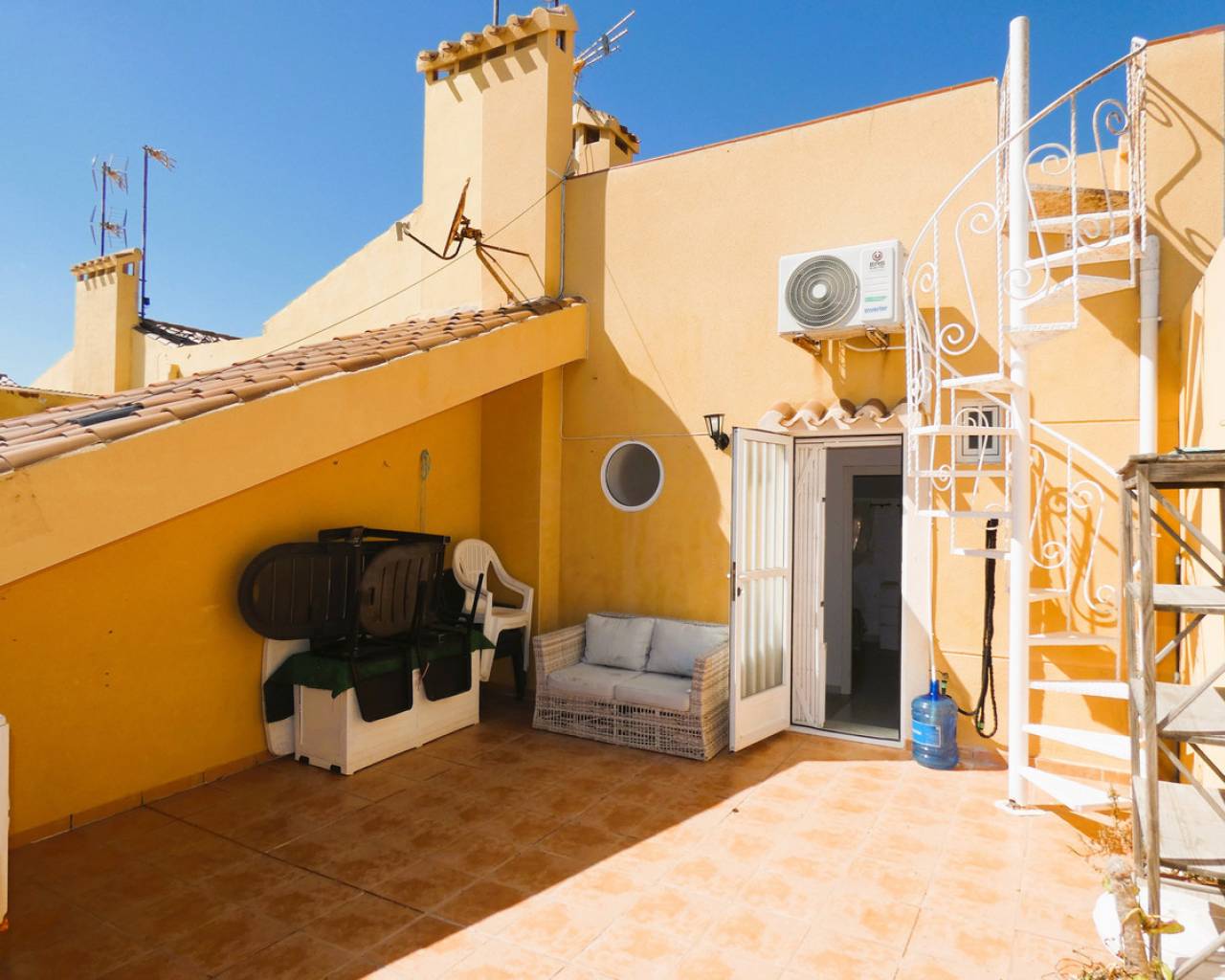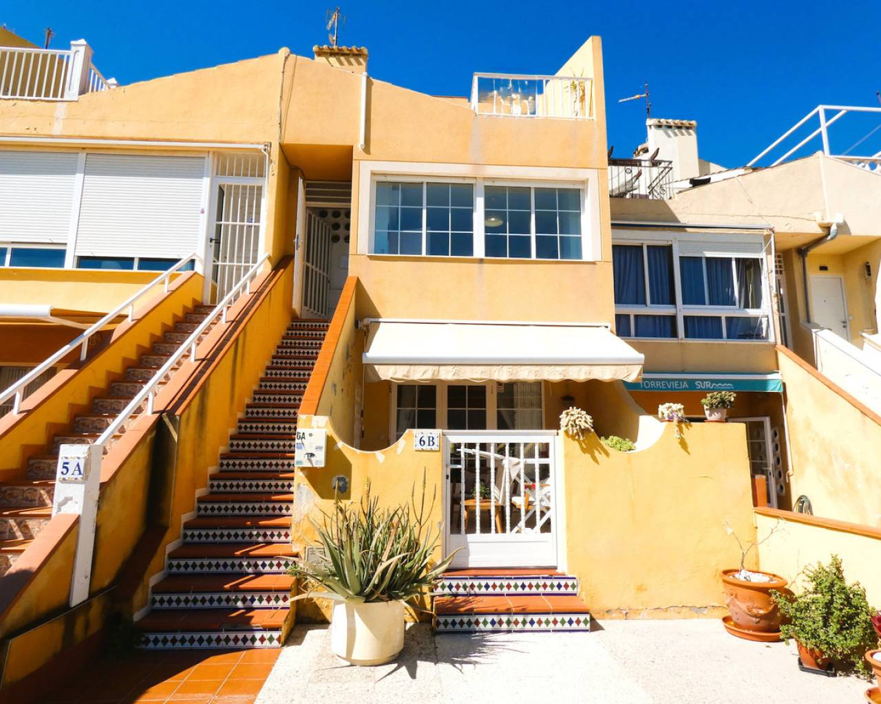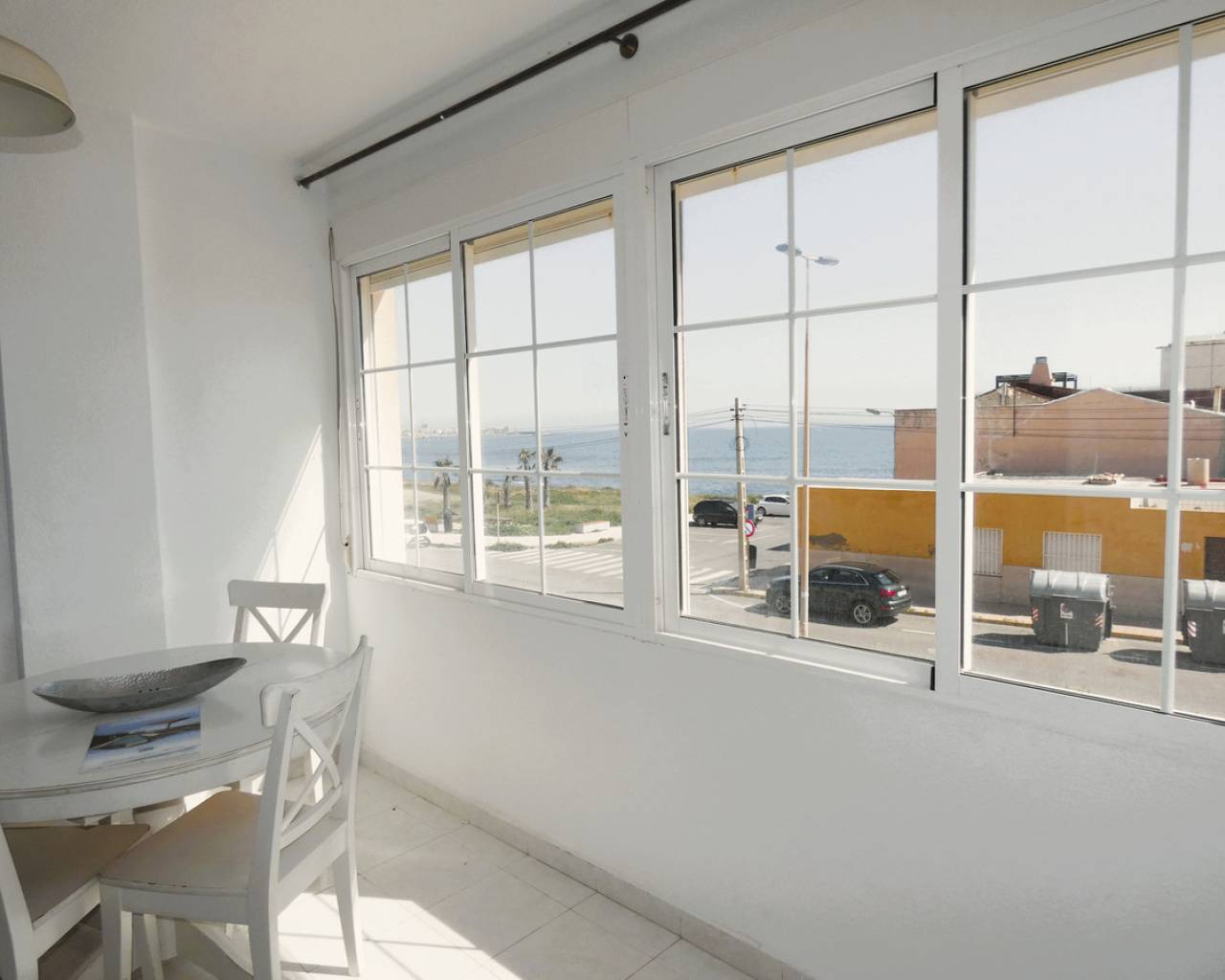 Discover the privilege of living overlooking the Mediterranean in this spectacular duplex situated right on the beachfront at La Veleta, Torrevieja's most exclusive residential area. The property stands out for its functional design and unbeatable orientation, offering an unrivalled Mediterranean lifestyle. On the main floor, the home welcomes its residents with a bright living-dining room that flows seamlessly into a semi-open-plan kitchen, creating a modern and sociable atmosphere. This floor is completed by two double bedrooms, both fitted with built-in wardrobes, and a full bathroom with a shower. Upstairs, there is a third private bedroom featuring direct access to an outdoor terrace, accompanied by a second full bathroom with a bath. The real gem of this property is its impressive 23 m² solarium, a private viewing area with panoramic sea views, ideal for soaking up the sun and enjoying the exceptional climate of the Costa Blanca. To ensure maximum comfort all year round, the property is fitted with air conditioning on both floors. The location in La Veleta adds immeasurable value to the property, as it is one of the most exclusive and peaceful residential areas in Torrevieja. This enclave is distinguished by its relaxed atmosphere, away from the tourist hustle and bustle yet with the advantage of being a stone's throw from all essential amenities. Residents of La Veleta enjoy the immediate proximity to the sea and beautiful coastal promenades, as well as being just a few minutes' drive from Torrevieja University Hospital, shopping centres, large supermarkets and excellent links to the N-332 road. It is, in short, the perfect setting for those seeking the serenity of a luxury residential area without sacrificing the convenience of having the town and the best beaches in the area within easy reach. Book a viewing.