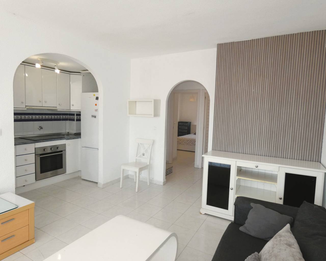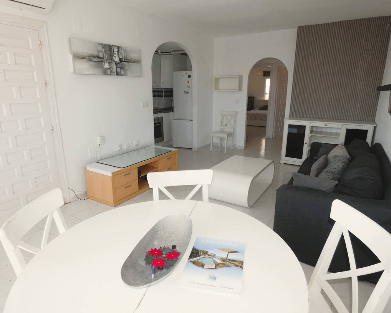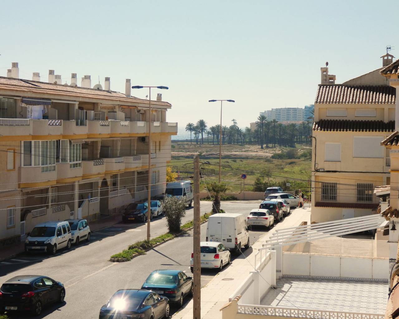 Discover the privilege of living overlooking the Mediterranean in this spectacular duplex situated right on the beachfront at La Veleta, Torrevieja's most exclusive residential area. The property stands out for its functional design and unbeatable orientation, offering an unrivalled Mediterranean lifestyle. On the main floor, the home welcomes its residents with a bright living-dining room that flows seamlessly into a semi-open-plan kitchen, creating a modern and sociable atmosphere. This floor is completed by two double bedrooms, both fitted with built-in wardrobes, and a full bathroom with a shower. Upstairs, there is a third private bedroom featuring direct access to an outdoor terrace, accompanied by a second full bathroom with a bath. The real gem of this property is its impressive 23 m² solarium, a private viewing area with panoramic sea views, ideal for soaking up the sun and enjoying the exceptional climate of the Costa Blanca. To ensure maximum comfort all year round, the property is fitted with air conditioning on both floors. The location in La Veleta adds immeasurable value to the property, as it is one of the most exclusive and peaceful residential areas in Torrevieja. This enclave is distinguished by its relaxed atmosphere, away from the tourist hustle and bustle yet with the advantage of being a stone's throw from all essential amenities. Residents of La Veleta enjoy the immediate proximity to the sea and beautiful coastal promenades, as well as being just a few minutes' drive from Torrevieja University Hospital, shopping centres, large supermarkets and excellent links to the N-332 road. It is, in short, the perfect setting for those seeking the serenity of a luxury residential area without sacrificing the convenience of having the town and the best beaches in the area within easy reach. Book a viewing.