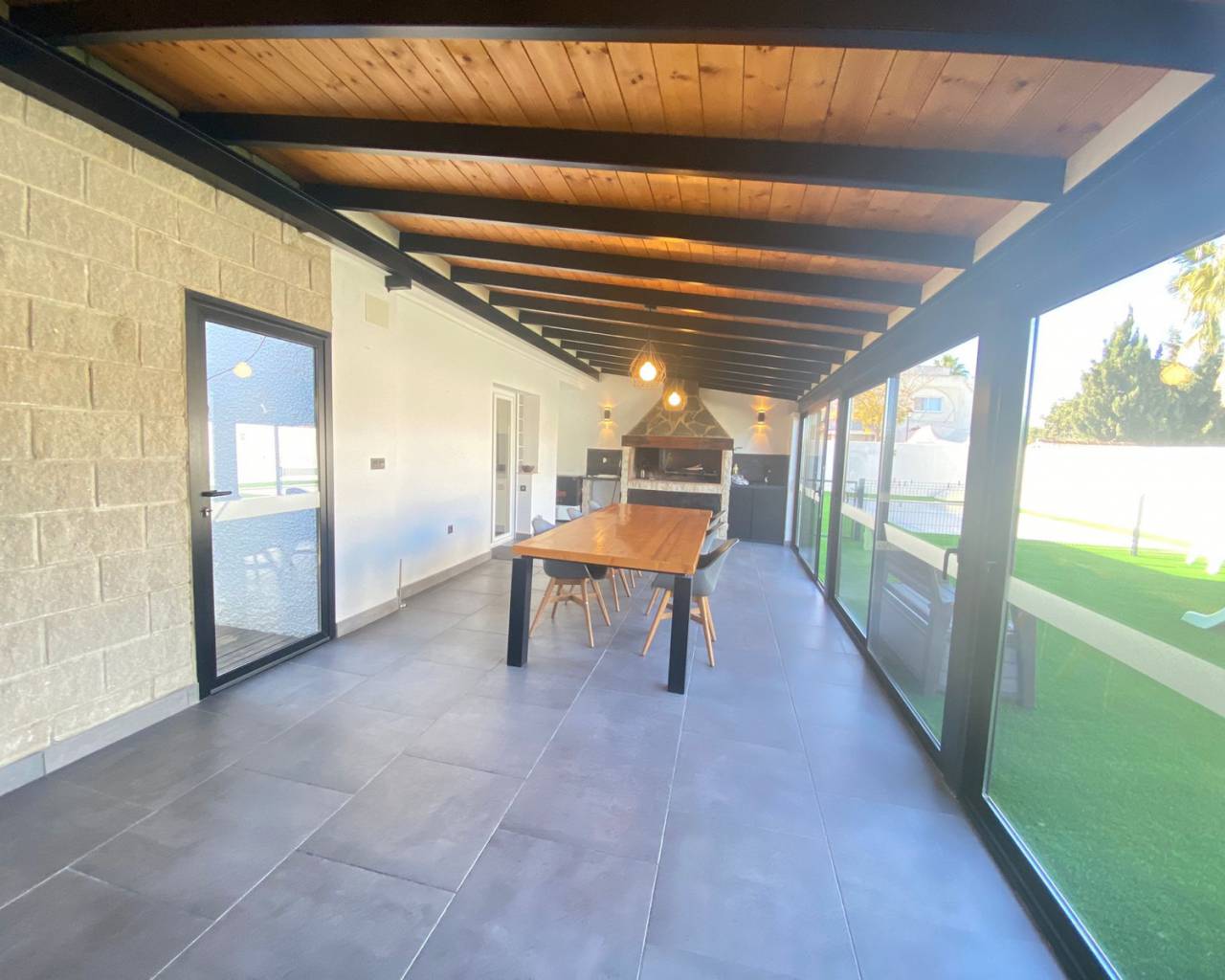 Stunning detached villa in the prestigious Ciudad de Comunicaciones area of San Miguel de Salinas, boasts master bedroom with ensuite shower room, one unfurnished bedroom with built in wardrobes, the third bedroom is currently dressed as an office area with built in wardrobes.
