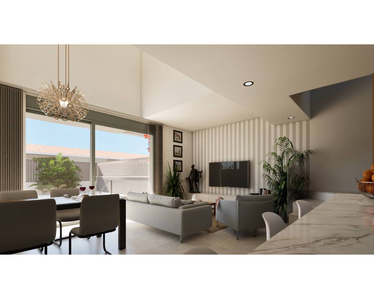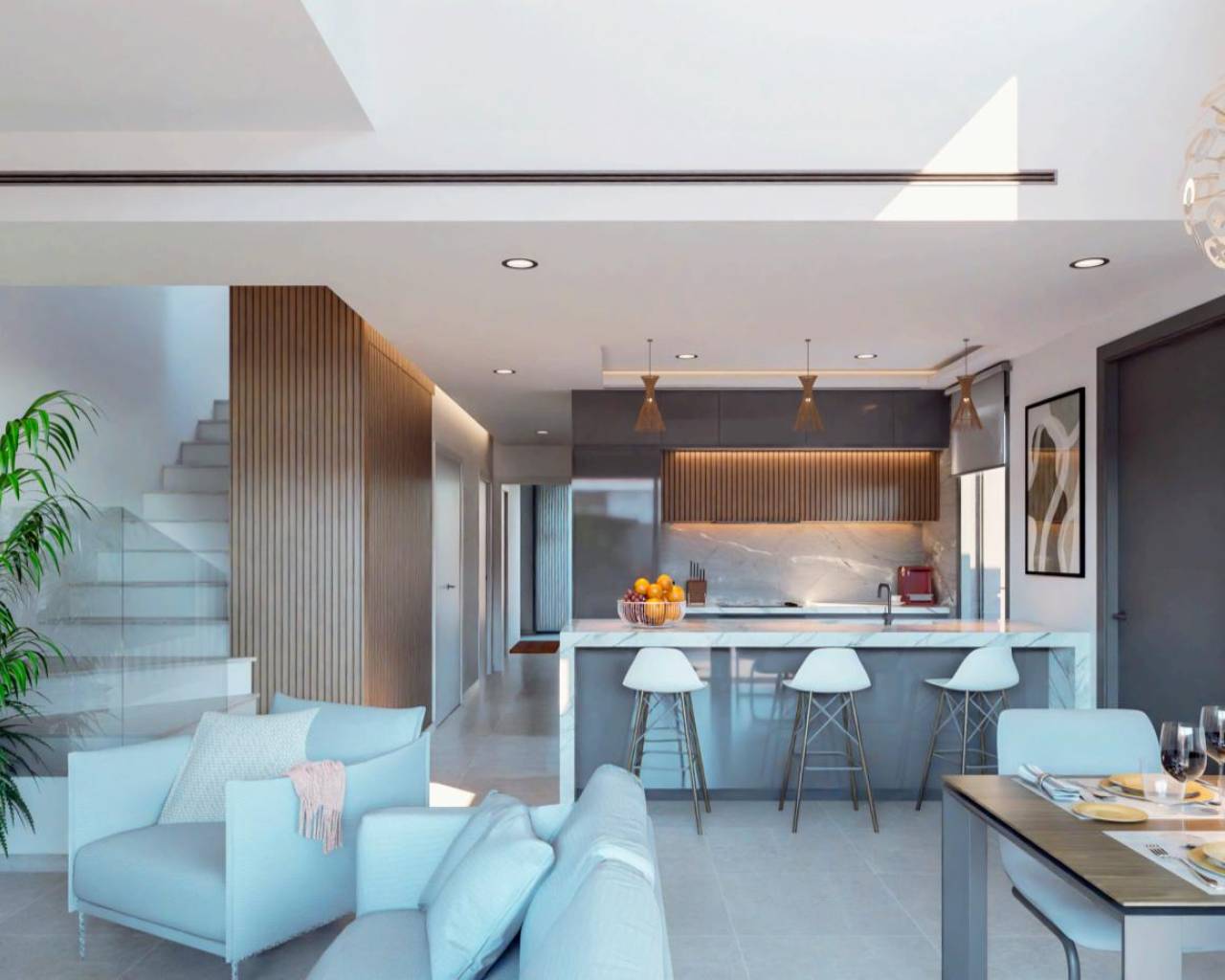 A modern design spread over two floors, with an open-plan concept integrating the living-dining area and kitchen