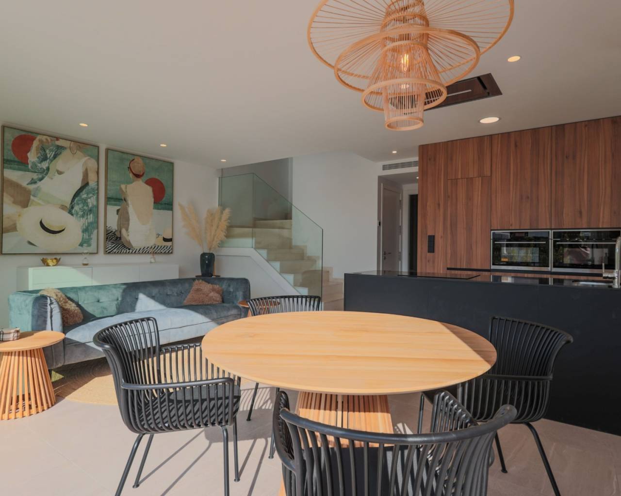 The ground floor offers a bright, open space that integrates the living room with the designer kitchen, with direct access to the terrace and garden. You'll also find a bedroom and a full bathroom. Upstairs are two additional bedrooms: the master bedroom with an en-suite bathroom and access to a sunny terrace perfect for enjoying the tranquility.