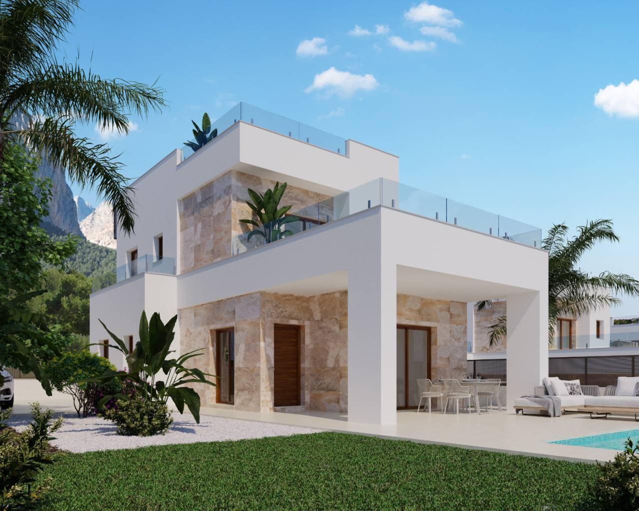 The villa is located in Polop de la Marina, in the exclusive Monte Ponoig area, the highest plot in the zone, offering panoramic sea and mountain views. Only 20 minutes from the beaches of Benidorm and Altea, with quick access to international schools, supermarkets, restaurants, and all essential services. Alicante International Airport is 45 minutes away, ensuring excellent connections throughout Spain and Europe.