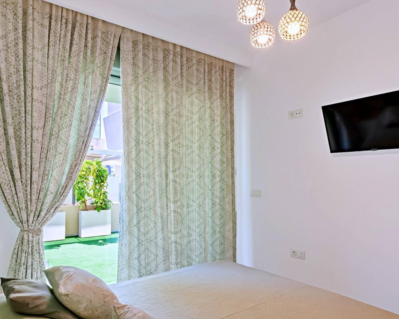 An exquisite combination of spaciousness, light, and sea breezes awaits you in this elegant villa, located just a two-minute walk from Mil Palmeras , one of the best beaches in the Alicante province . Here, you don't have to choose between comfort, nature, and amenities: everything has been perfectly brought together in one place.~This villa is more than just a house. It's a beachfront lifestyle, surrounded by palm trees, golden sand, and an endless horizon. It's a place you'll always want to return to… and stay.~Built on a 220 m² plot , this villa is carefully designed to offer functionality, light, and harmony. The layout includes:~• 3 spacious bedrooms , each with its own en-suite bathroom~• An open-plan living-dining room, full of natural light, with high ceilings and large windows with direct access to the garden~• A modern and functional kitchen, ideal for family gatherings or get-togethers with friends.~• A terrace overlooking the garden and pool~• A private 50 m² solarium with open views of the sea and mountains — the perfect place to disconnect and enjoy~The exterior features a private swimming pool , landscaped garden, and a parking space within the property. All materials and finishes have been selected to high-quality standards.~The terrace and solarium offer breathtaking views of the Mediterranean Sea . Ideal for breakfast at sunrise, relaxing at sunset, or simply enjoying the peace and quiet and the beauty of the surroundings.~Mil Palmeras is one of those areas that maintains the perfect balance: tranquility and proximity to everything you need. The beach is literally just steps away. Nearby you'll find restaurants, cafes, supermarkets, and pharmacies. The prestigious Las Colinas or Campoamor golf courses are only a 10-minute drive away , Alicante Airport is less than an hour away, and Murcia Airport is about 30 minutes away.~Investing in this villa is not simply about acquiring a house by the sea. It's about choosing quality of life, privacy, contemporary design, and a prime location on the Costa Blanca.~~