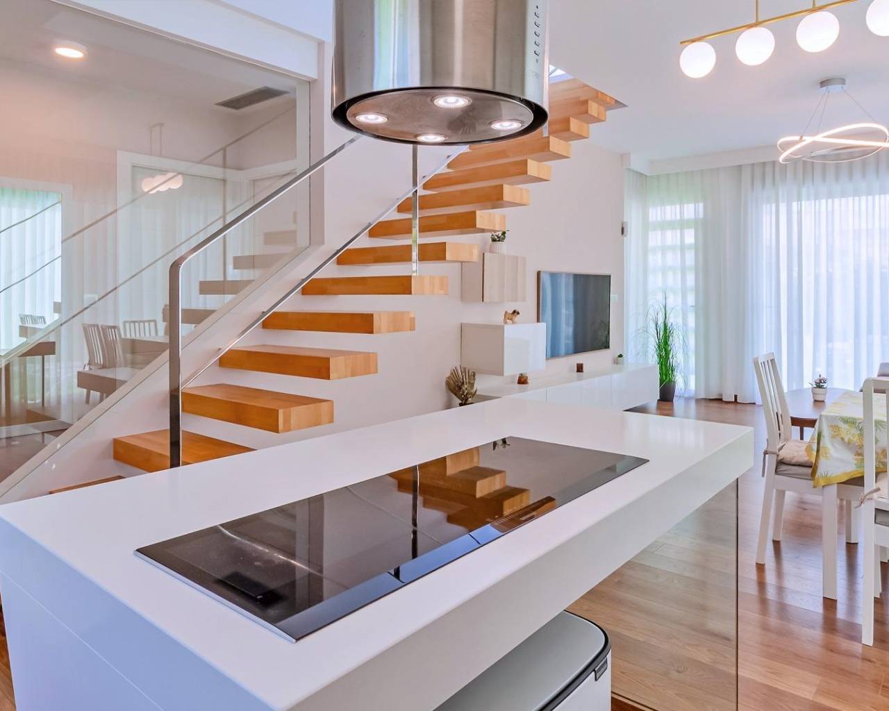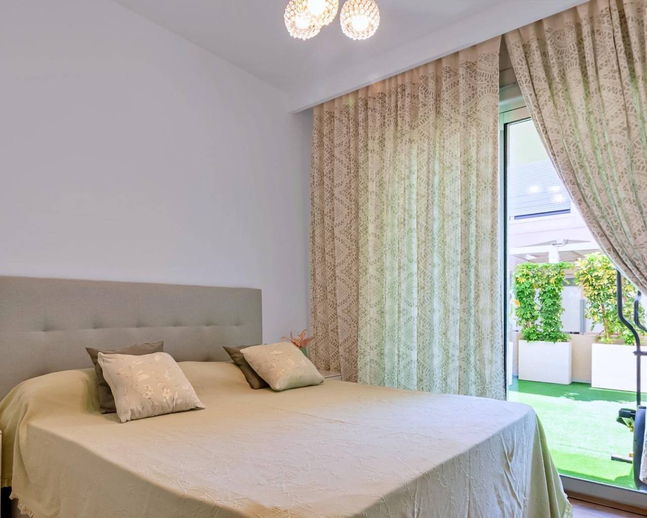 An exquisite combination of spaciousness, light, and sea breezes awaits you in this elegant villa, located just a two-minute walk from Mil Palmeras , one of the best beaches in the Alicante province . Here, you don't have to choose between comfort, nature, and amenities: everything has been perfectly brought together in one place.~This villa is more than just a house. It's a beachfront lifestyle, surrounded by palm trees, golden sand, and an endless horizon. It's a place you'll always want to return to… and stay.~Built on a 220 m² plot , this villa is carefully designed to offer functionality, light, and harmony. The layout includes:~•3 spacious bedrooms , each with its own en-suite bathroom~•An open-plan living-dining room, full of natural light, with high ceilings and large windows with direct access to the garden~•A modern and functional kitchen, ideal for family gatherings or get-togethers with friends.~•A terrace overlooking the garden and pool~•A private 50 m² solarium with open views of the sea and mountains — the perfect place to disconnect and enjoy~The exterior features a private swimming pool , landscaped garden, and a parking space within the property. All materials and finishes have been selected to high-quality standards.~The terrace and solarium offer breathtaking views of the Mediterranean Sea . Ideal for breakfast at sunrise, relaxing at sunset, or simply enjoying the peace and quiet and the beauty of the surroundings.~Mil Palmeras is one of those areas that maintains the perfect balance: tranquility and proximity to everything you need. The beach is literally just steps away. Nearby you'll find restaurants, cafes, supermarkets, and pharmacies. The prestigious Las Colinas or Campoamor golf courses are only a 10-minute drive away , Alicante Airport is less than an hour away, and Murcia Airport is about 30 minutes away.~Investing in this villa is not simply about acquiring a house by the sea. It's about choosing quality of life, privacy, contemporary design, and a prime location on the Costa Blanca.~~