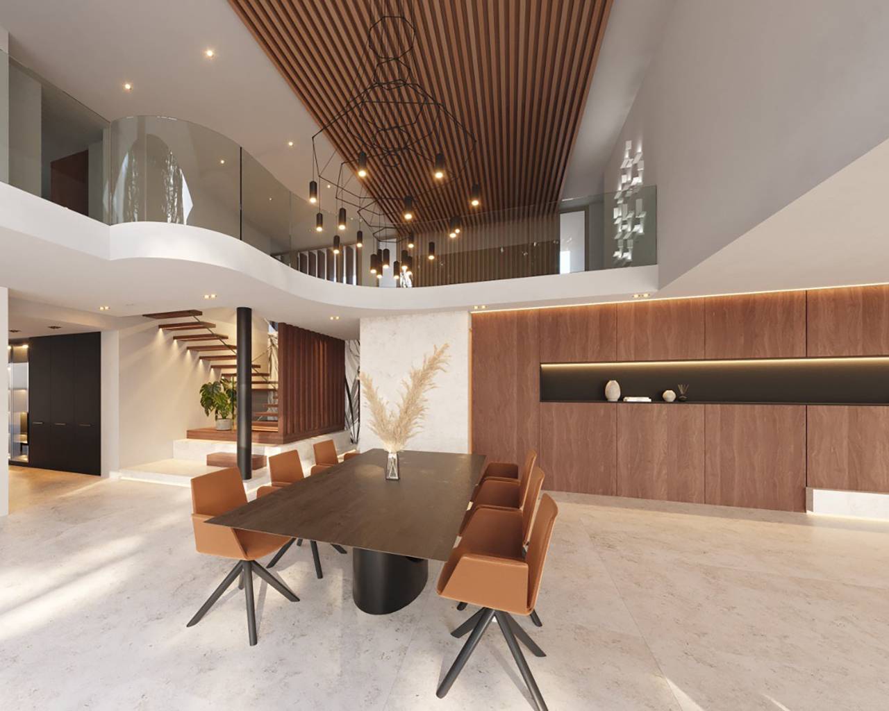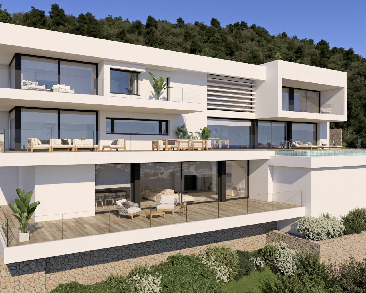 Villa Marblau is situated in a privileged location in the exclusive Jazmines residential estate, a house that redefines luxury and privacy. Its modern architecture features clean lines and high-class materials, creating an experience where design blends with the Mediterranean landscape to offer a distinguished and serene lifestyle. The house is accessed from the top floor, where there is a large covered outdoor car park and an enclosed garage with capacity for several vehicles. From this floor, the hall leads to the leisure areas and the rest of the house via a lift and an interior staircase, ensuring comfortable and functional circulation between all floors of the house. The house spans three floors, featuring five bedrooms and nine bathrooms. On the main floor, we can highlight a spacious living room that opens to the designer kitchen featuring a central island and walnut and anthracite finishes. The master suite is also on this same floor, featuring a dressing room, a private bathroom, and direct access to the terrace. Upstairs, three bedrooms with en-suite bathrooms and private terraces will ensure the comfort of your guests. The lower level, designed for leisure and relaxation, features a cinema room equipped with a surround sound system, a gym, a heated indoor pool, a sauna, and a hammam, as well as a guest apartment with a kitchen, a living room, and an additional bedroom with an en-suite bathroom. Villa Marblau is equipped with a complete range of high-end equipment: duct air conditioning with Mitsubishi Electric® technology, underfloor heating with an Ecodam hybrid system, home automation to control the appliances, exterior carpentry with thermal insulation and solar glazing, integrated appliances from firms such as Miele and Siemens, and technical design lighting from FLOS and Arkoslight. Each bathroom is a showcase of contemporary elegance with suspended toilets, over-the-counter sinks, recessed taps, and large-format tiling in warm, sophisticated tones. The horizon becomes a permanent spectacle from the terrace: the sea, the Peñón de Ifach and the coast unfold before your eyes like a living work of art. The infinity pool seems to merge with the blue sky, inviting you to relax and enjoy the essence of life.