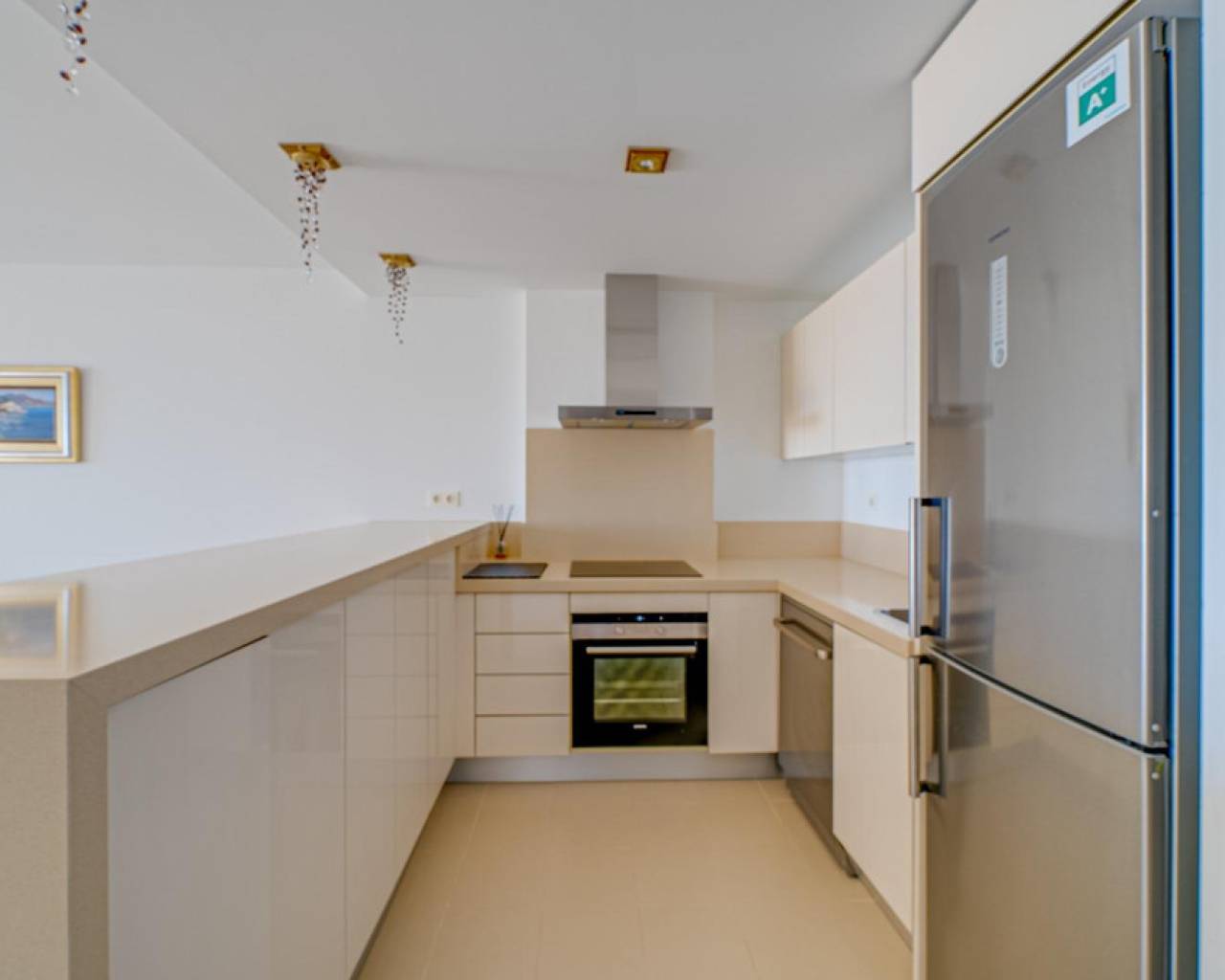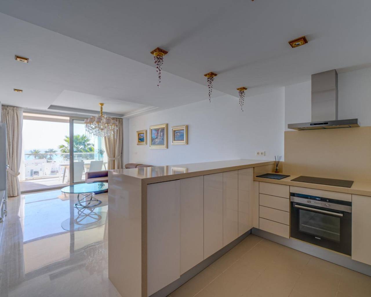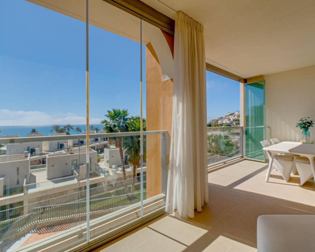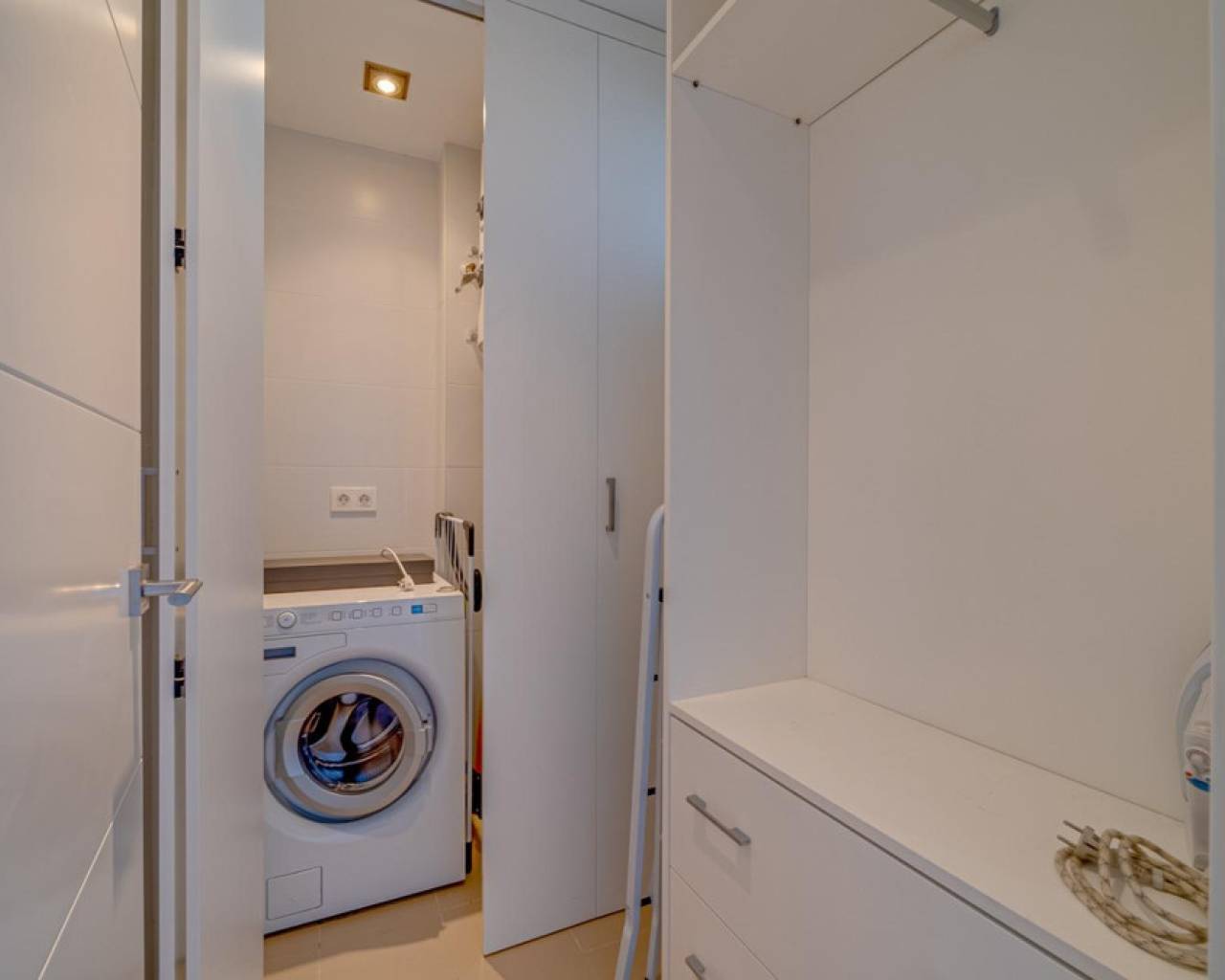Magnificent apartment with stunning sea viewsAre you looking for an oasis of tranquility by the sea? This apartment is the perfect option for you! Located on the beautiful Playa Paraiso de la VillaJoyosa, this apartment offers you an enviable lifestyle with all the comforts you need.With 90 useful square meters, this apartment has two large double bedrooms and built-in wardrobes, a spacious living-dining room, a fully equipped American kitchen, a complete bathroom with a bathtub and another bathroom with a shower. In addition, it has a dressing room, laundry room, storage room, garage and parking space. Everything you need to live in total comfort!The jewel in the crown is the impressive terrace overlooking the sea, where you can relax and enjoy stunning sunsets. The apartment comes furnished and in perfect condition, with central air conditioning and hot water that works thanks to solar panels and an electric water heater.This apartment is located in a gated and very quiet urbanization, with three swimming pools, gardens, children's areas and a yoga area so you can keep your body and mind in shape. The building was built in 2014 with the best materials and is located just 100 meters from the beach, which means that you can enjoy the beach at any time of the day!Do not miss the opportunity to live in a dream place. Come visit this apartment and become the owner of one of the best properties on the Paraiso beach in VillaJoyosa!