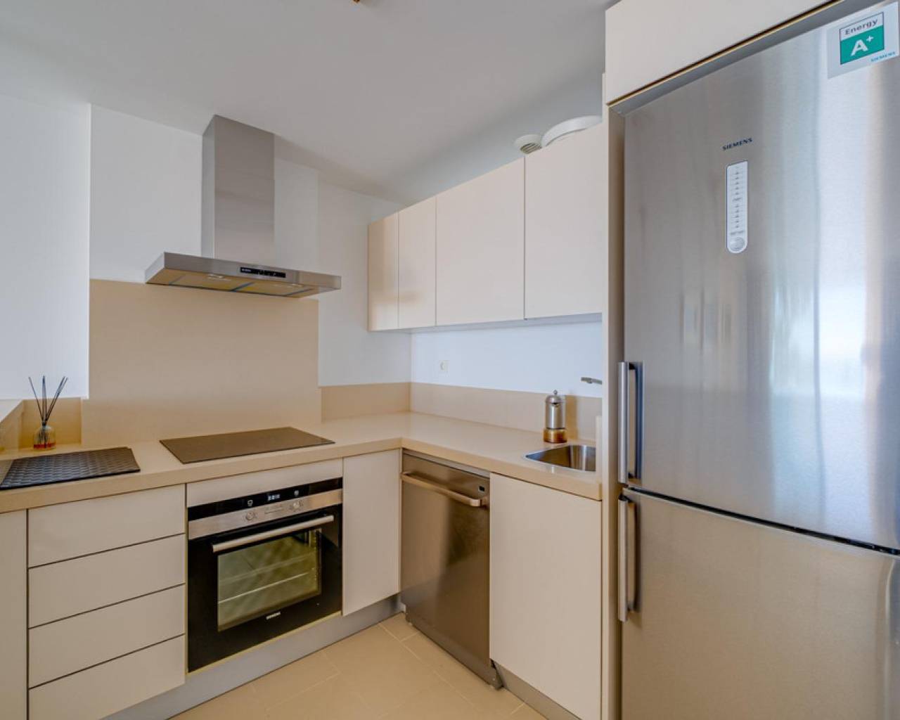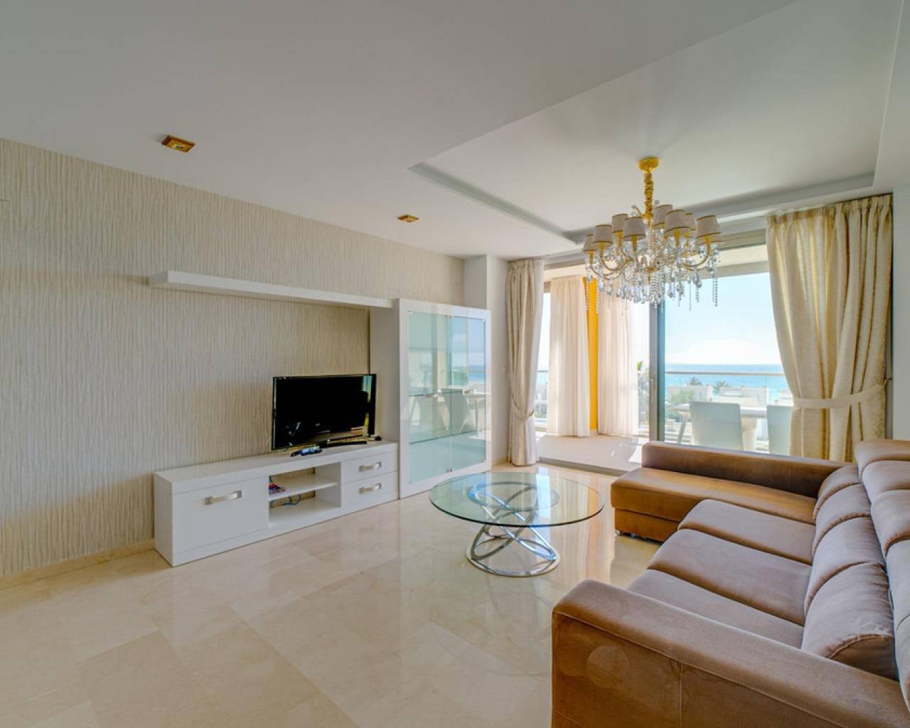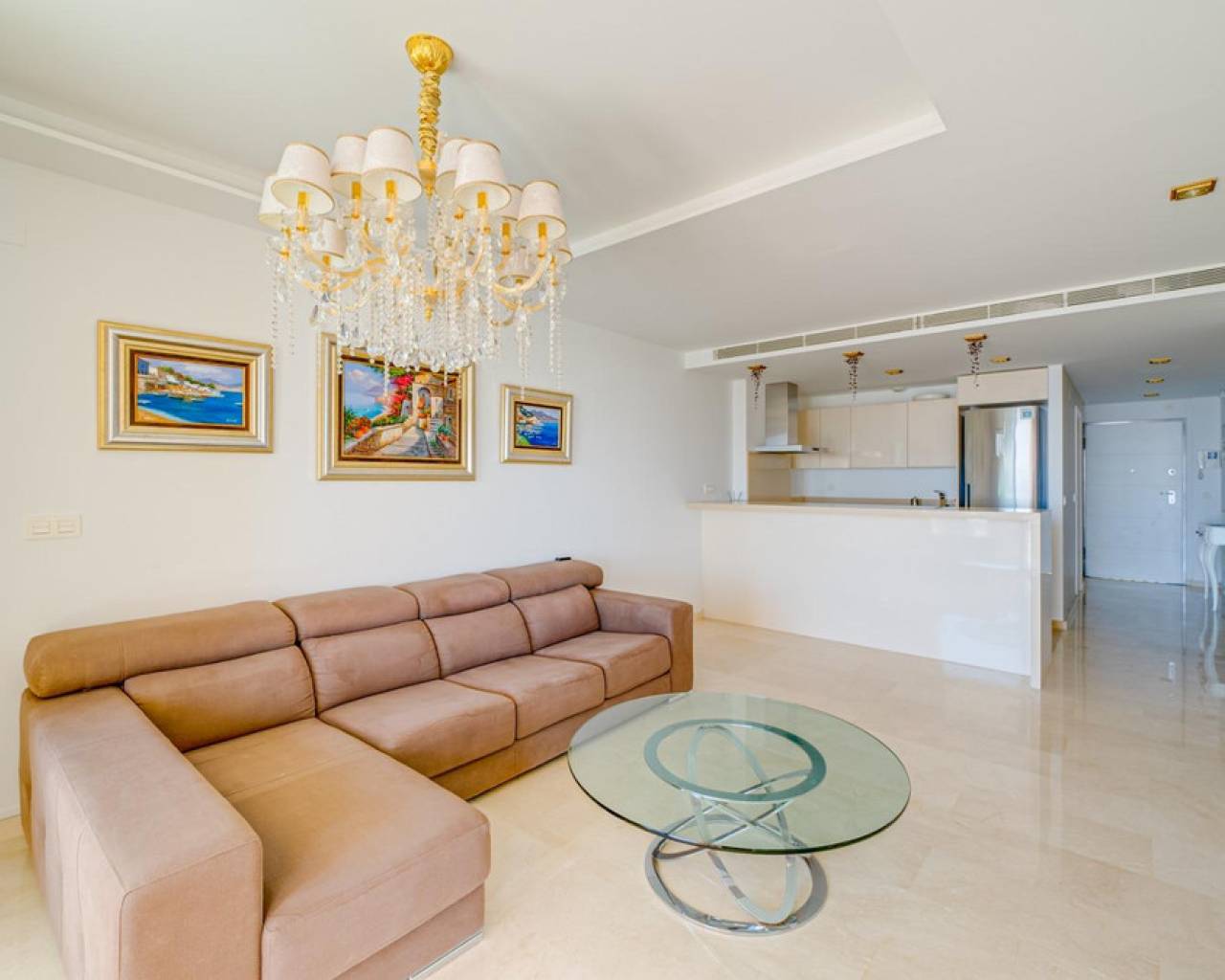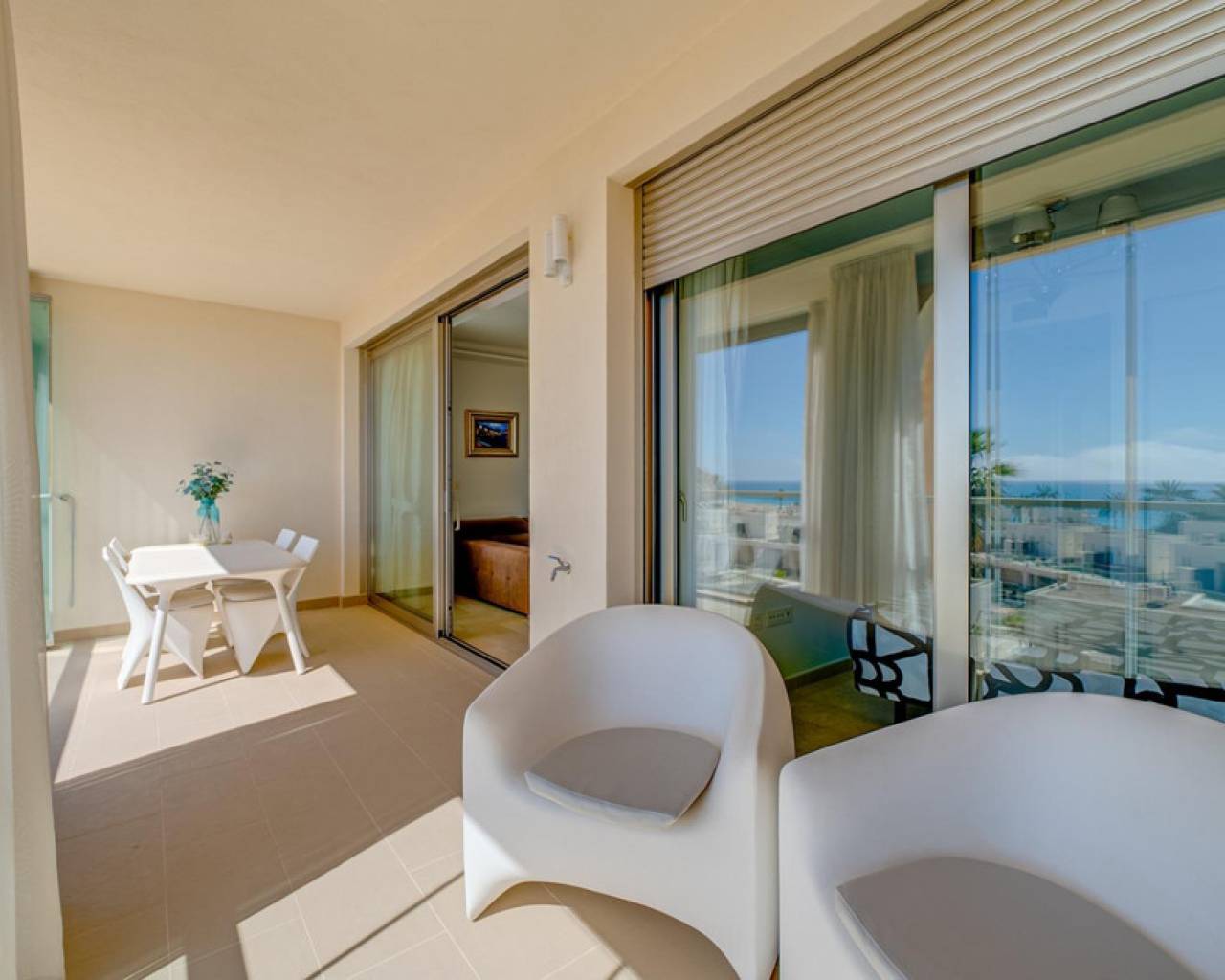 Magnificent apartment with stunning sea viewsAre you looking for an oasis of tranquility by the sea? This apartment is the perfect option for you! Located on the beautiful Playa Paraiso de la VillaJoyosa, this apartment offers you an enviable lifestyle with all the comforts you need.With 90 useful square meters, this apartment has two large double bedrooms and built-in wardrobes, a spacious living-dining room, a fully equipped American kitchen, a complete bathroom with a bathtub and another bathroom with a shower. In addition, it has a dressing room, laundry room, storage room, garage and parking space. Everything you need to live in total comfort!The jewel in the crown is the impressive terrace overlooking the sea, where you can relax and enjoy stunning sunsets. The apartment comes furnished and in perfect condition, with central air conditioning and hot water that works thanks to solar panels and an electric water heater.This apartment is located in a gated and very quiet urbanization, with three swimming pools, gardens, children's areas and a yoga area so you can keep your body and mind in shape. The building was built in 2014 with the best materials and is located just 100 meters from the beach, which means that you can enjoy the beach at any time of the day!Do not miss the opportunity to live in a dream place. Come visit this apartment and become the owner of one of the best properties on the Paraiso beach in VillaJoyosa!