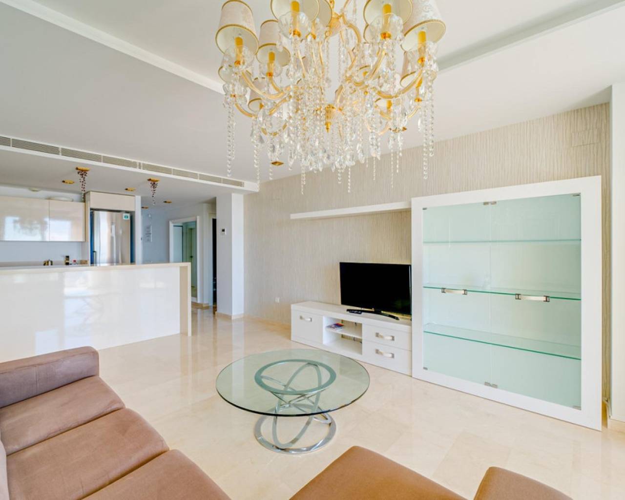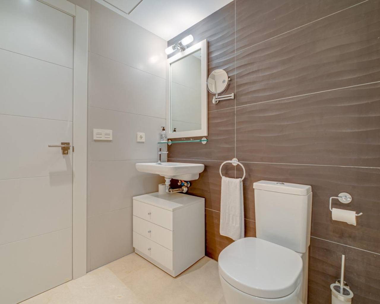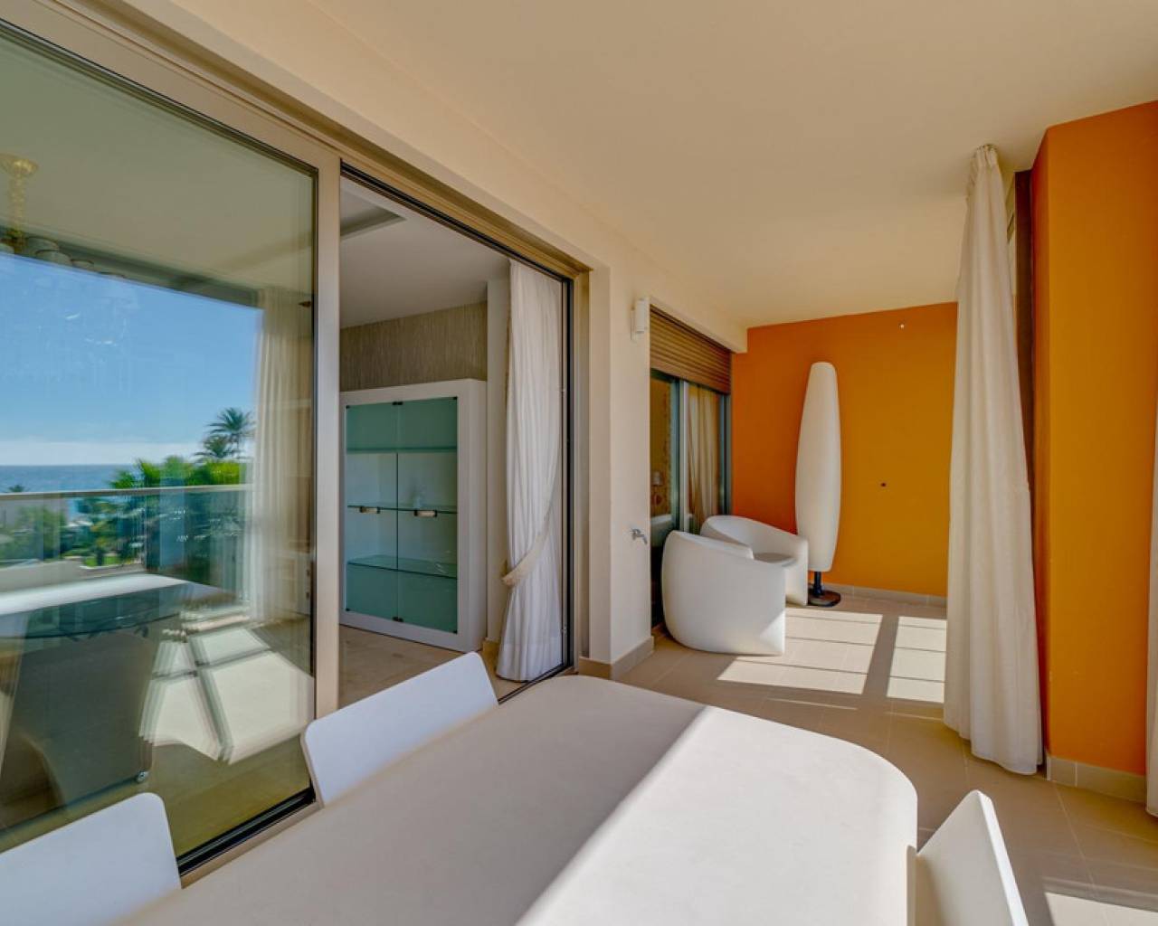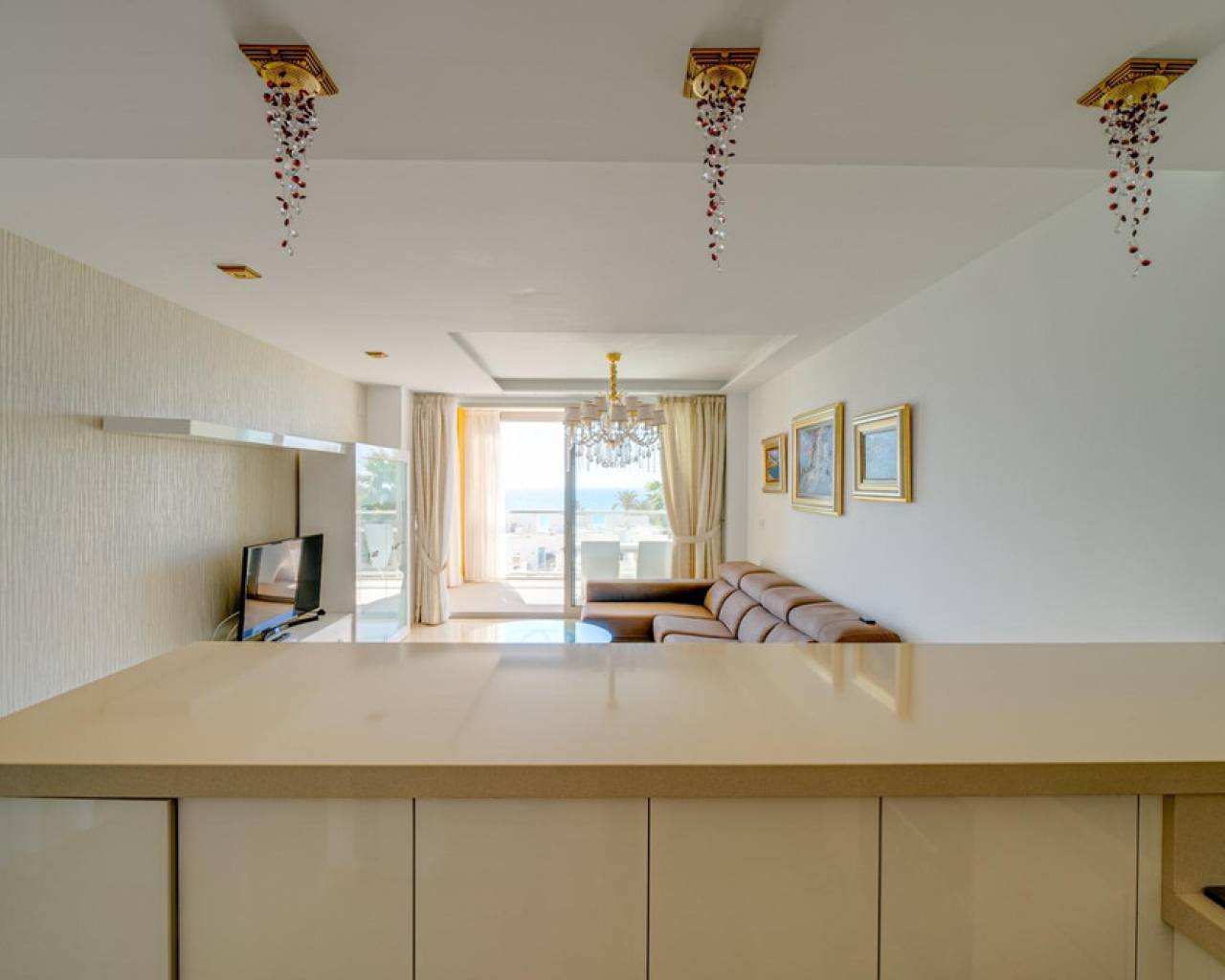 Magnificent apartment with stunning sea viewsAre you looking for an oasis of tranquility by the sea? This apartment is the perfect option for you! Located on the beautiful Playa Paraiso de la VillaJoyosa, this apartment offers you an enviable lifestyle with all the comforts you need.With 90 useful square meters, this apartment has two large double bedrooms and built-in wardrobes, a spacious living-dining room, a fully equipped American kitchen, a complete bathroom with a bathtub and another bathroom with a shower. In addition, it has a dressing room, laundry room, storage room, garage and parking space. Everything you need to live in total comfort!The jewel in the crown is the impressive terrace overlooking the sea, where you can relax and enjoy stunning sunsets. The apartment comes furnished and in perfect condition, with central air conditioning and hot water that works thanks to solar panels and an electric water heater.This apartment is located in a gated and very quiet urbanization, with three swimming pools, gardens, children's areas and a yoga area so you can keep your body and mind in shape. The building was built in 2014 with the best materials and is located just 100 meters from the beach, which means that you can enjoy the beach at any time of the day!Do not miss the opportunity to live in a dream place. Come visit this apartment and become the owner of one of the best properties on the Paraiso beach in VillaJoyosa!
