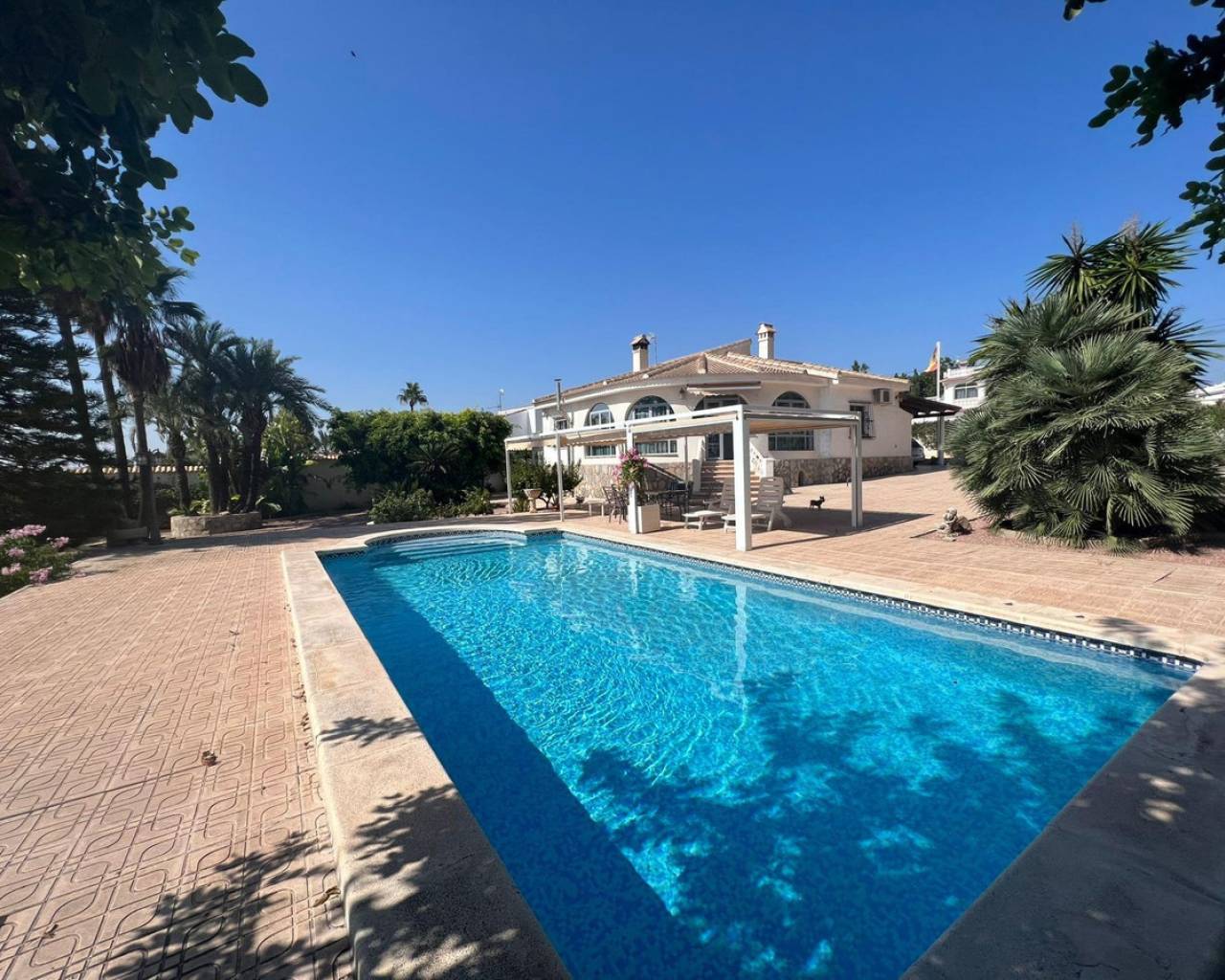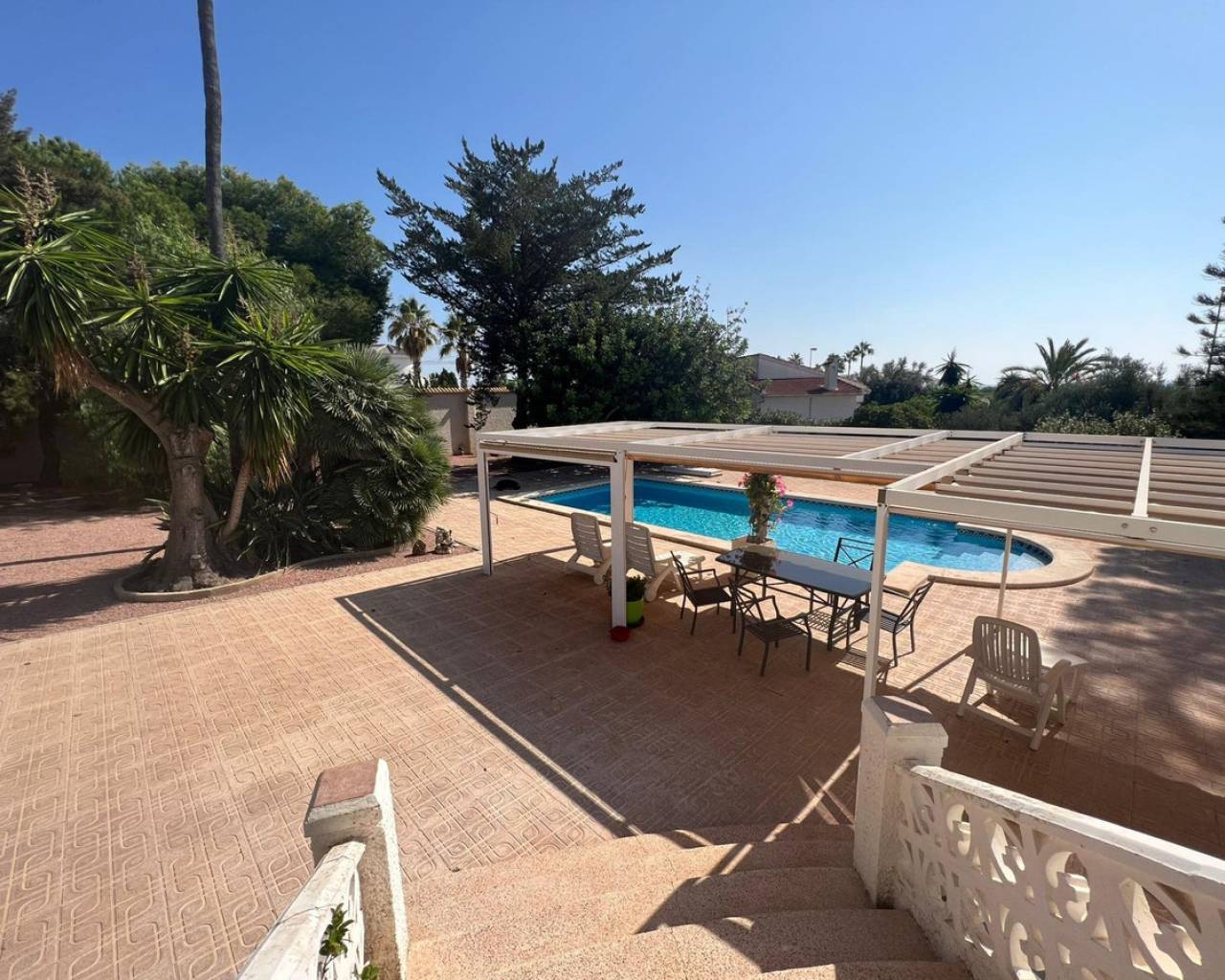 This impressive real estate property is a semi-renovated villa of 236 square meters, located in the exclusive urbanization of Ciudad Quesada in the Rojales area. With a plot of land of more than two thousand square meters and just nine kilometers from the sea, this house has three spacious and bright bedrooms, as well as two full bathrooms equipped to provide comfort to its residents and without forgetting its library. Among the Numerous extras that this chalet offers include the air conditioning installed throughout the house, spacious built-in wardrobes perfectly designed for efficient storage; It also has a basement that would be perfect to use as a cellar, play area or whatever suits us particularly well, as well as an attic which gives it very valuable extra space. We also find details such as floors covered with elegant and pristine stoneware or laminate flooring, a glazed terrace ideal to enjoy every moment even when the weather conditions are not ideal, a fully equipped kitchen that also includes necessary utensils, an extremely well-kept garden with two Olive trees, a fig tree, various palm trees are some of the trees in the garden, which has also been provided with automatic irrigation and makes it possible to always keep it beautiful without any complications. The presence inside the home also allows direct access from any point to the outside area where there are leafy trees providing shade. You will also find children's areas if you have a family. Regarding the location, we tell you: be close to shopping centers (ideal if you want to go shopping), schools (if you are looking for education for your children), and hospitals (in case you need medical attention). In addition, the property is located in a very central area just a short drive from the nearest golf course. *Another option offered by the villa is that it has 2,040 m2 of plot where it could be needed, to build four villas with 500 meters of plot each. There is no doubt that before you we have an authentic gem to offer!!