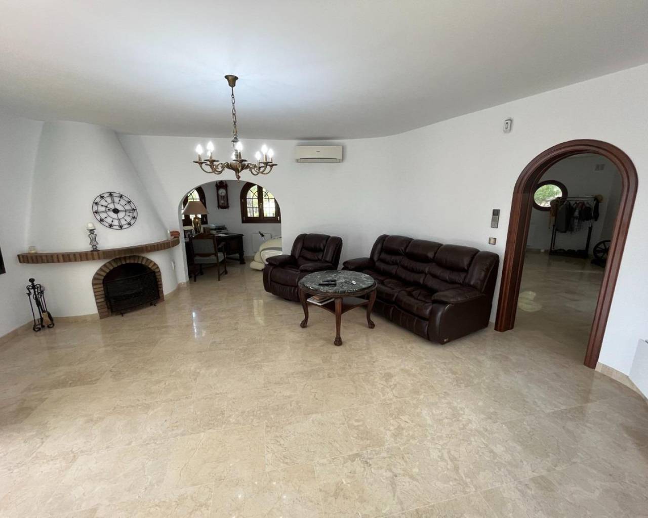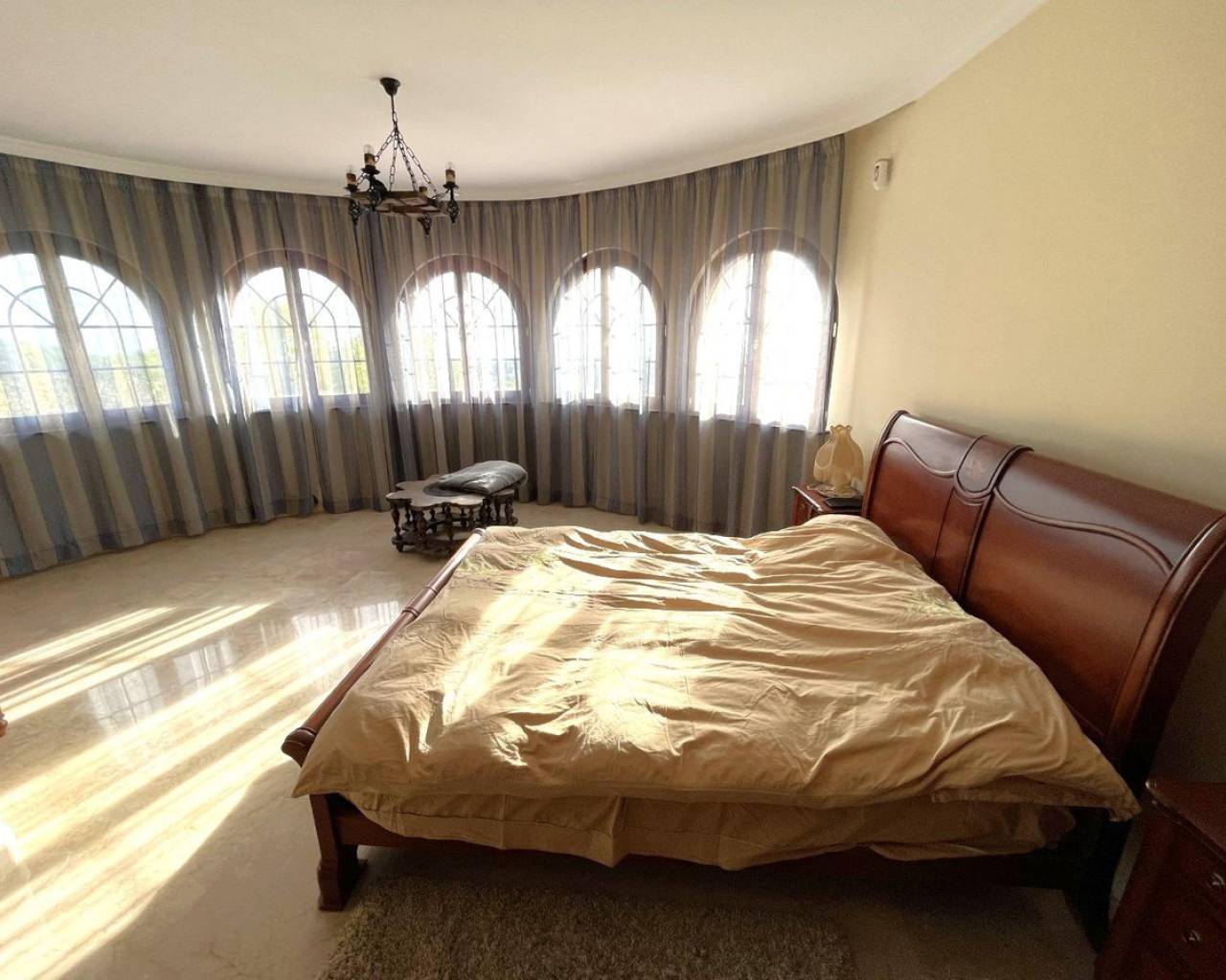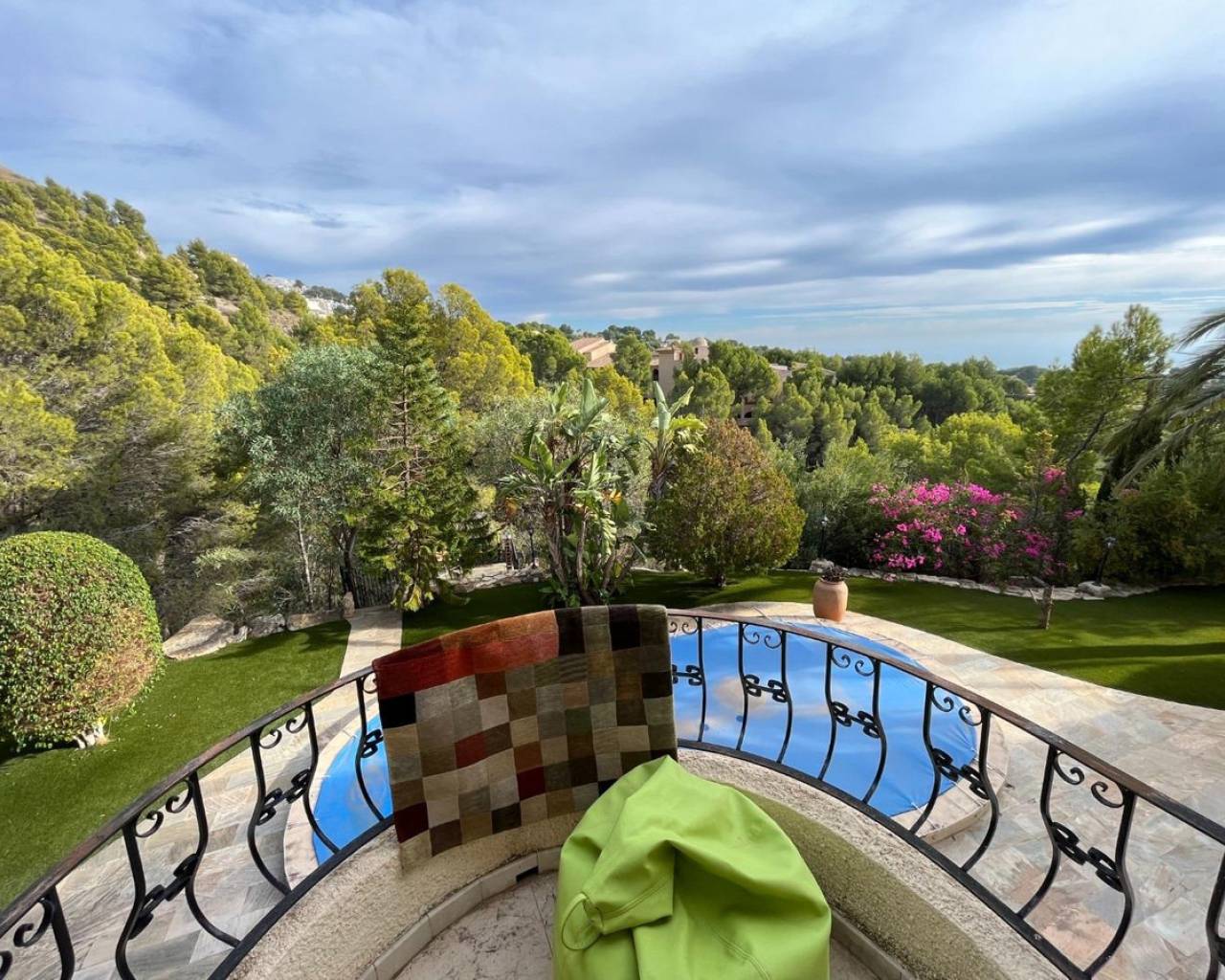 Mediterranean style luxury villa in the Sierra de Altea. An exclusive villa, available to only a few, who seek privacy and tranquility.With a constructed area of 522 m², renovated 10 years ago, distributed over 3 floors, it includes 4 double bedrooms, 4 bathrooms, 1 toilet, 2 living rooms, 2 kitchens, laundry room, storage room, garage for 2 cars, large terraces, indoor heated pool , outdoor pool, garden, other auxiliary buildings, etc. All this on a large natural plot of 5,262 m².Renovated with the best qualities, such as iroko wood exterior carpentry with double glazing, marble floors, heating with radiators and underfloor heating using a diesel boiler, air conditioning, alarm and video surveillance system, solar panels for hot water, etc.Located in the Sierra de Altea urbanization, at the foot of the Bernia mountain range, surrounded by nature and with views of the sea and the mountains. An exclusive area, very quiet and quiet, but well connected by road, 10 minutes from Altea La Vella and all basic services, and 15 minutes from Altea and the beaches.
