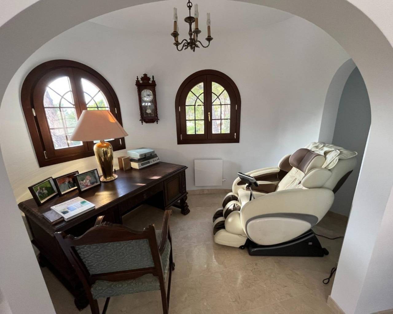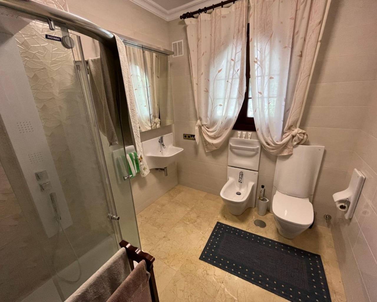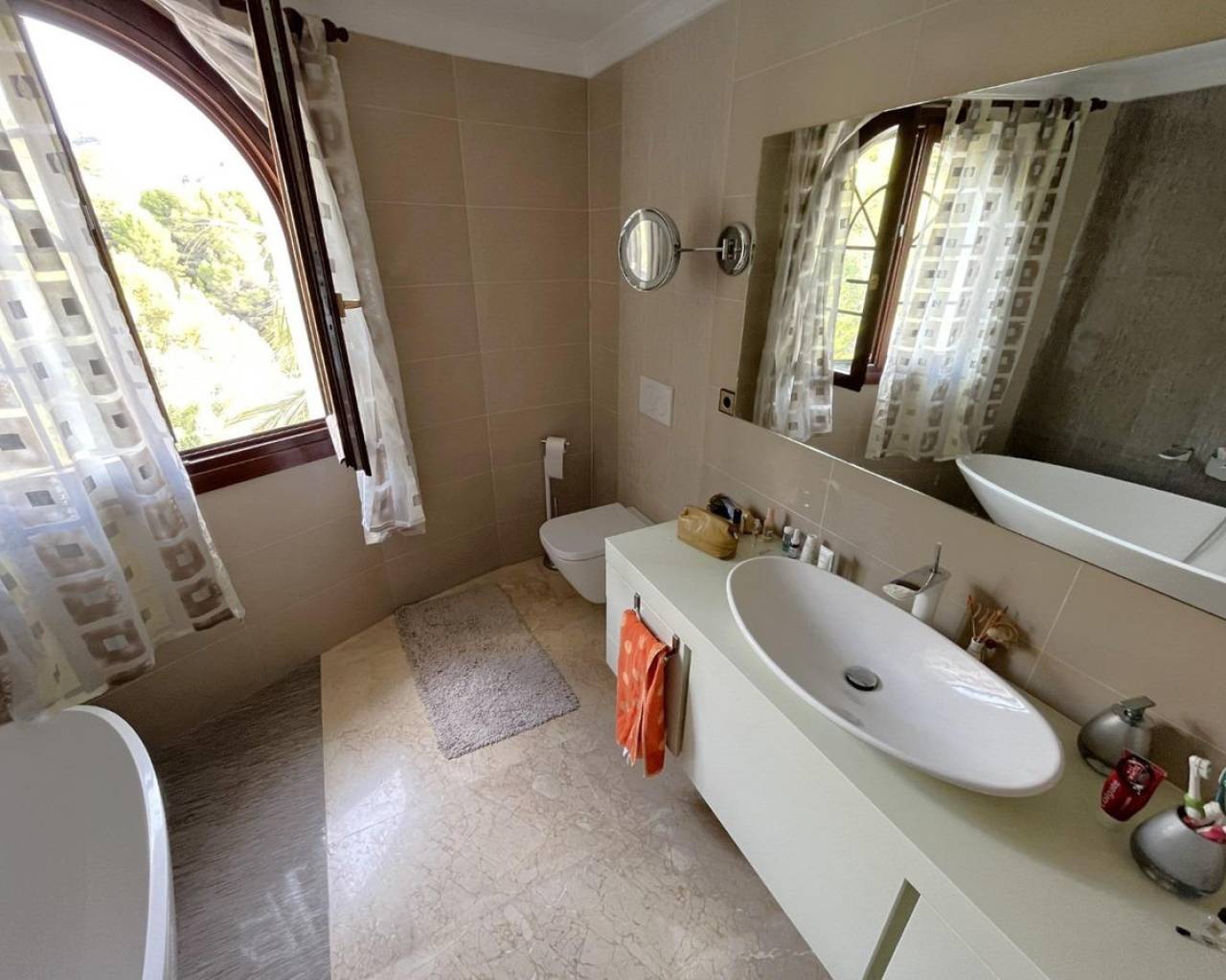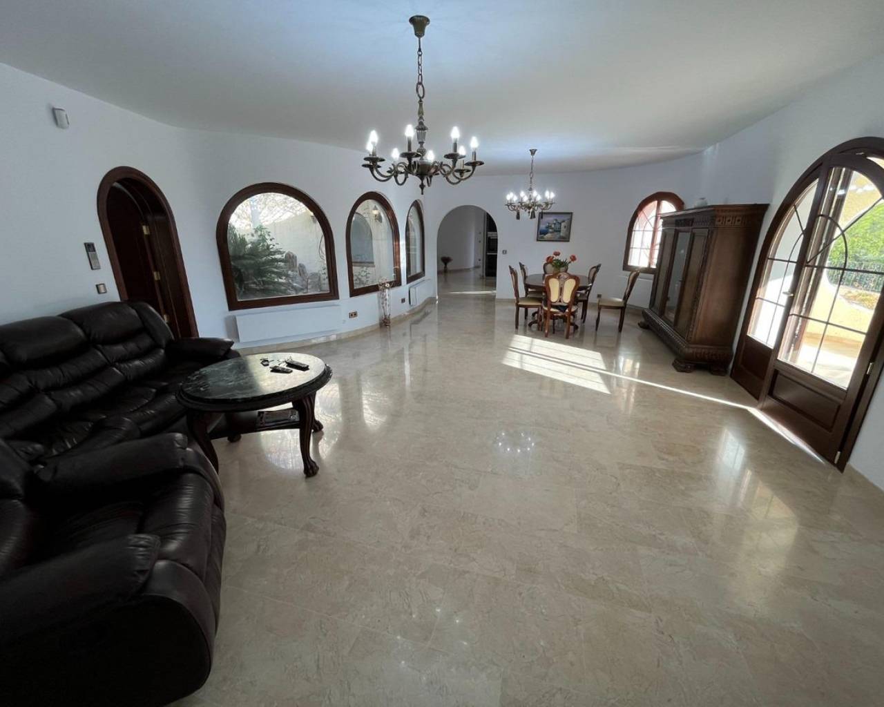 Mediterranean style luxury villa in the Sierra de Altea. An exclusive villa, available to only a few, who seek privacy and tranquility.With a constructed area of 522 m², renovated 10 years ago, distributed over 3 floors, it includes 4 double bedrooms, 4 bathrooms, 1 toilet, 2 living rooms, 2 kitchens, laundry room, storage room, garage for 2 cars, large terraces, indoor heated pool , outdoor pool, garden, other auxiliary buildings, etc. All this on a large natural plot of 5,262 m².Renovated with the best qualities, such as iroko wood exterior carpentry with double glazing, marble floors, heating with radiators and underfloor heating using a diesel boiler, air conditioning, alarm and video surveillance system, solar panels for hot water, etc.Located in the Sierra de Altea urbanization, at the foot of the Bernia mountain range, surrounded by nature and with views of the sea and the mountains. An exclusive area, very quiet and quiet, but well connected by road, 10 minutes from Altea La Vella and all basic services, and 15 minutes from Altea and the beaches.