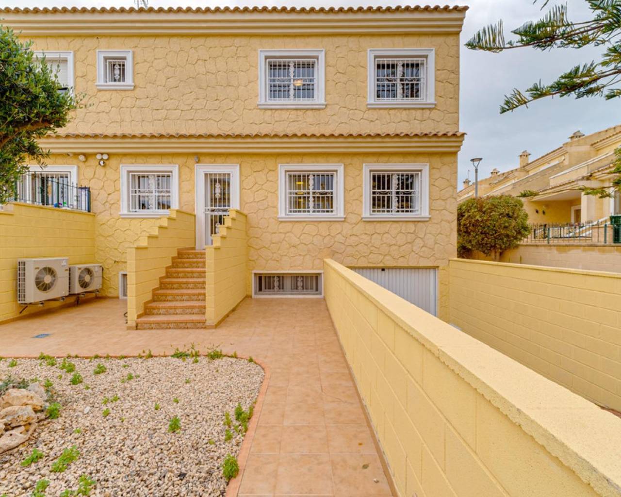 Now with a price drop! Take advantage of this fantastic opportunity!!Spacious and bright semi-detached corner house with 350 m2 built and 200m2 plot.Its meters are distributed over 3 floors:First Floor: there is the social area with a majestic living room of about 50 m2 with fireplace + fully equipped independent kitchen + a guest toilet + a glazed terrace with views of the garden and the community pool.Second Floor: there is the rest area with the master bedroom with its en-suite bathroom, 3 large bedrooms (all of them with built-in wardrobes) + a full bathroom. Two of these bedrooms have access to a private balcony with beautiful views of the sea.Semi-basement floor: it has a living room of about 30 m2, a double bedroom, a fully equipped kitchen, a bathroom with a shower, a laundry area and access to the garage (with space for 2 cars).To highlight the quality report, the house has hot/cold air conditioning through ducts, underfloor heating, fireplace in the living room, etc. Being a corner house, it enjoys a lot of privacy and a plot of about 200 m2 that surrounds the house.It is part of a charming residential area called Mariblanca, with well-kept gardens and a community pool.Excellent location, Los Altos area, where one can live comfortably as it has all kinds of services nearby: banks, pharmacies, health center, supermarkets, shopping centers, etc. and public transport very close.