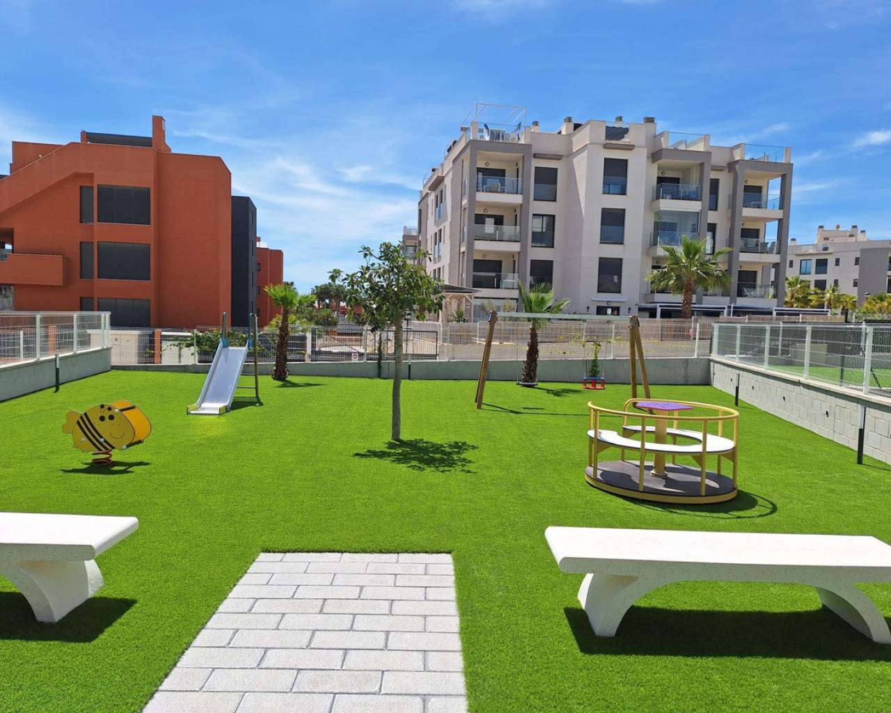 This beautiful 80m2 flat is located in the most sought after residential area of Orihuela Costa: Villamartin. The property has a southeast orientation that guarantees natural light and is only 3000meters away from some spectacular Mediterranean beaches.The property consists of two double bedrooms, a spacious living-dining room which is very bright thanks to the large window through which a lot of light enters; it also has a fully fitted and equipped kitchen as well as two complete bathrooms, one of which is en-suite.This brand new property also has extras such as centralized air conditioning hot/cold which makes it possible to enjoy any time of the year from its totally private outside terrace surrounded by trees ideal for relaxing or sunbathing while listening to the birds sing! It also includes fitted wardrobes, enclosed gallery.But that's not all: this property has total accessibility as it complies with PRM regulations AND it can be accessed without steps!The urbanization has among other things with well maintained gardens, large swimming pool several playgrounds / playgrounds playgrounds restaurants bars shopping malls golf club sports fields