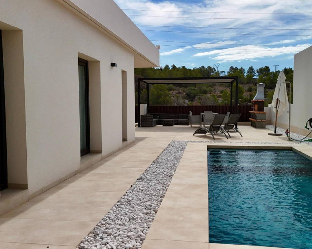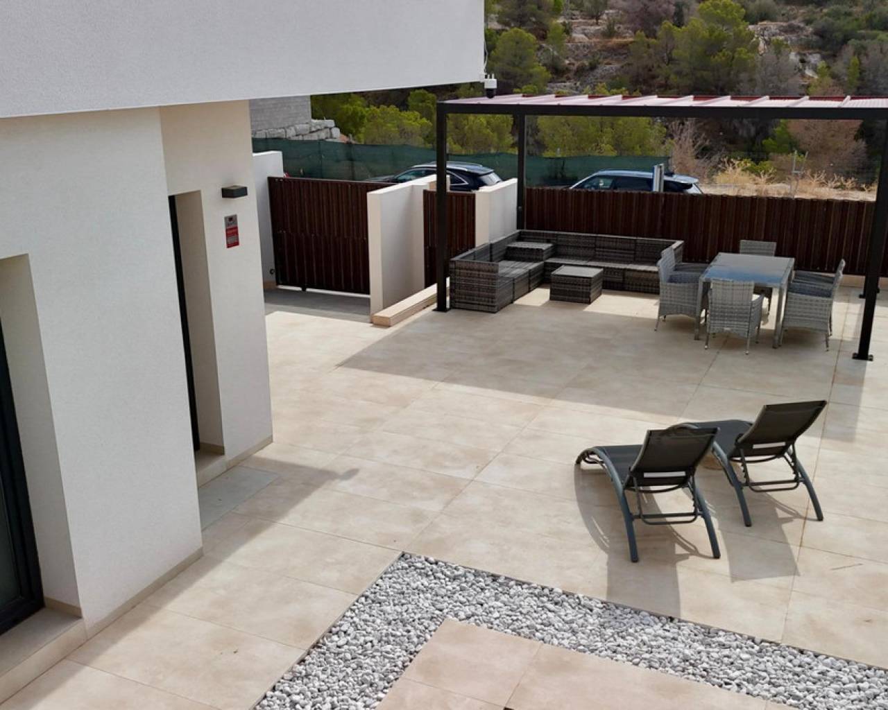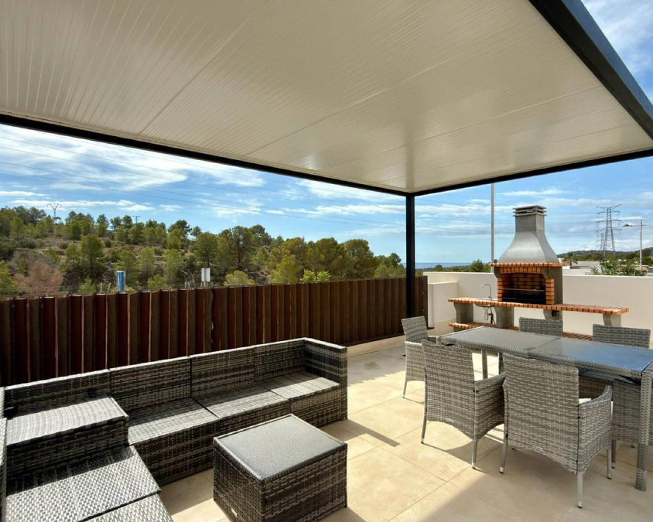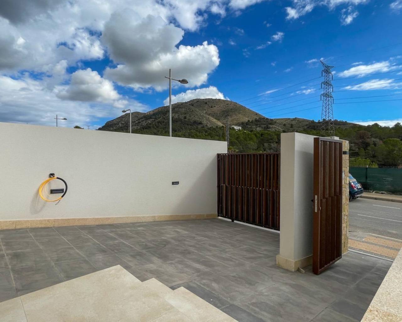 Discover this stunning villa located in the coveted sector 13 of Finestrat, just 4000 meters from the beach. With an ideal total built area designed for enjoying comfort and modern style, this new property features three spacious double bedrooms and two fully equipped bathrooms. The kitchen is made for food lovers and offers everything needed to delight in cooking.The villa faces south, allowing natural light to flood all its spaces thanks to elegant porcelain stoneware flooring. This home is not only bright but also functional; it includes PMR adapted access, central air conditioning (cool/heat), and alarm installation for additional security.Outside you will find your own private garden adorned with lush trees as well as a pool where you can relax on sunny days under a cozy pergola. Additionally, there's an exclusive patio perfect for family or social gatherings with friends.Additional amenities include strategically designed fitted wardrobes maximizing storage without sacrificing usable space; independent laundry room; armored door ensuring maximum privacy; video intercom providing greater control over accesses;personalized pergolas within the outdoor area protected by automatic doors facilitating quick entry/exit from included parking - all complemented by automatic irrigation ensuring easy maintenance while enjoying every corner both indoors and outdoors!Located near various services such as nearby shopping centers (supermarkets), key local hospitals necessary for urgent medical attention plus schools/educational centers right around gated community creating perfectly safe environment young families seeking grow together . Without question this could be your future dream residence! The sea views are simply breathtaking.
