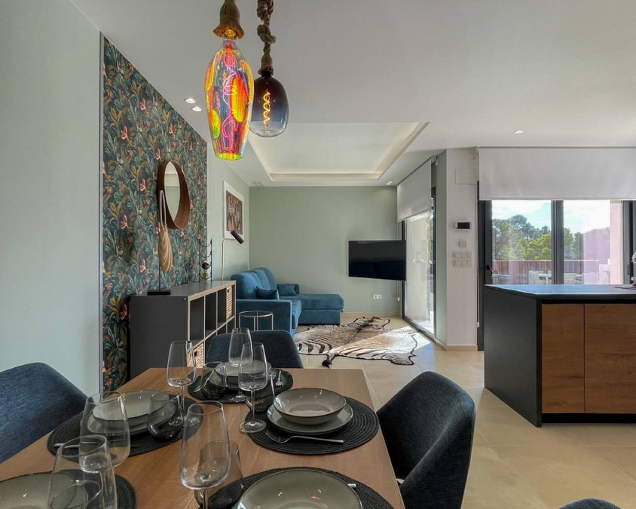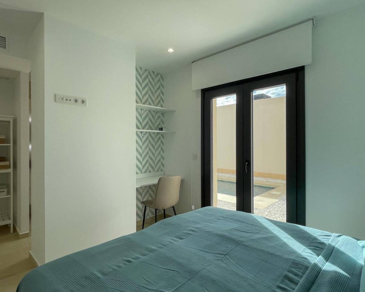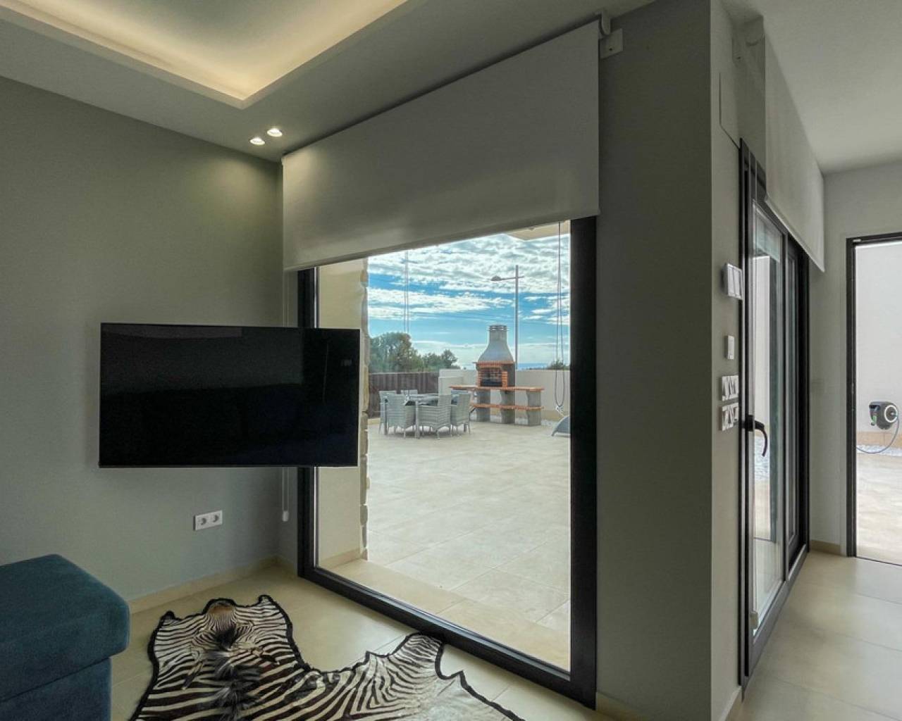 Discover this stunning villa located in the coveted sector 13 of Finestrat, just 4000 meters from the beach. With an ideal total built area designed for enjoying comfort and modern style, this new property features three spacious double bedrooms and two fully equipped bathrooms. The kitchen is made for food lovers and offers everything needed to delight in cooking.The villa faces south, allowing natural light to flood all its spaces thanks to elegant porcelain stoneware flooring. This home is not only bright but also functional; it includes PMR adapted access, central air conditioning (cool/heat), and alarm installation for additional security.Outside you will find your own private garden adorned with lush trees as well as a pool where you can relax on sunny days under a cozy pergola. Additionally, there's an exclusive patio perfect for family or social gatherings with friends.Additional amenities include strategically designed fitted wardrobes maximizing storage without sacrificing usable space; independent laundry room; armored door ensuring maximum privacy; video intercom providing greater control over accesses;personalized pergolas within the outdoor area protected by automatic doors facilitating quick entry/exit from included parking - all complemented by automatic irrigation ensuring easy maintenance while enjoying every corner both indoors and outdoors!Located near various services such as nearby shopping centers (supermarkets), key local hospitals necessary for urgent medical attention plus schools/educational centers right around gated community creating perfectly safe environment young families seeking grow together . Without question this could be your future dream residence! The sea views are simply breathtaking.