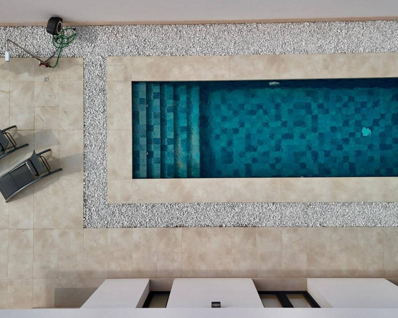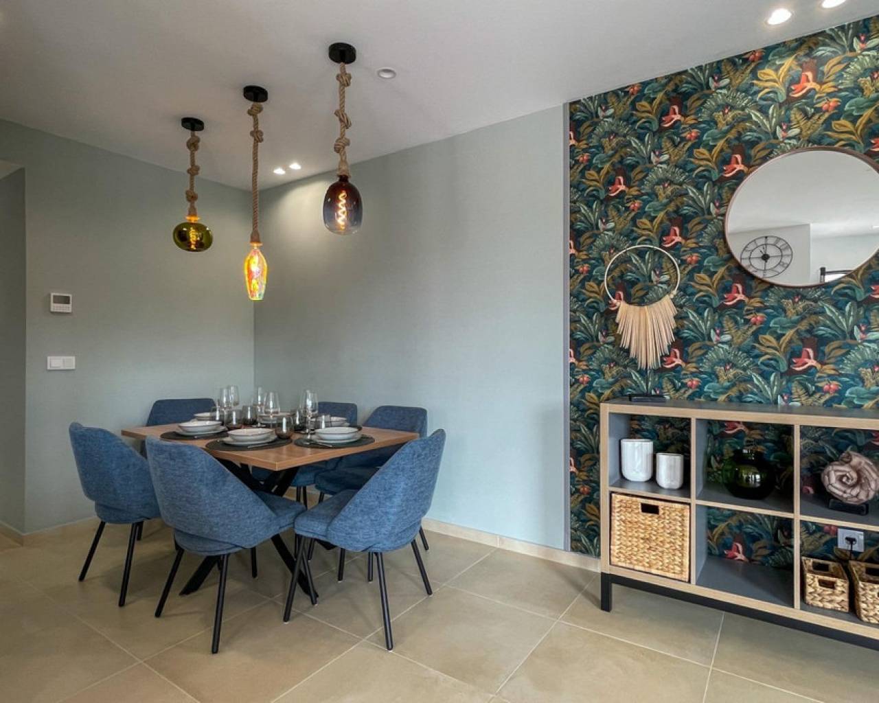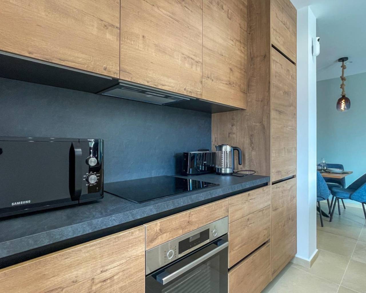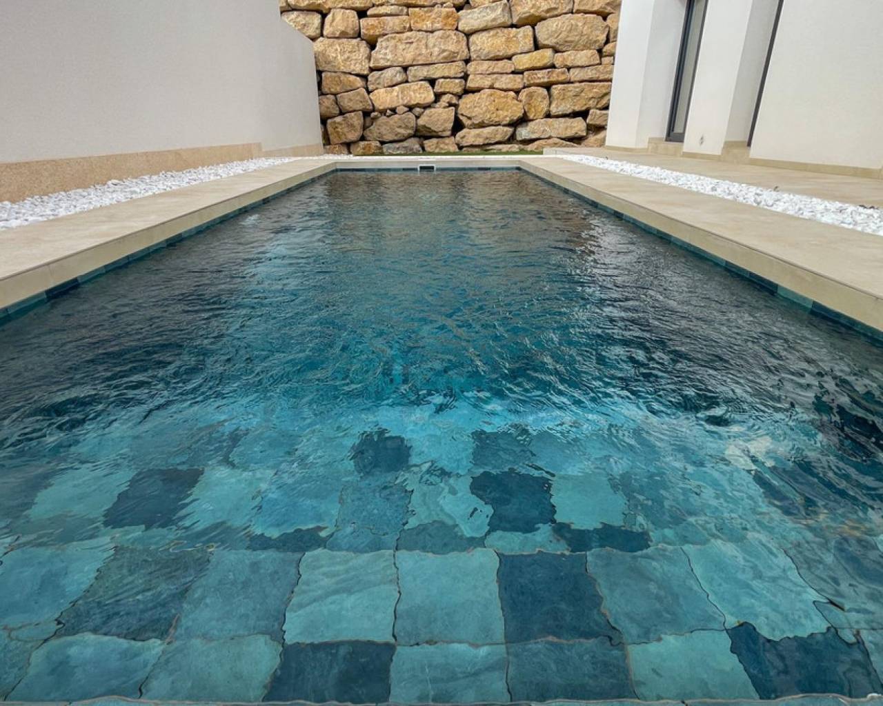 Discover this stunning villa located in the coveted sector 13 of Finestrat, just 4000 meters from the beach. With an ideal total built area designed for enjoying comfort and modern style, this new property features three spacious double bedrooms and two fully equipped bathrooms. The kitchen is made for food lovers and offers everything needed to delight in cooking.The villa faces south, allowing natural light to flood all its spaces thanks to elegant porcelain stoneware flooring. This home is not only bright but also functional; it includes PMR adapted access, central air conditioning (cool/heat), and alarm installation for additional security.Outside you will find your own private garden adorned with lush trees as well as a pool where you can relax on sunny days under a cozy pergola. Additionally, there's an exclusive patio perfect for family or social gatherings with friends.Additional amenities include strategically designed fitted wardrobes maximizing storage without sacrificing usable space; independent laundry room; armored door ensuring maximum privacy; video intercom providing greater control over accesses;personalized pergolas within the outdoor area protected by automatic doors facilitating quick entry/exit from included parking - all complemented by automatic irrigation ensuring easy maintenance while enjoying every corner both indoors and outdoors!Located near various services such as nearby shopping centers (supermarkets), key local hospitals necessary for urgent medical attention plus schools/educational centers right around gated community creating perfectly safe environment young families seeking grow together . Without question this could be your future dream residence! The sea views are simply breathtaking.