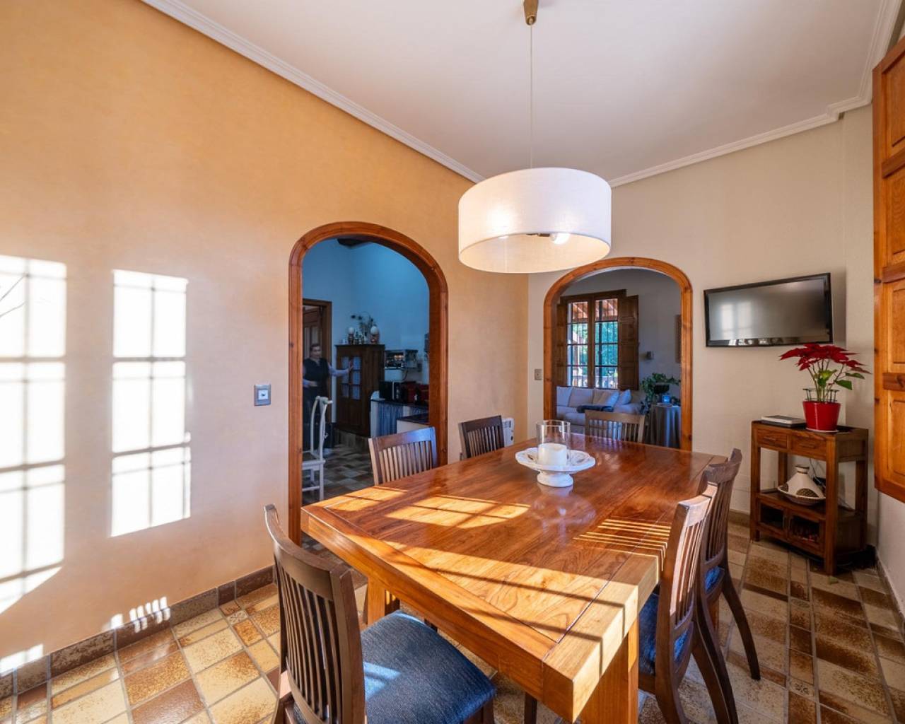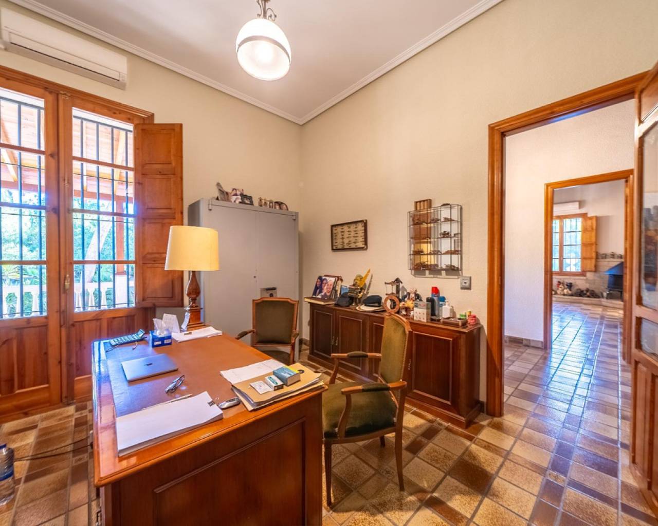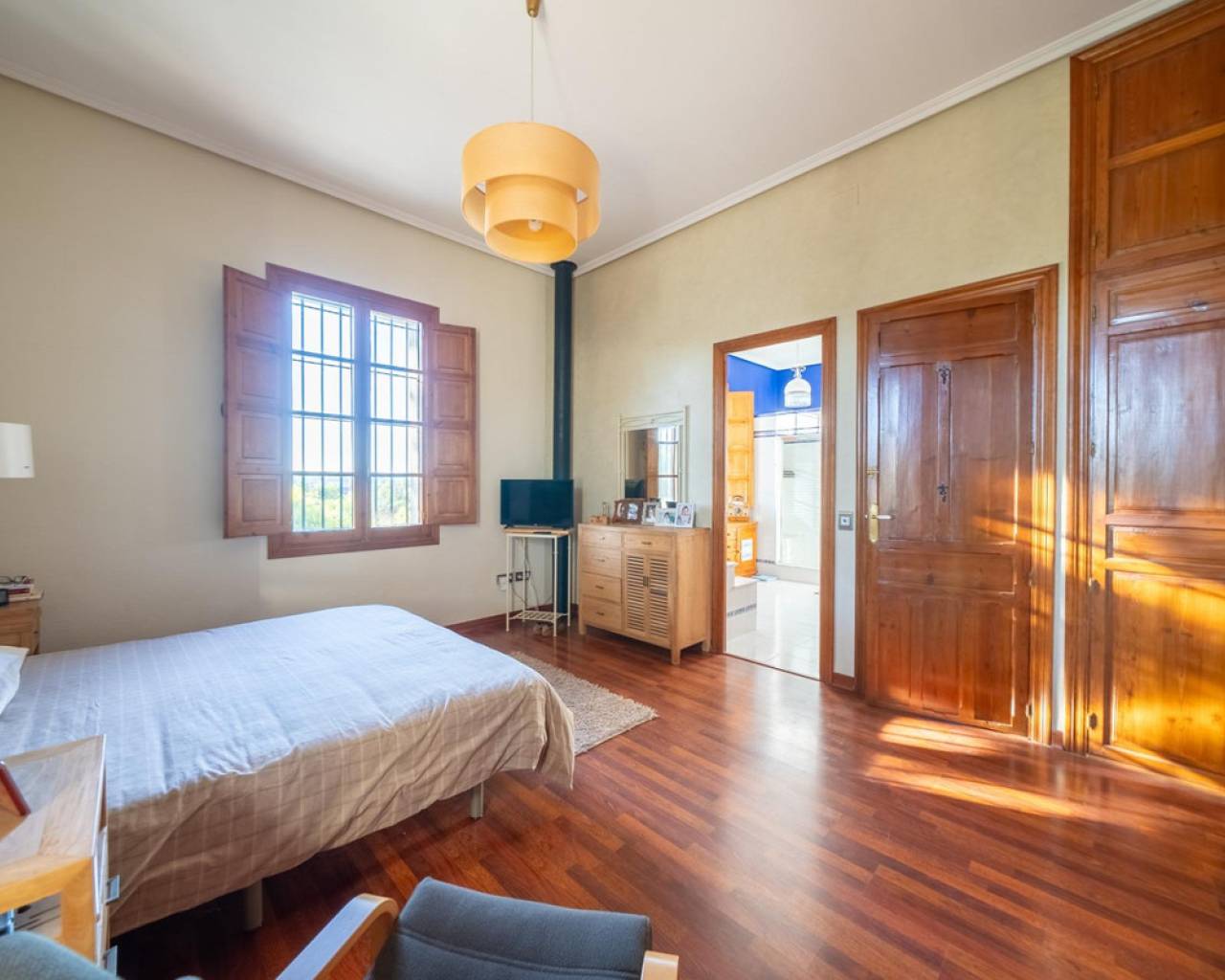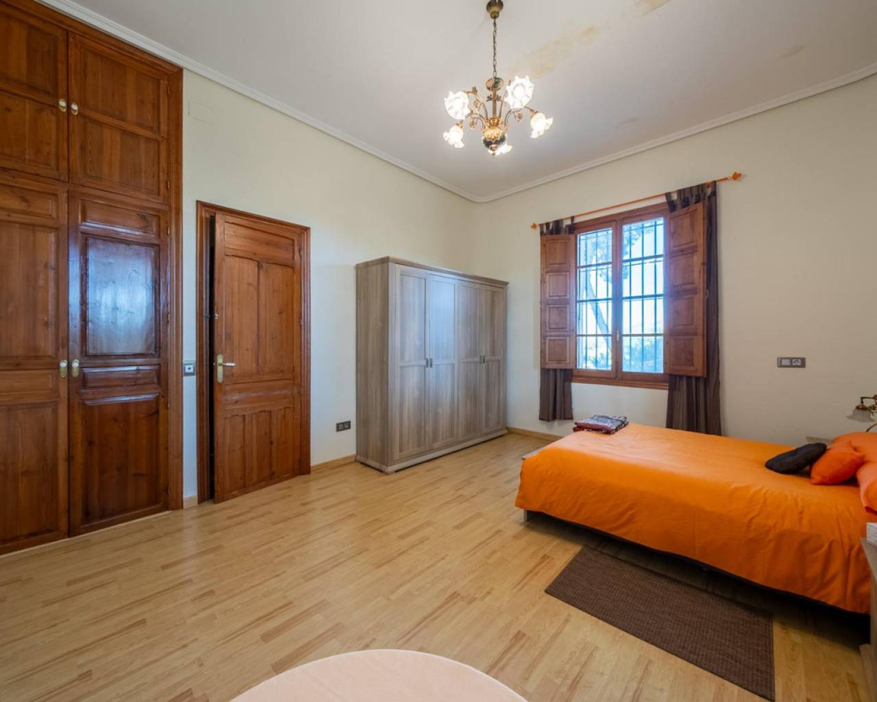 Discover this wonderful rustic house that looks like an oasis, located in Mutxamiel, just 10 minutes by car from Playa San Juan. It offers you a unique lifestyle in the middle of nature. With a total built area of ​​all facilities of 1350 m², located on a large plot of 35,000 m², this home has everything you need to enjoy comfort and relaxation. The property has a main house with 5 bedrooms, 3 bathrooms, one en suite and 1 office, 3 rooms that can be converted and used for any purpose. A cozy living room with a fireplace and a large, well-equipped kitchen. A terrace on the porch with about 90m2 offers views of the wonderful, well-kept garden. Guest house offers 2 bedrooms, a living room, a kitchen, 1 bathroom and 3 rooms for any use and that can be accommodated both as bedrooms and as spaces for other uses. The style of the house is unique, traditional colonial that offers a very cozy and unforgettable atmosphere. It also includes extras such as air conditioning, heating with electricity. The additional spaces are equally surprising: private HEATED swimming pool with a cover for the winter, gym, jacuzzi, Turkish sauna, impressive barbecue area, a wine cellar, storage and workshop, organic garden area and farm with its own well for irrigation to keep the oasis in good condition. Extensive plantations of olive, lemon and orange trees. The property is in perfect condition, all outdoor areas are well maintained by professionals. Location: 5 minutes from local schools, supermarkets and children's areas making it ideal also if you have children. It also has covered parking for 3 cars, security cameras etc., ensuring daily tranquility. Welcome those who seek to be part of this exclusive urbanization full of urban service! Do not miss the opportunity!